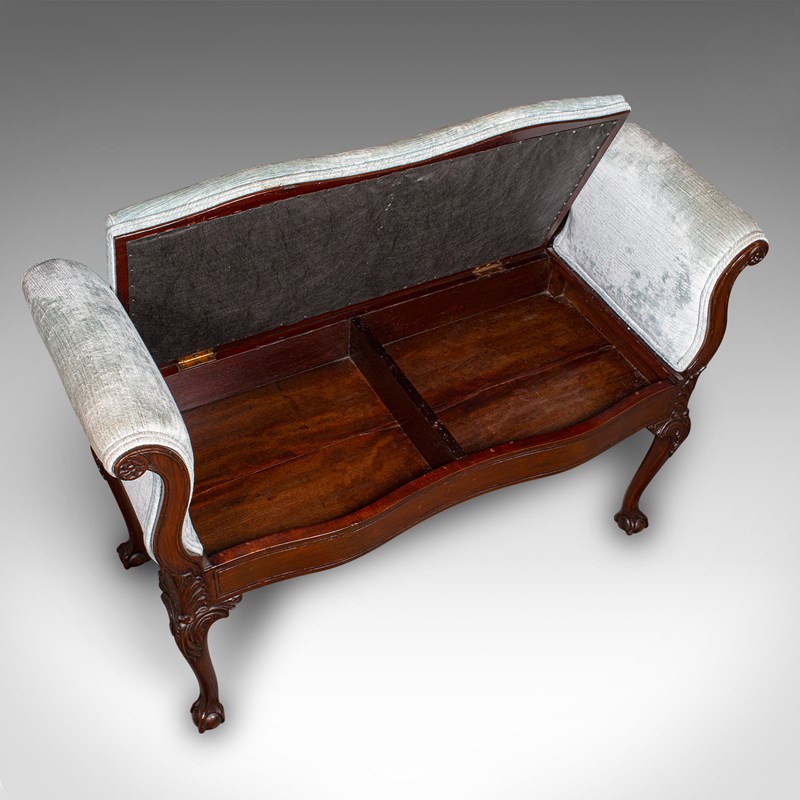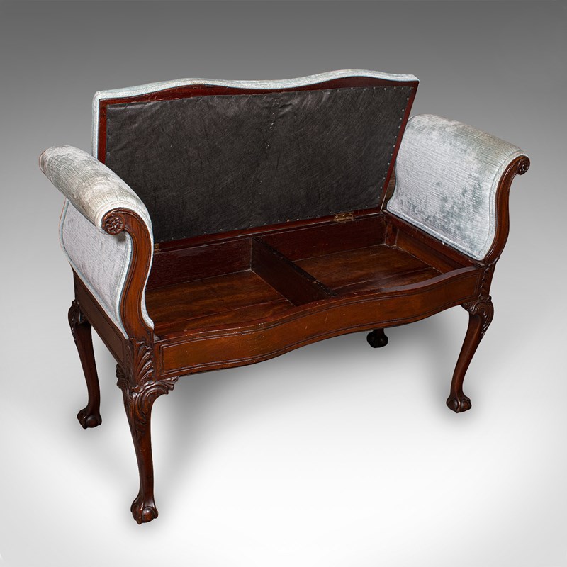 Antique Window Seat, English, Walnut, Duet, Bench, Georgian Revival, Edwardian
