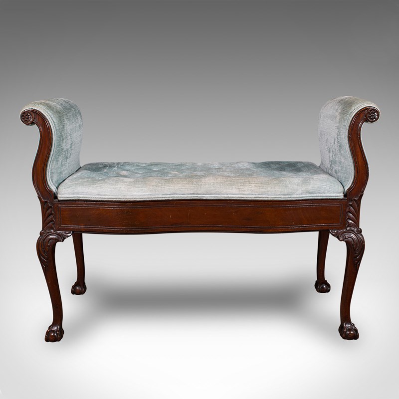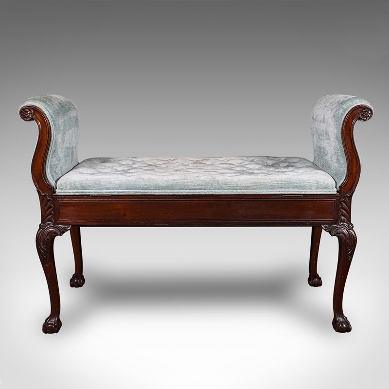 A distinguished addition to the refined home combining period style with practical utility A most attractive Edwardian window seat in the Georgian manner, this walnut bench blends comfort, craftsmanship, and elegance to striking effect. Rich in tone and gracefully styled, it presents a superb opportunity to introduce period sophistication to any setting. Solid joints and construction, delivered ready for the home.