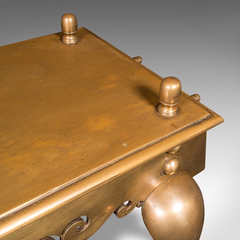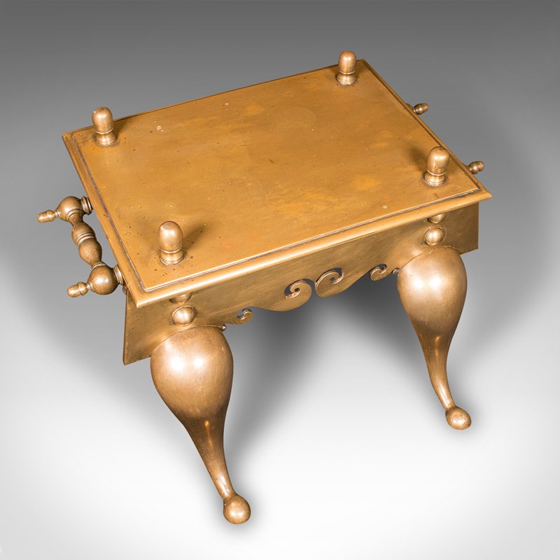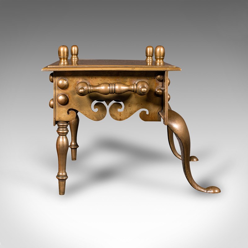 Heavy Antique Footman, English Brass, Inglenook Fireplace Warmer, Steps, Regency