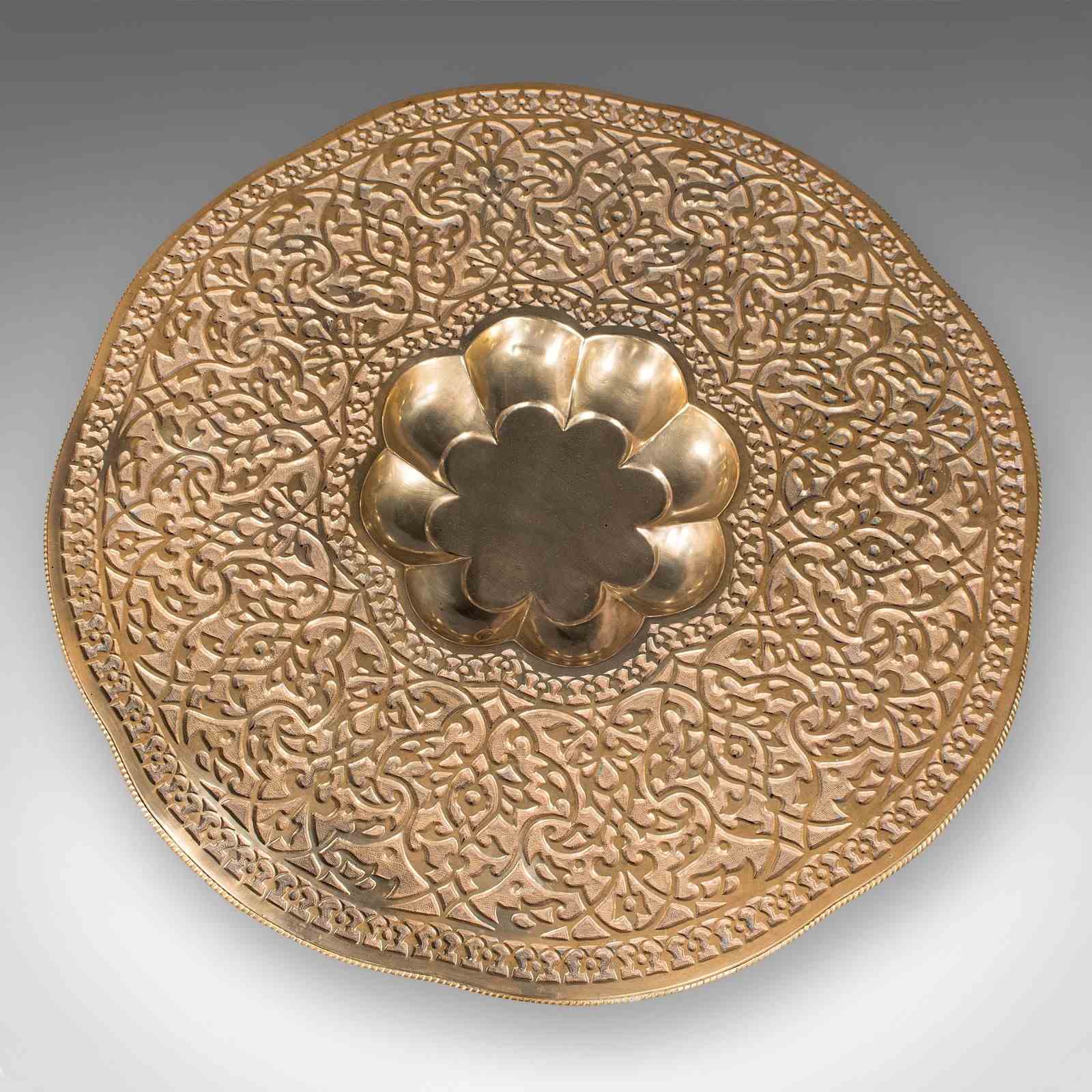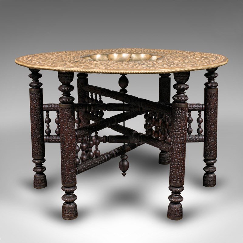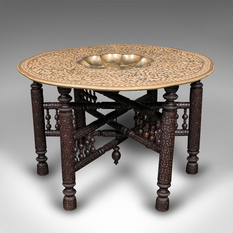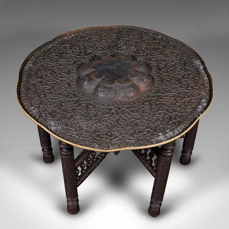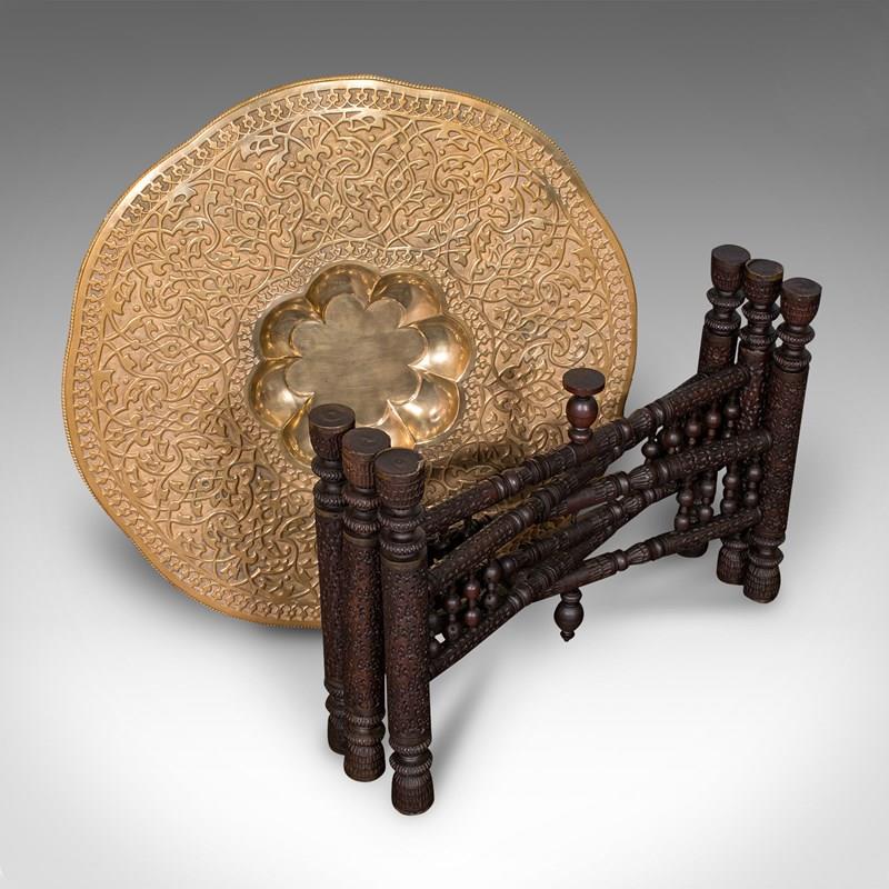 Large Antique Berber Tea Table, Middle East, Brass, Teak, Campaign, Circa 1920
