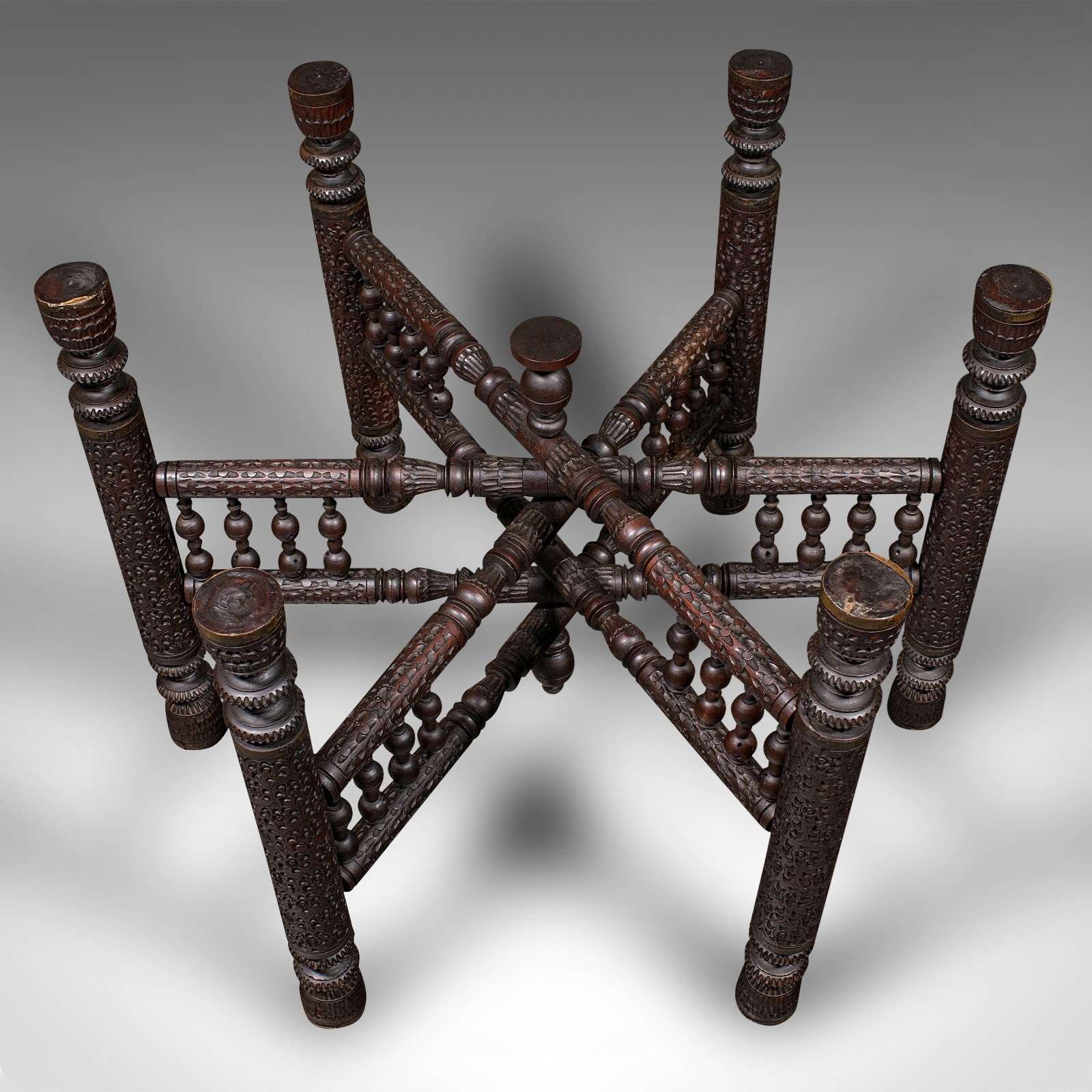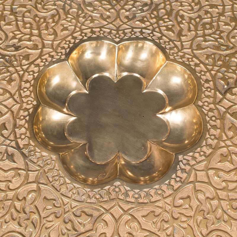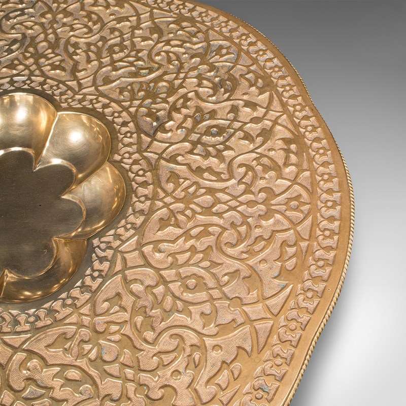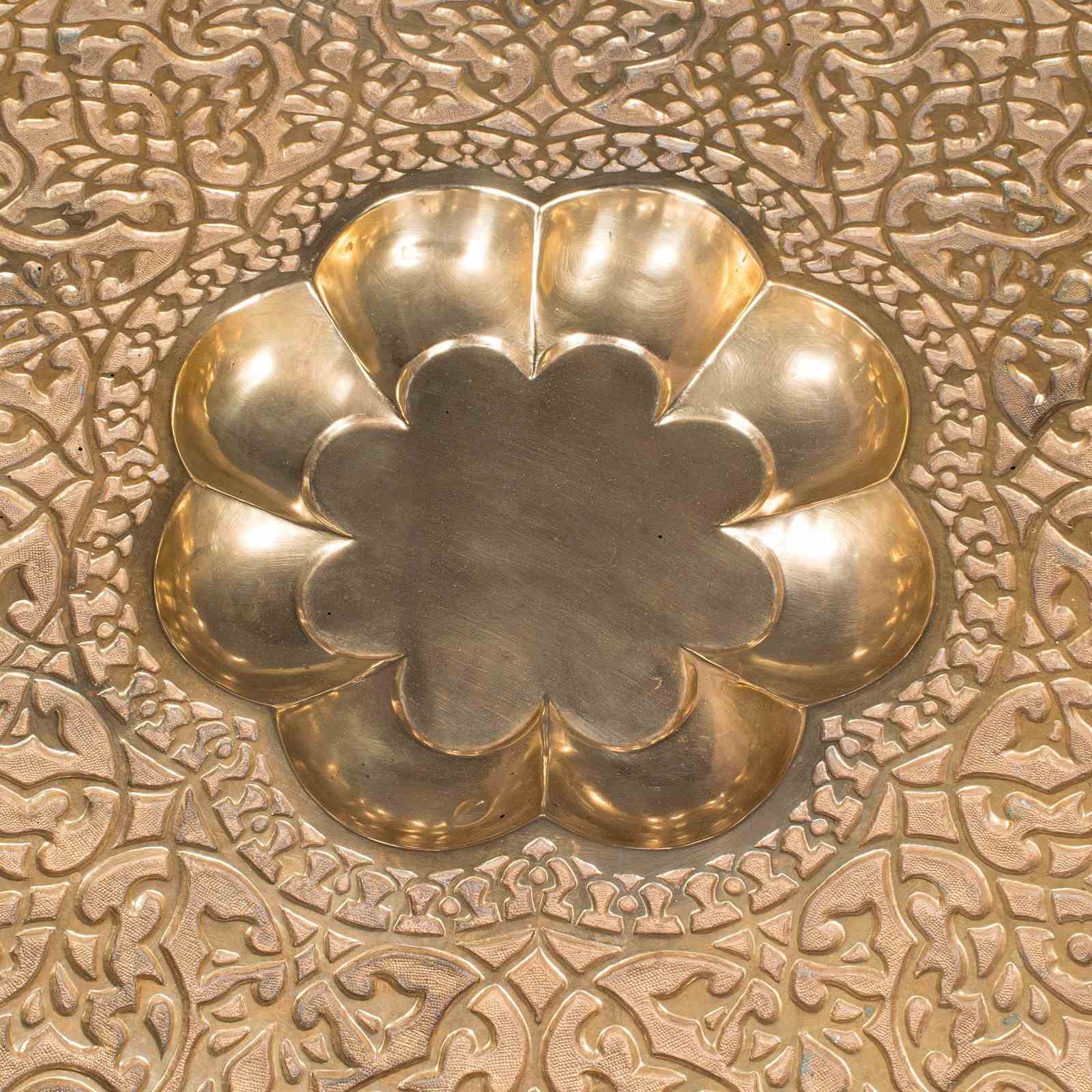 Large Antique Berber Tea Table, Middle East, Brass, Teak, Campaign, Circa 1920