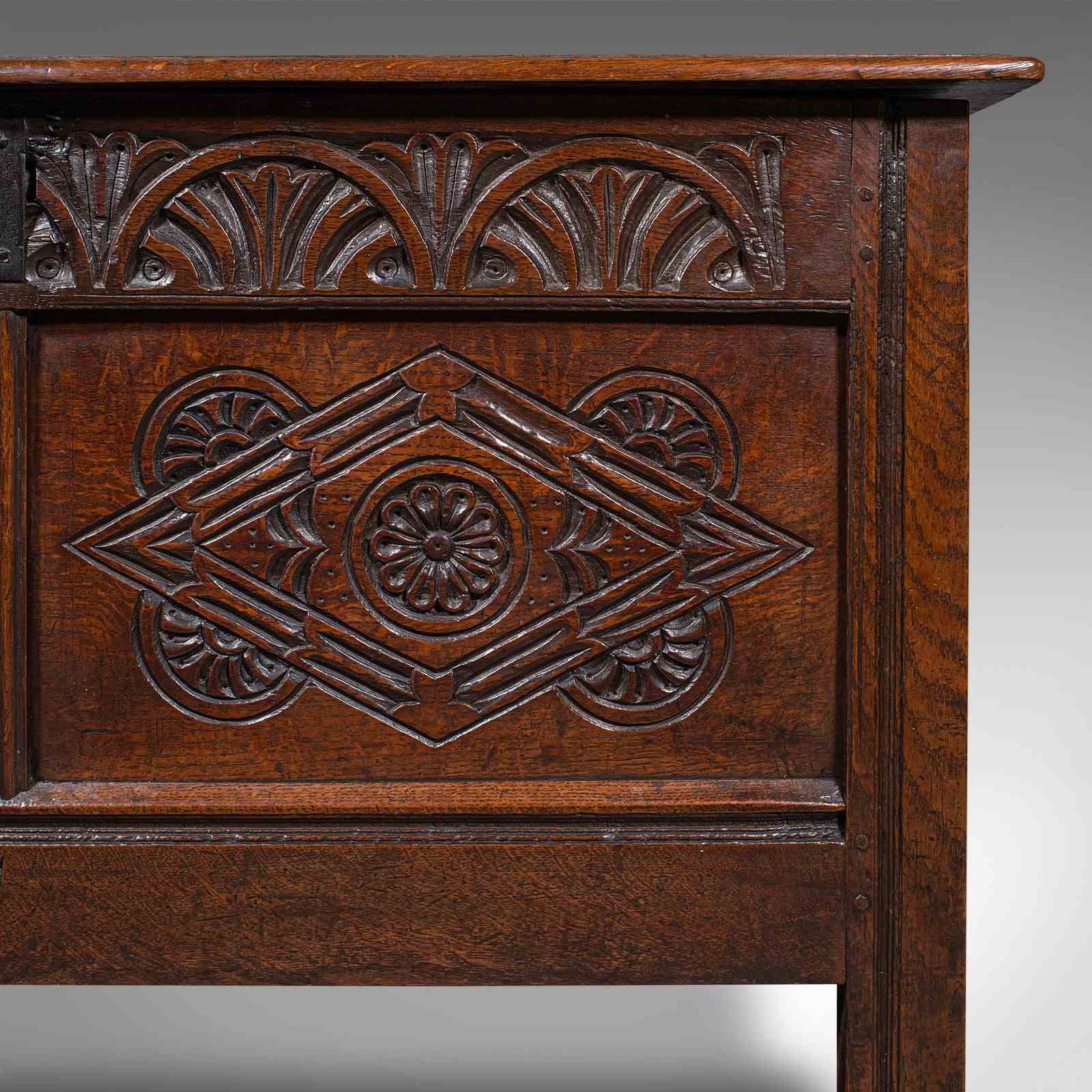 Large Antique Carved Coffer, English Oak, Blanket Chest, William III, Circa 1700
