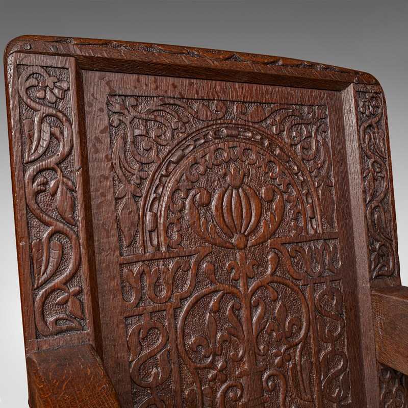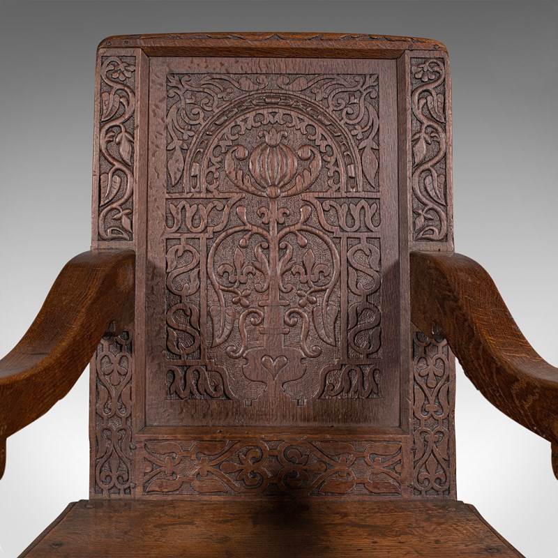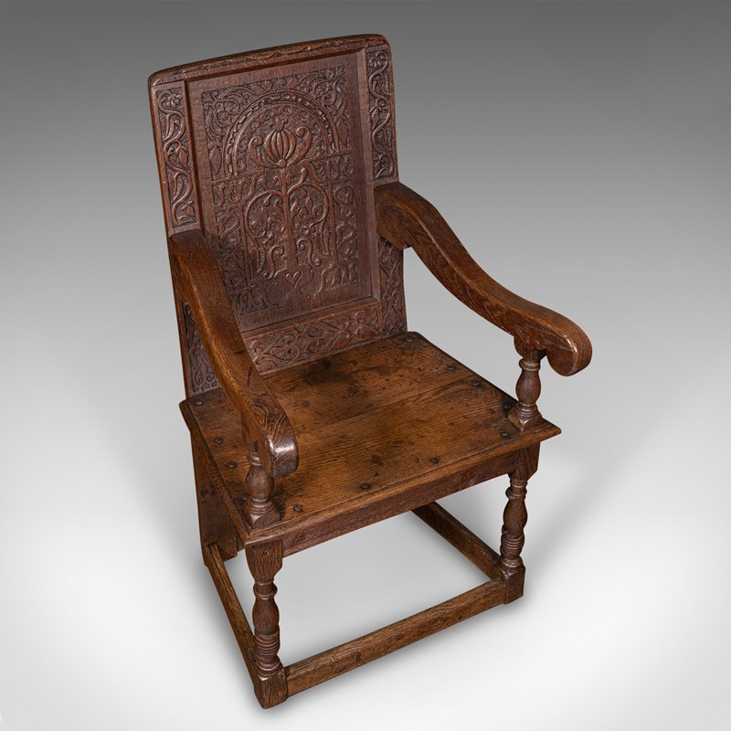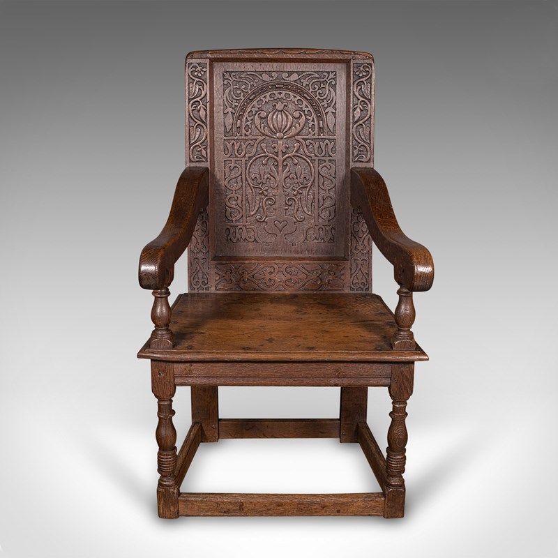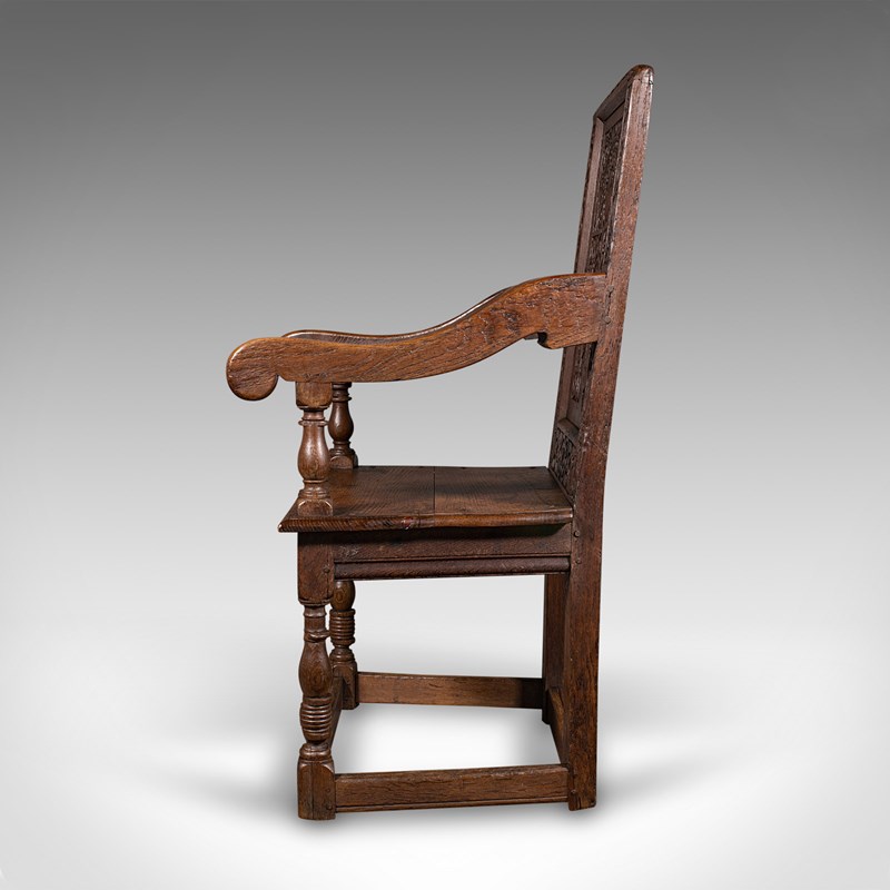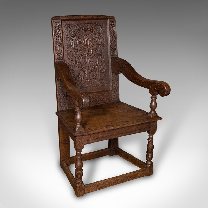 This is a fascinating antique Wainscote armchair, skilfully crafted from appealing Scottish oak stocks. Solid joints and construction, delivered waxed, polished and ready for the home.