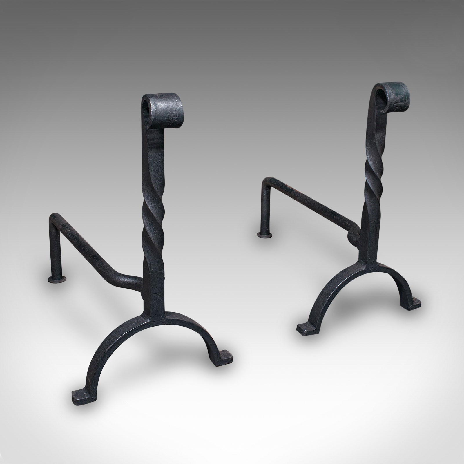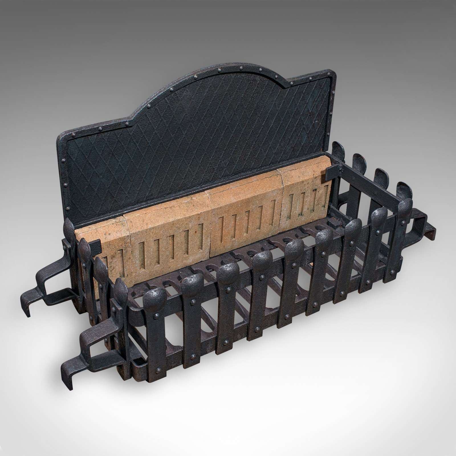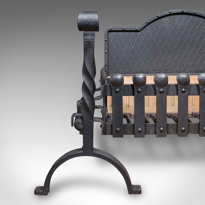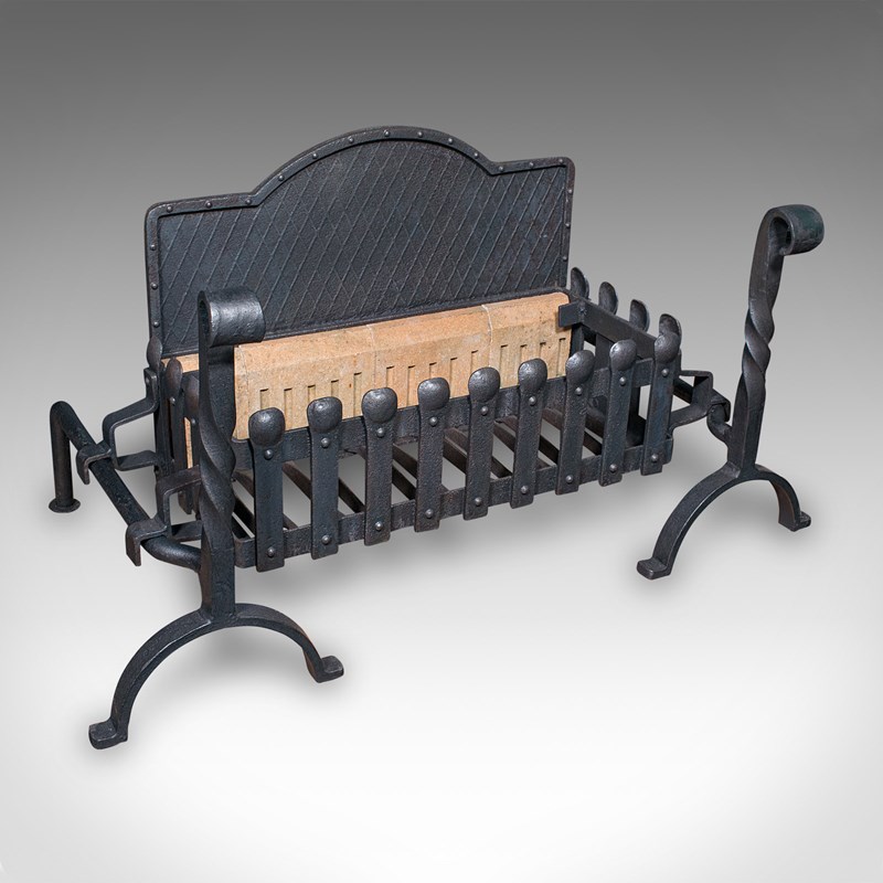 Large Antique Fireplace Set, English, Inglenook Fire Basket, Andirons, Victorian
