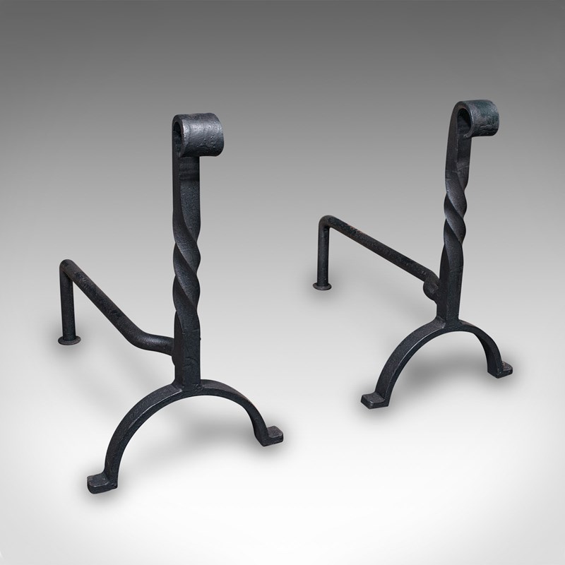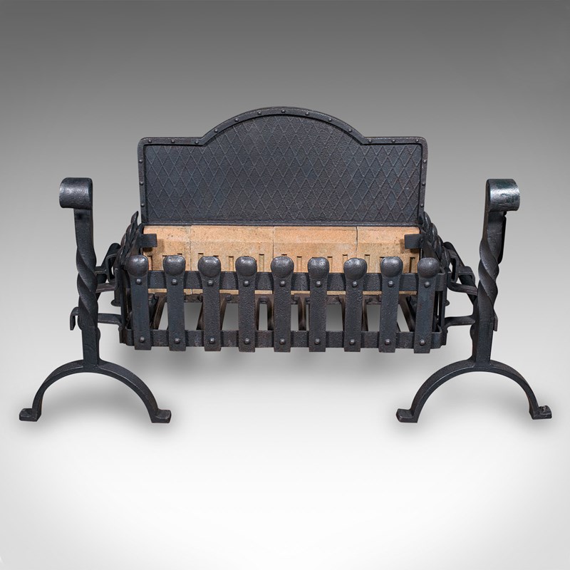 Accompanied by a pair of handsome fire dogs, supporting the basket with elegance and stability