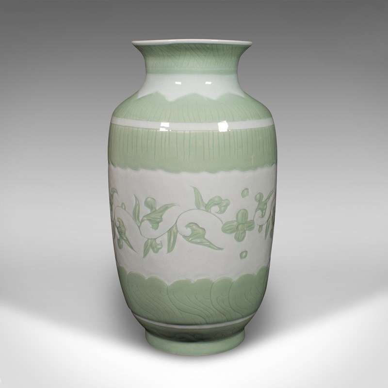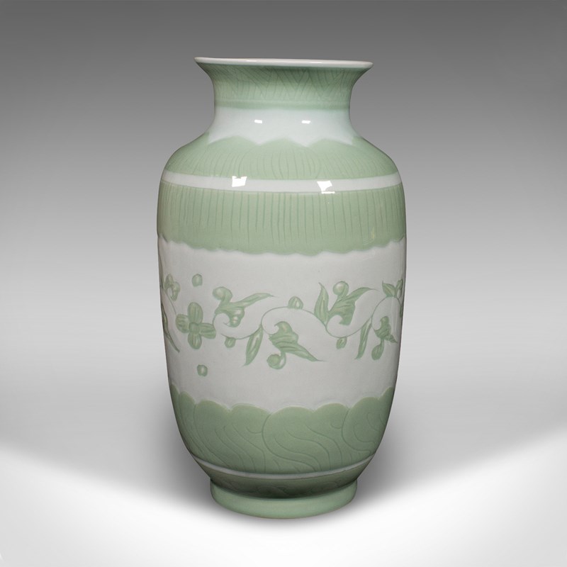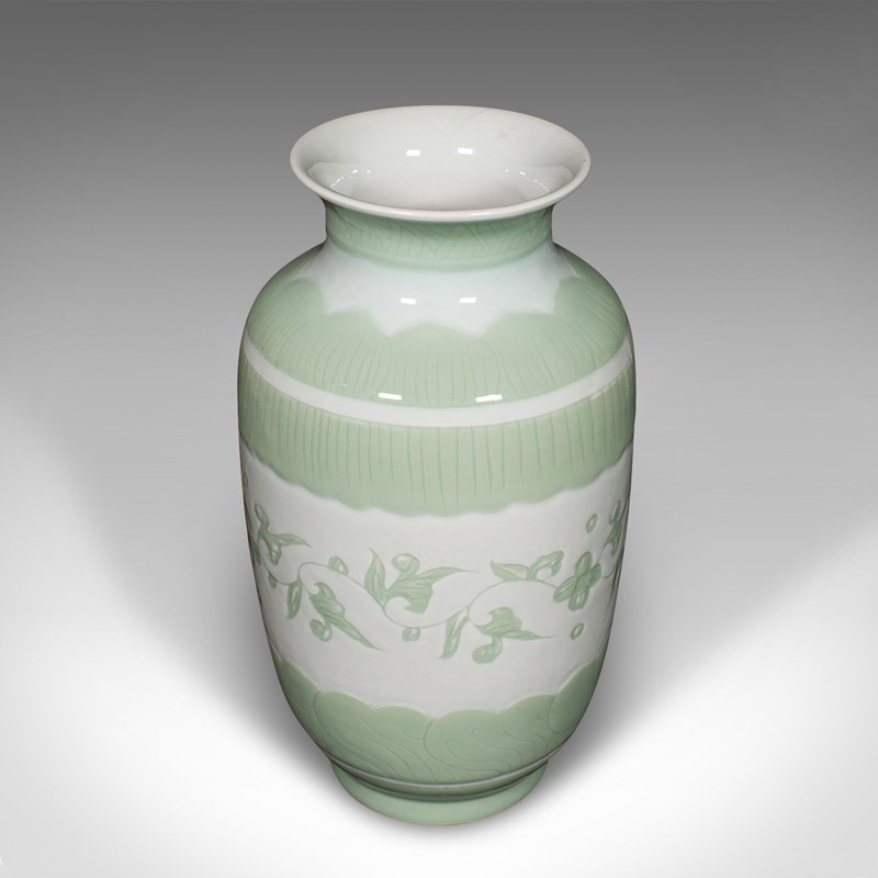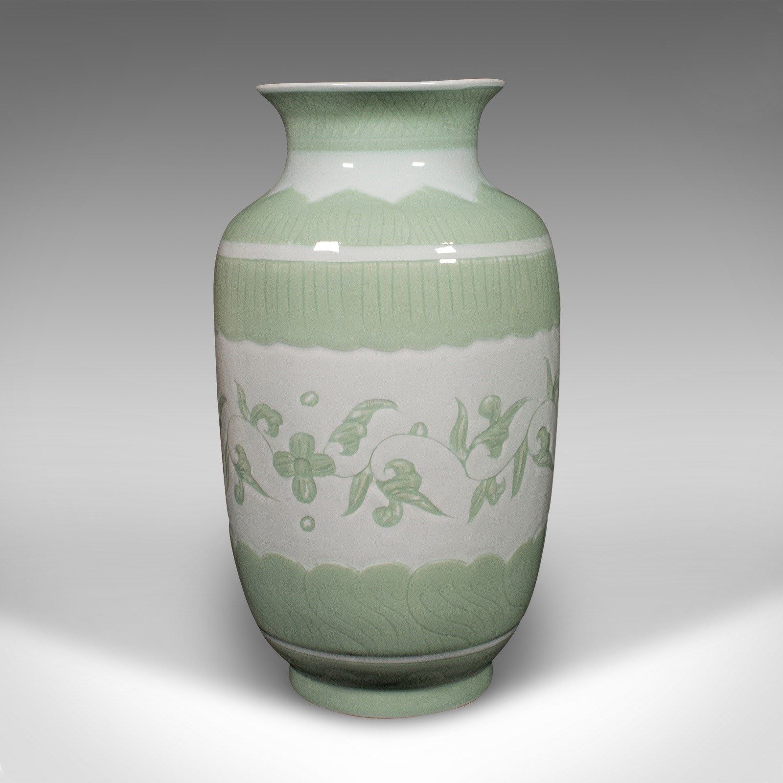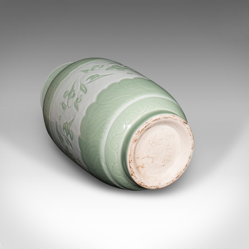 Large Antique Flower Bouquet Vase, Chinese, Celadon Ceramic Urn, Victorian, 1900