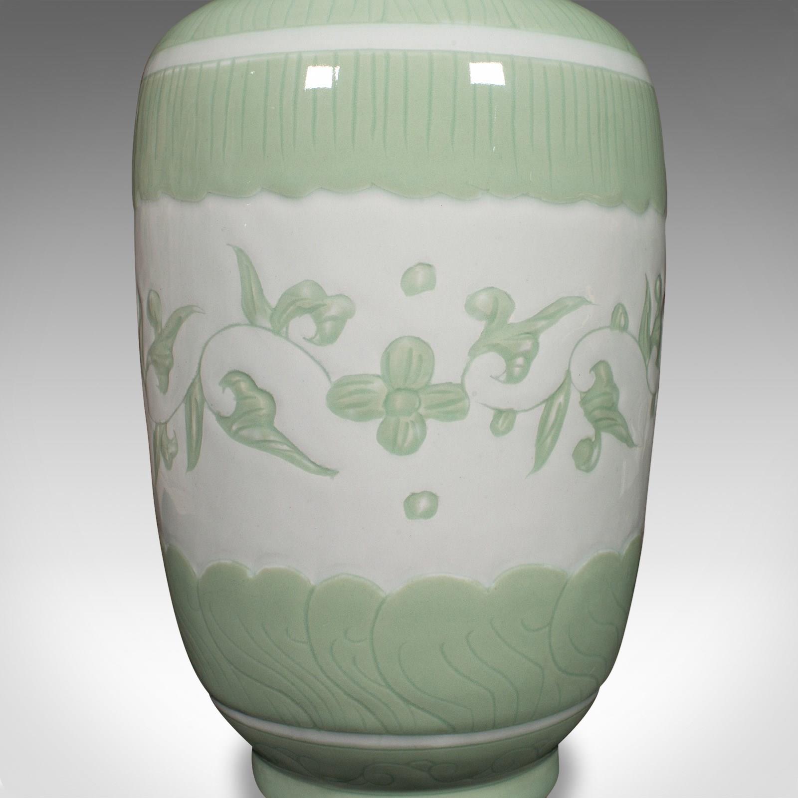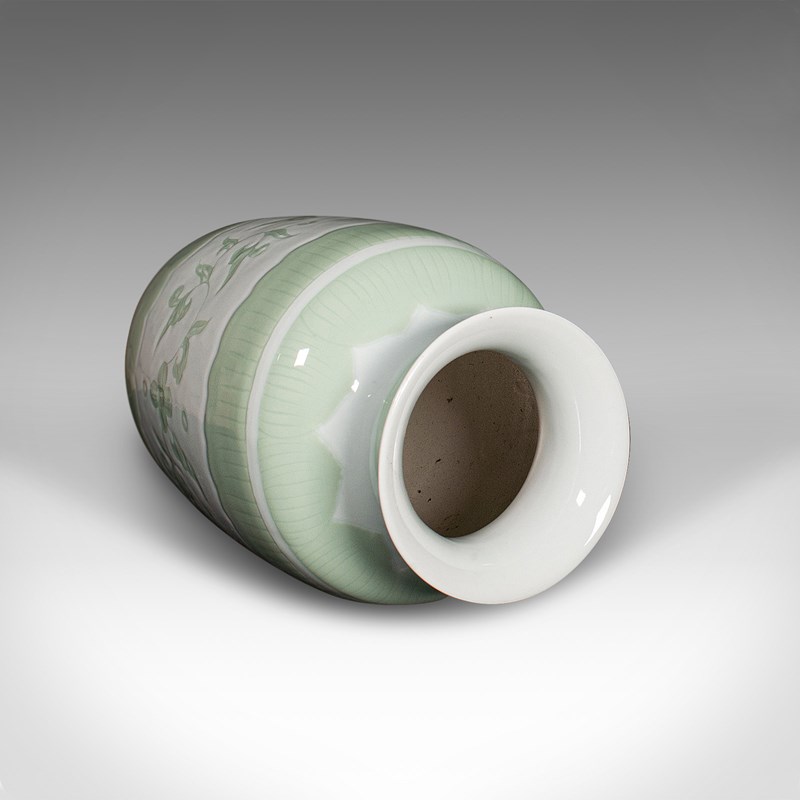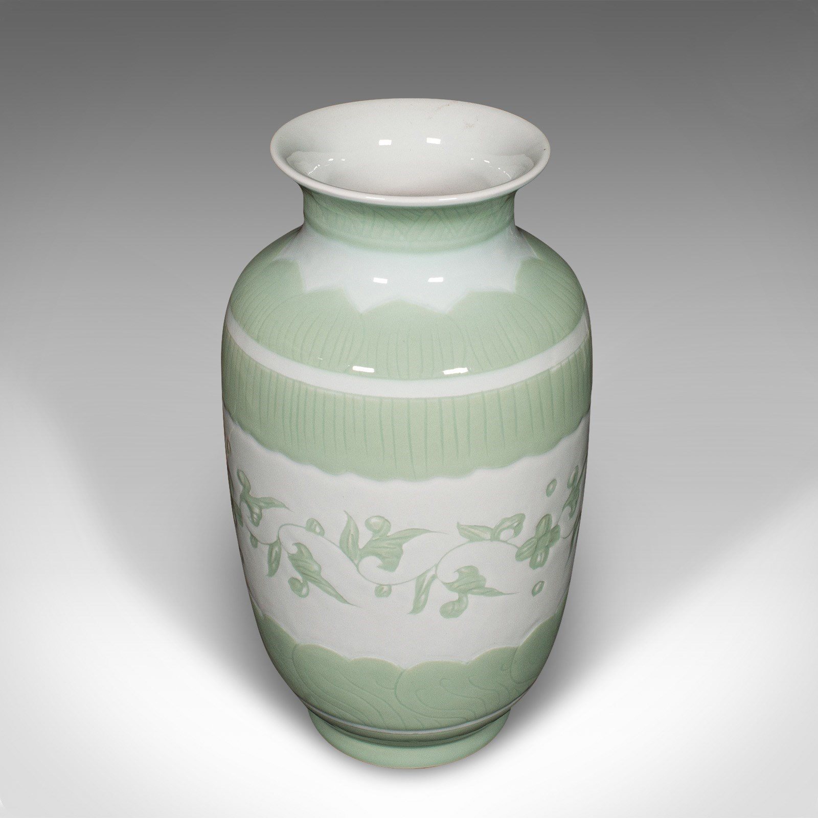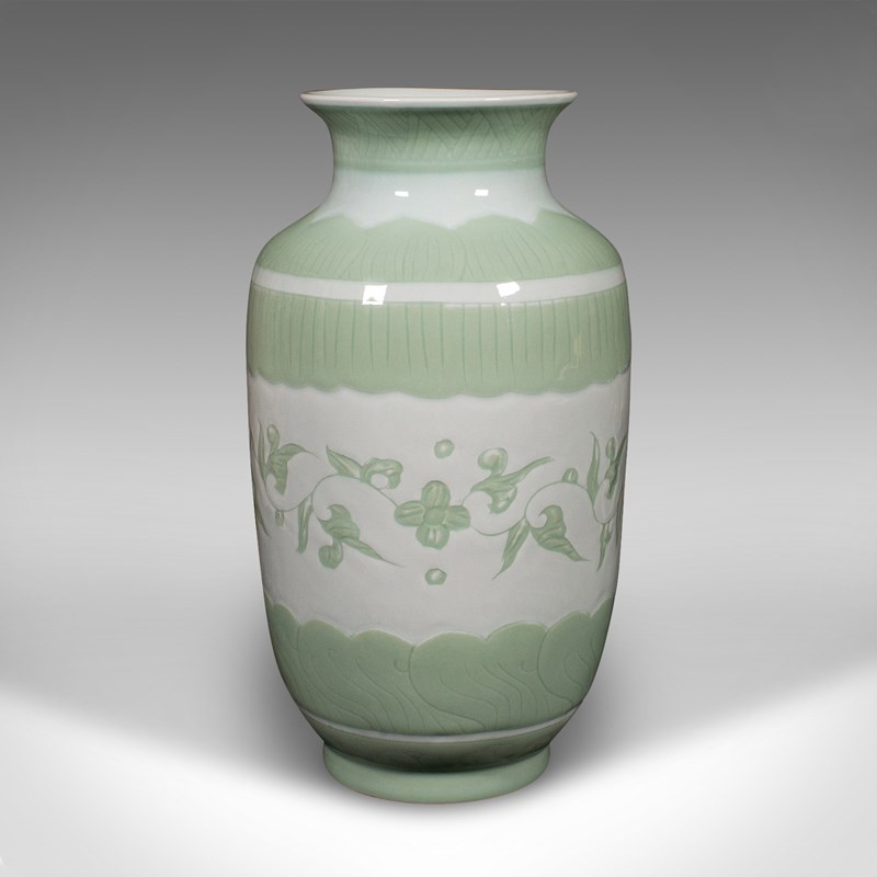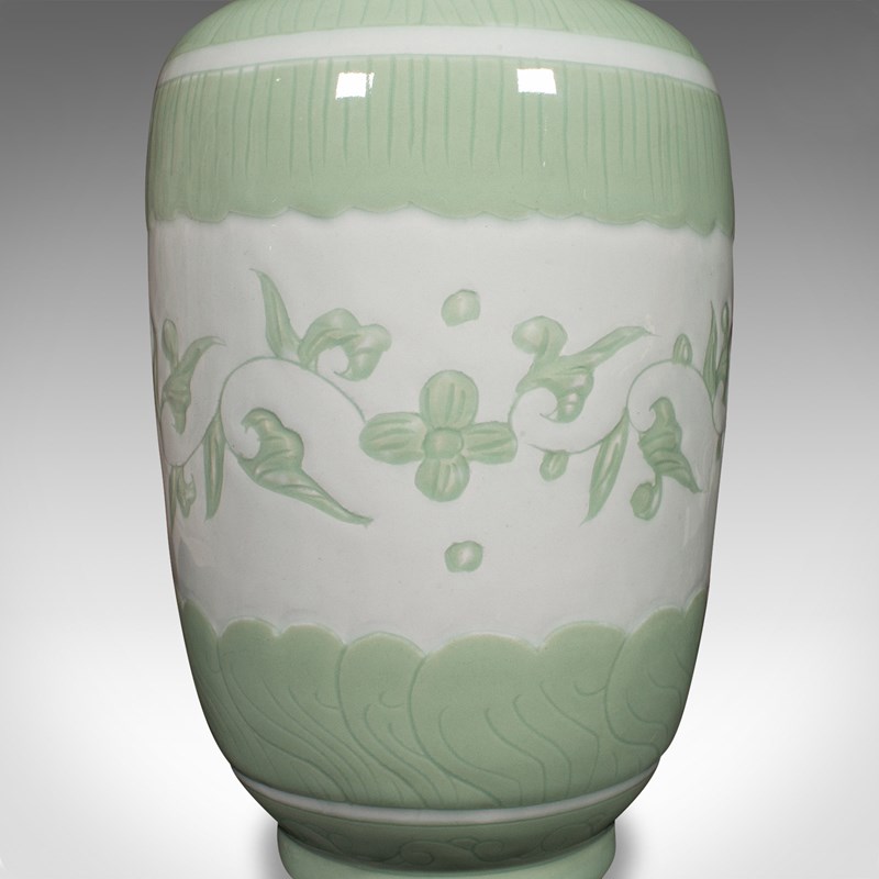 Large Antique Flower Bouquet Vase, Chinese, Celadon Ceramic Urn, Victorian, 1900