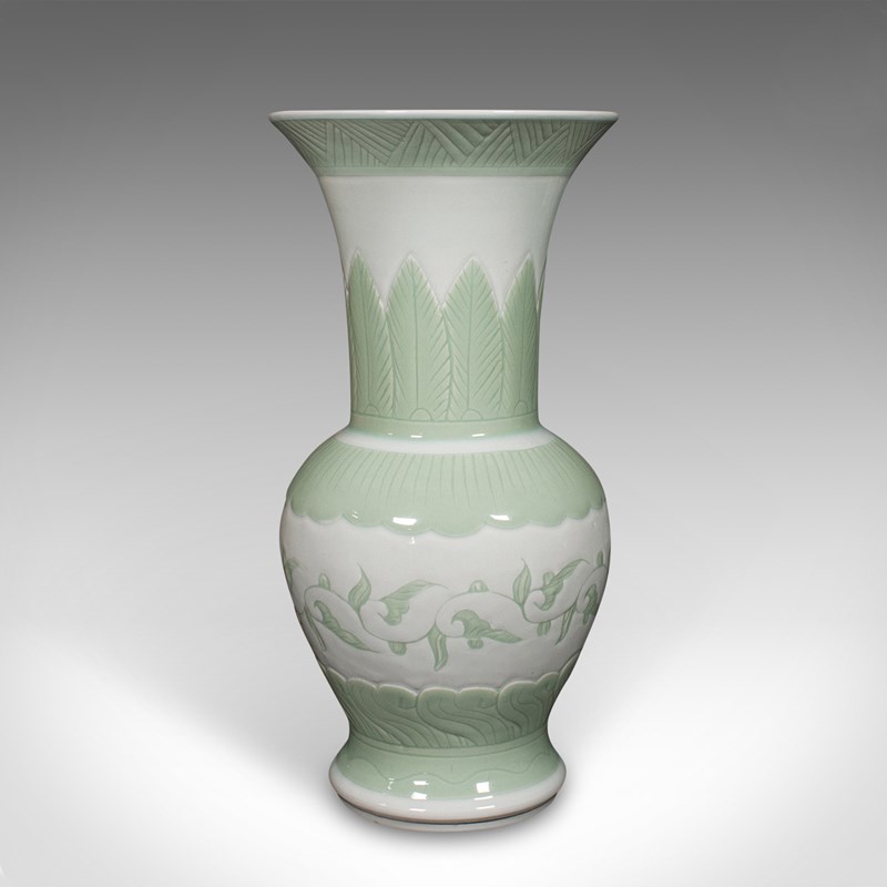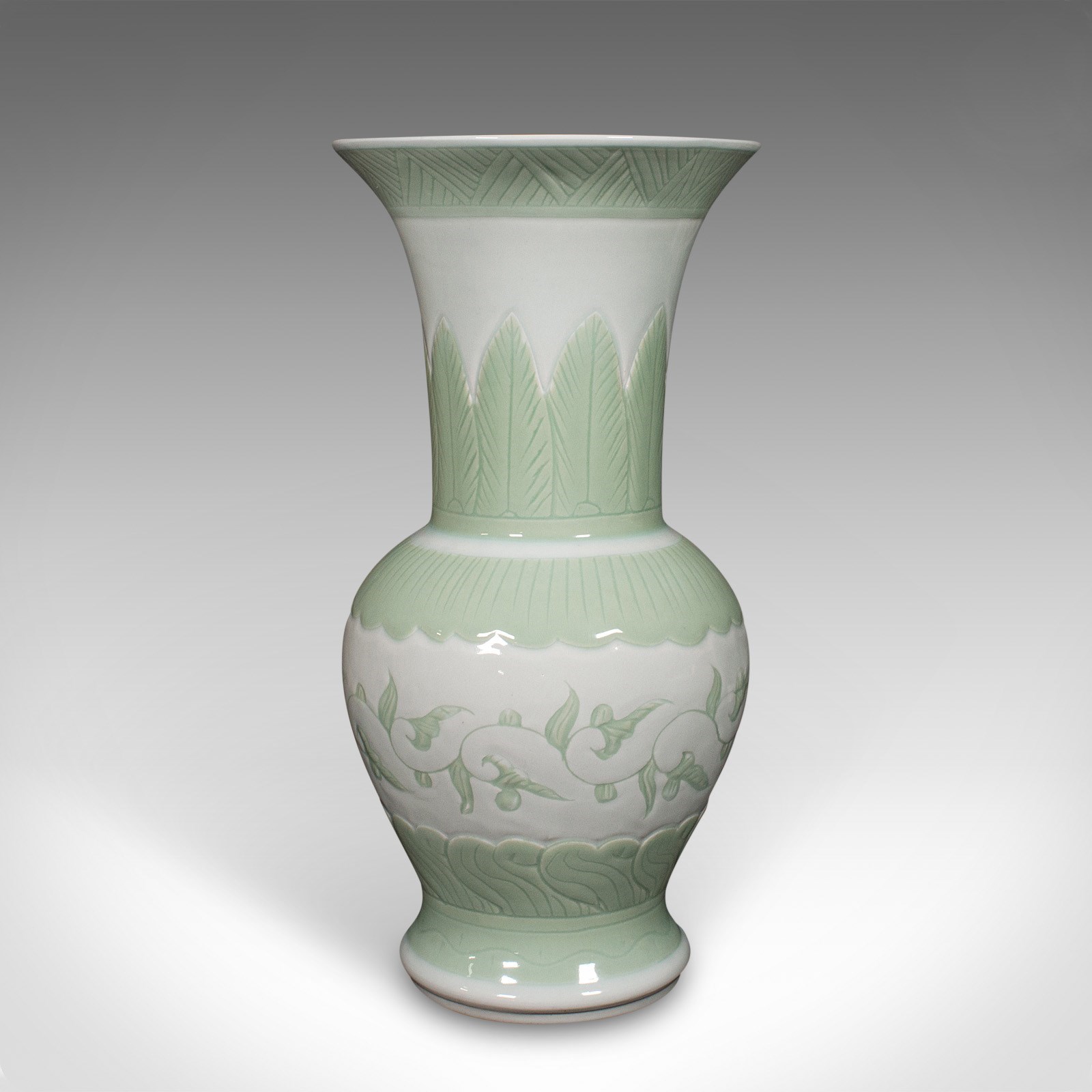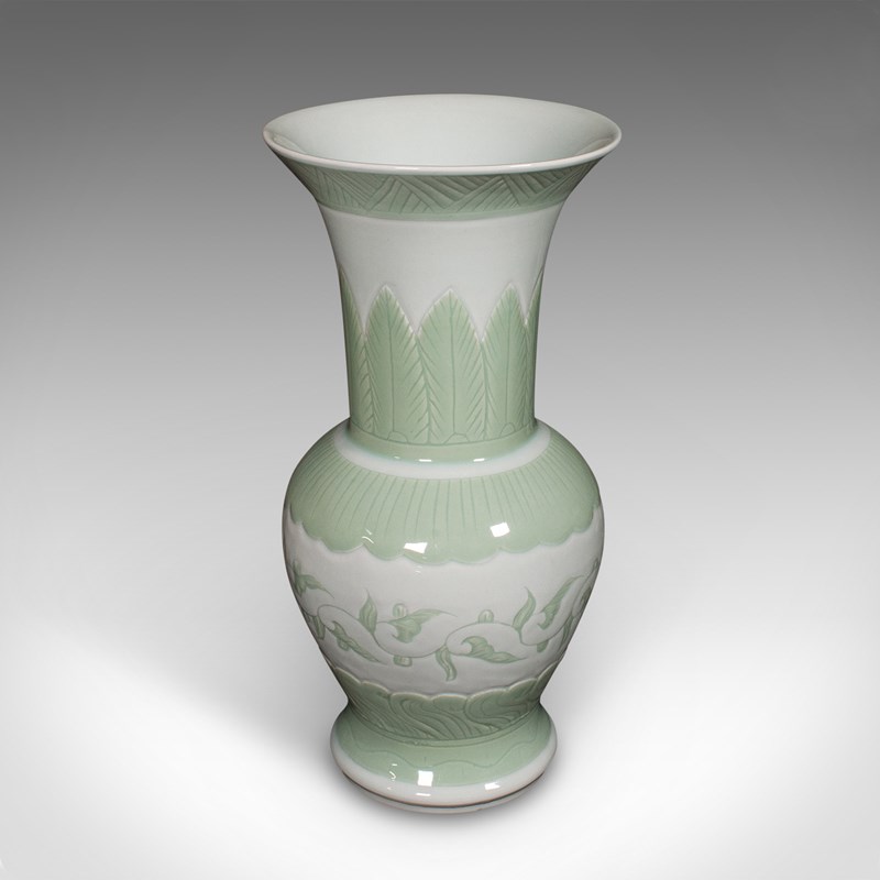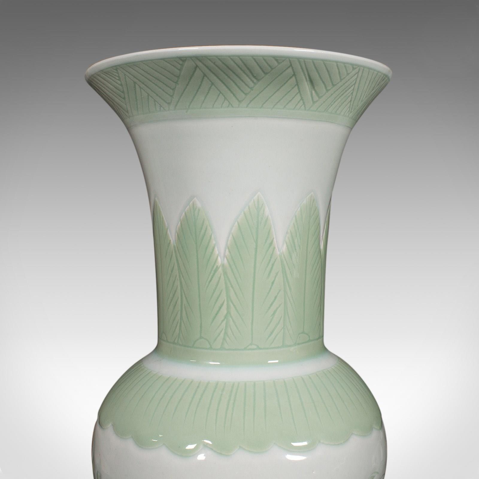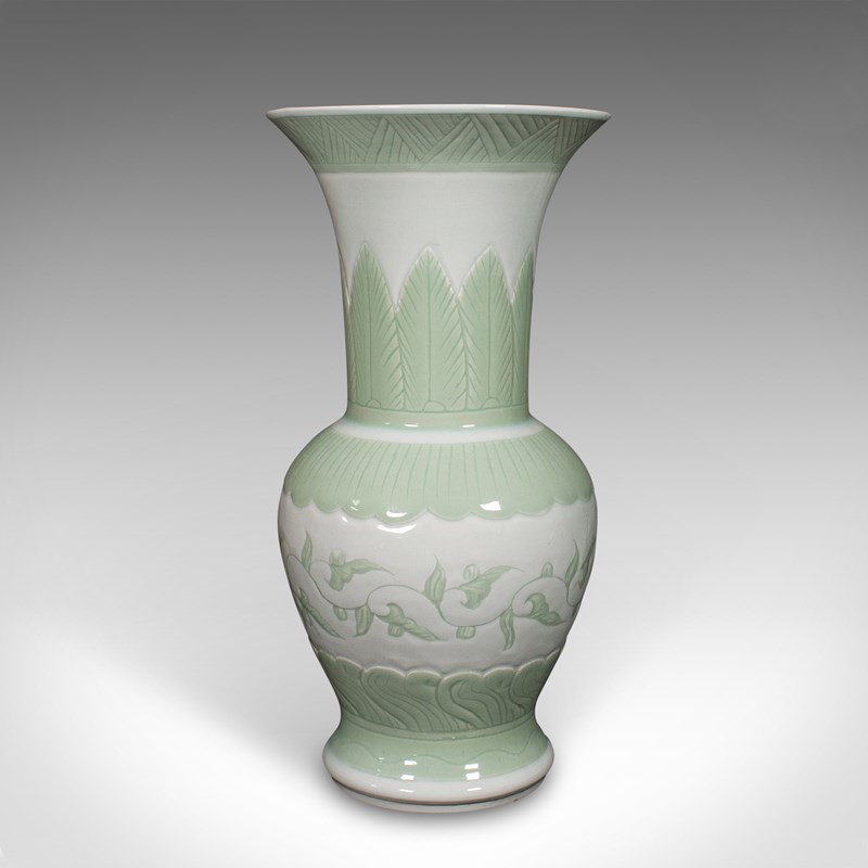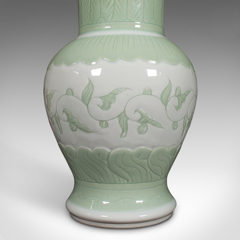 Large Antique Flower Urn, Chinese, Celadon Ceramic Display Vase, Victorian, 1900