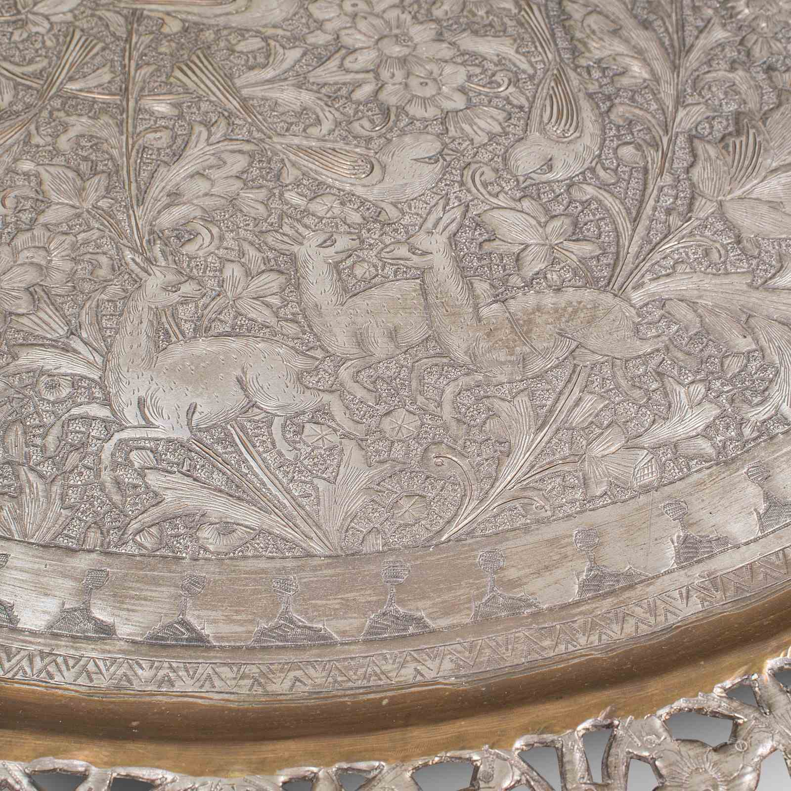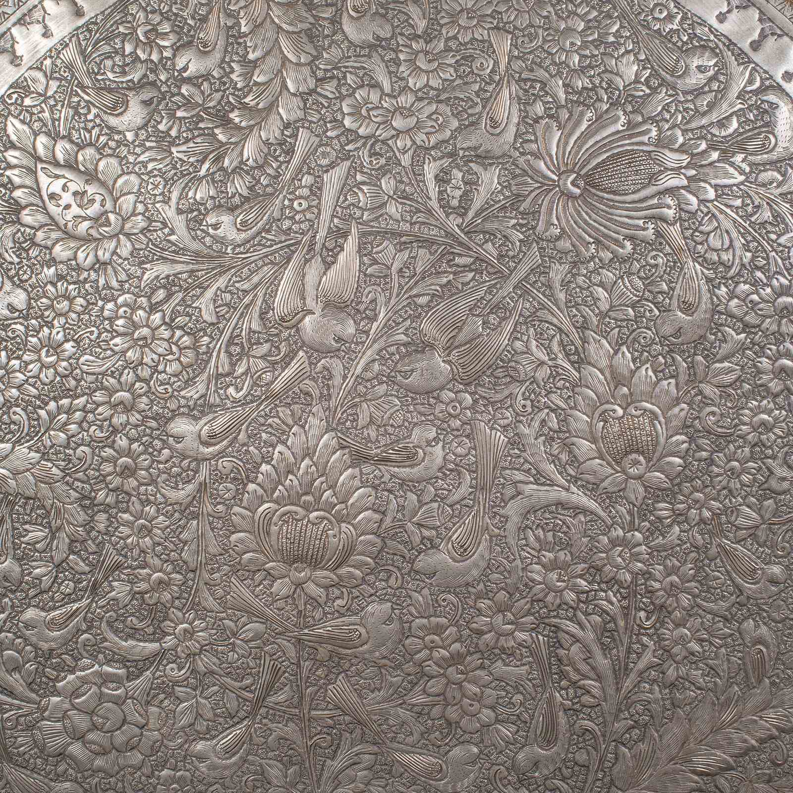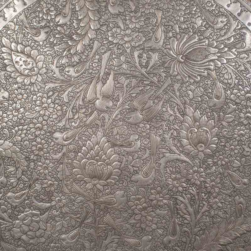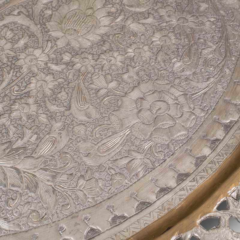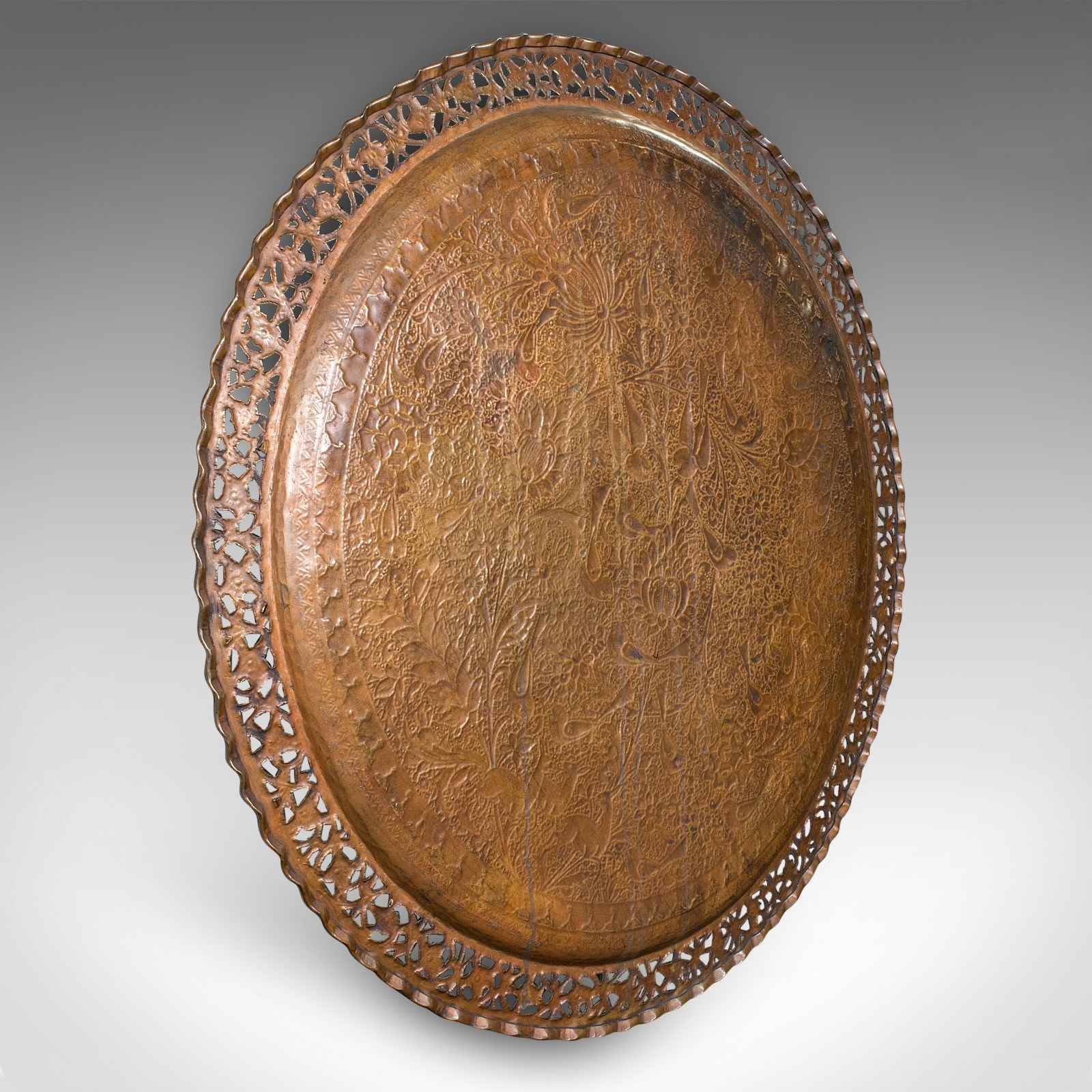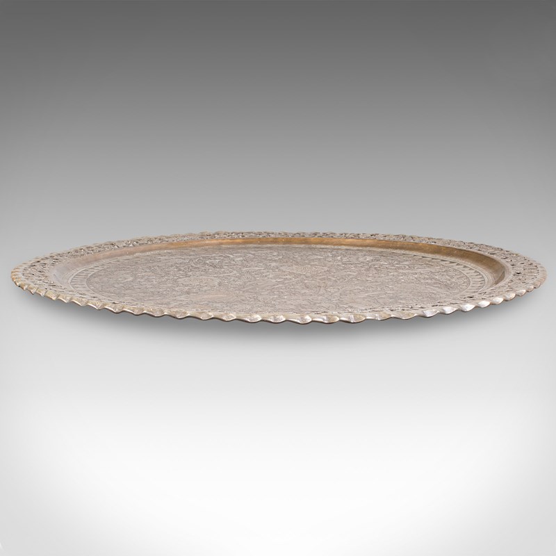 Large Antique Kashmiri Serving Tray, Indian, Silvered Brass, Platter, Victorian
