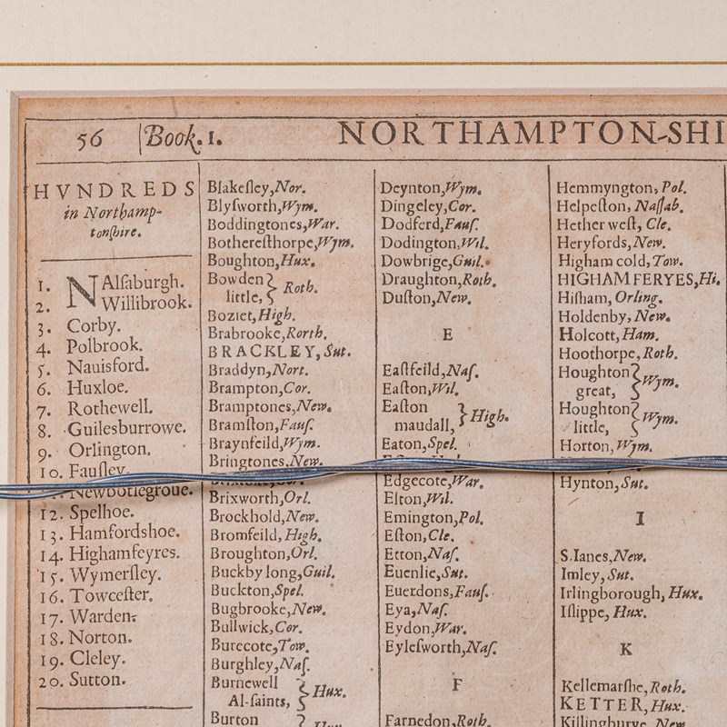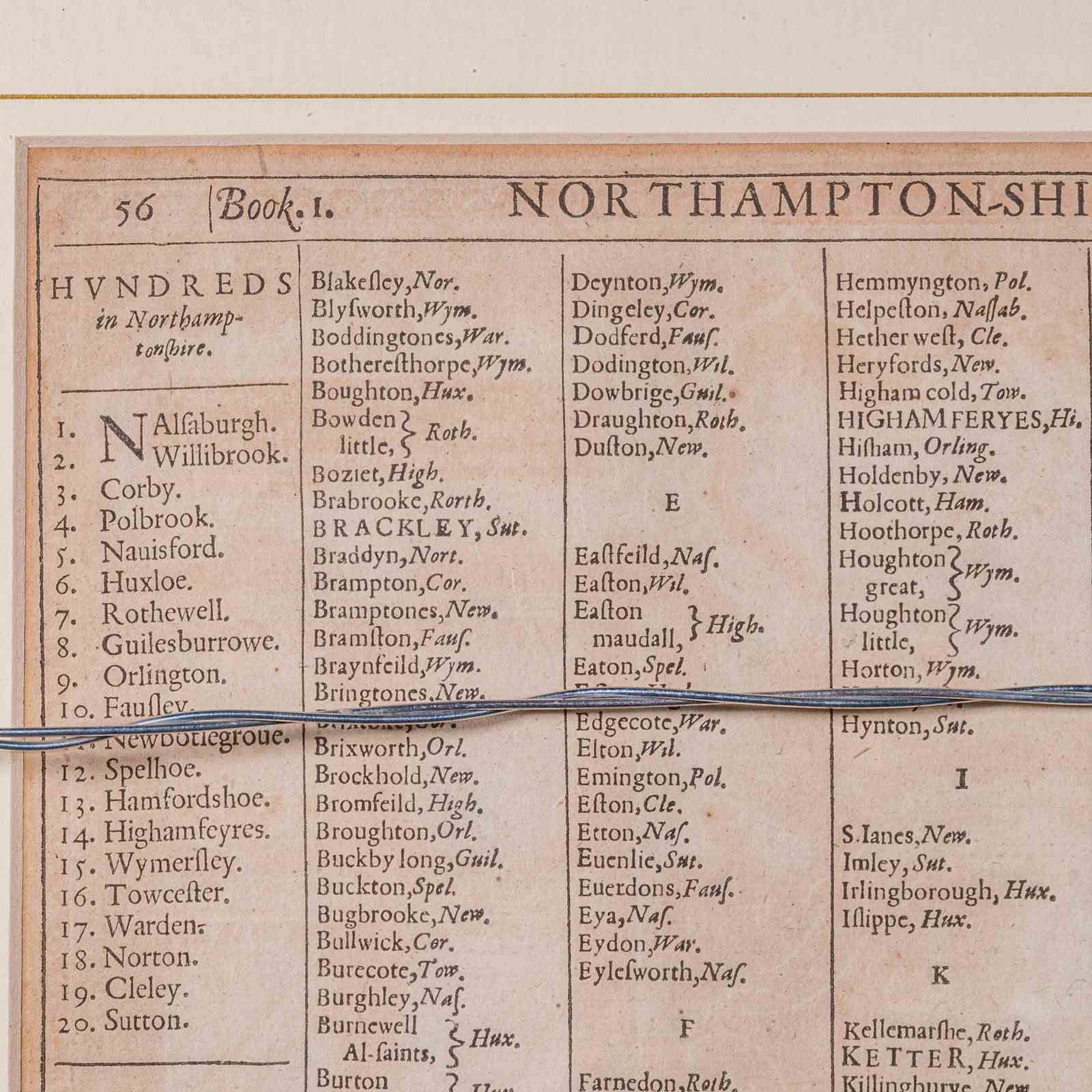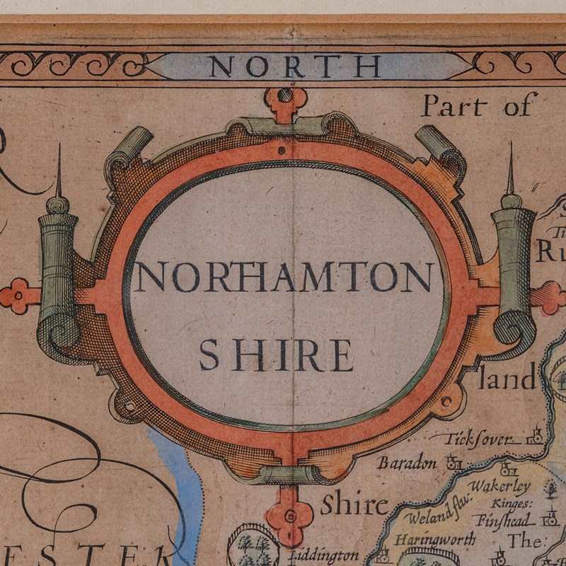 - Superb lithography reproduction of Northamtonshire - place names are written in 17th century English