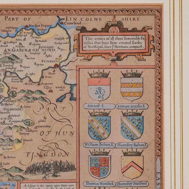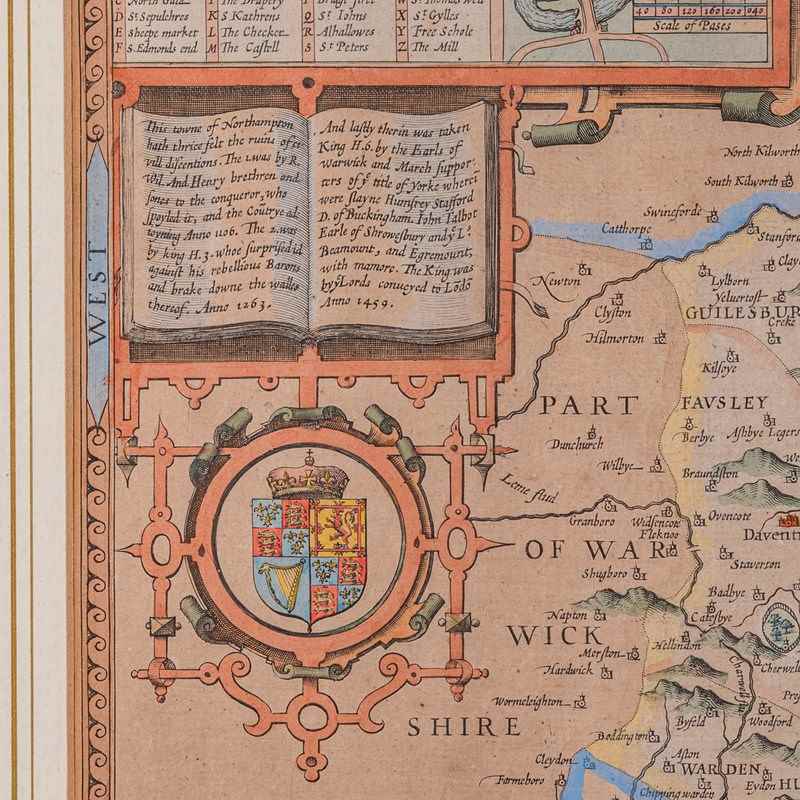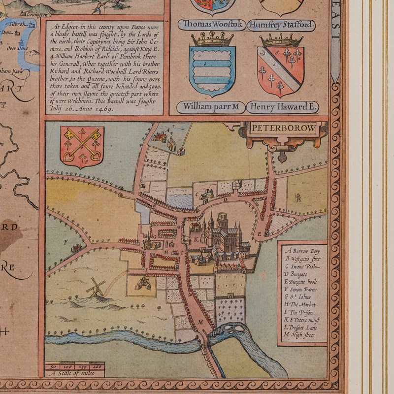 - Exceptional detail, as expected from a John Speed map, with town plans and heraldry