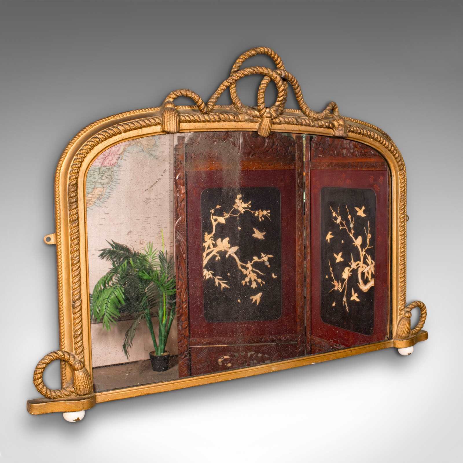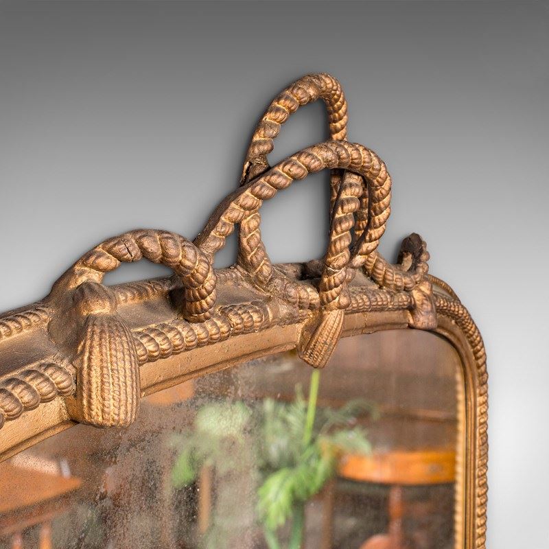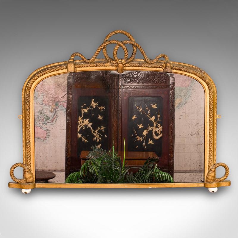 Large Antique Overmantle Mirror, English, Giltwood, Nautical Taste, Victorian