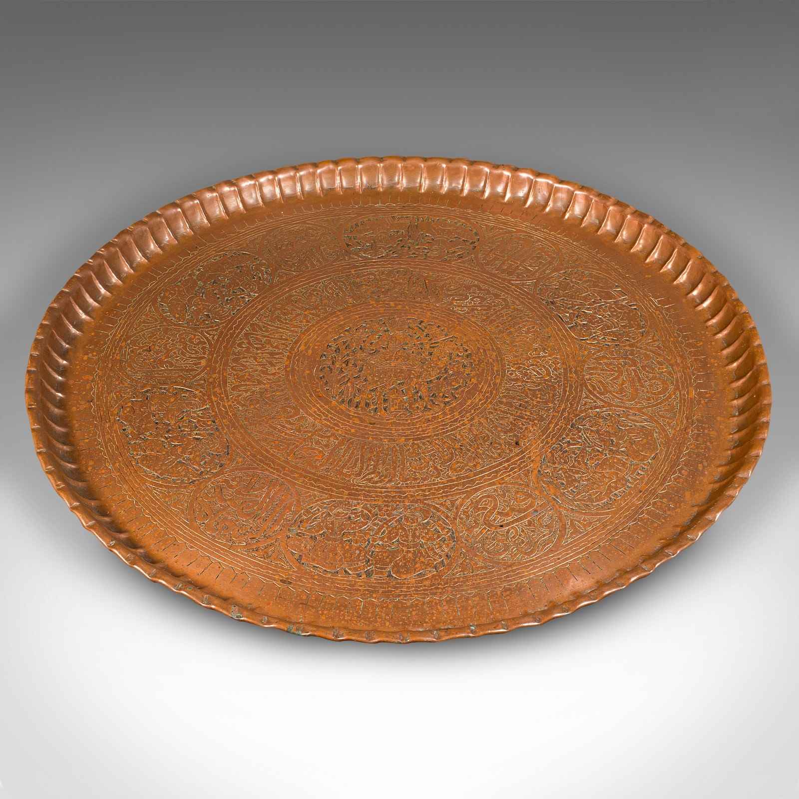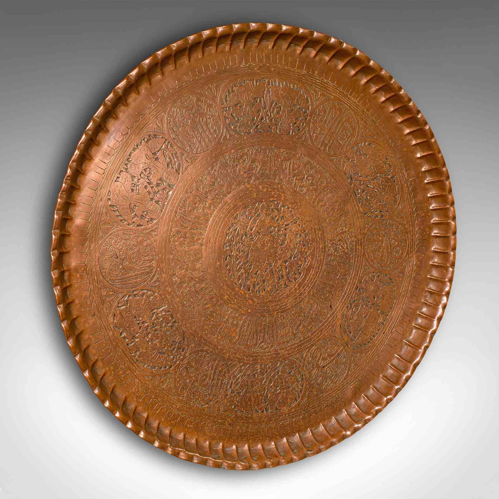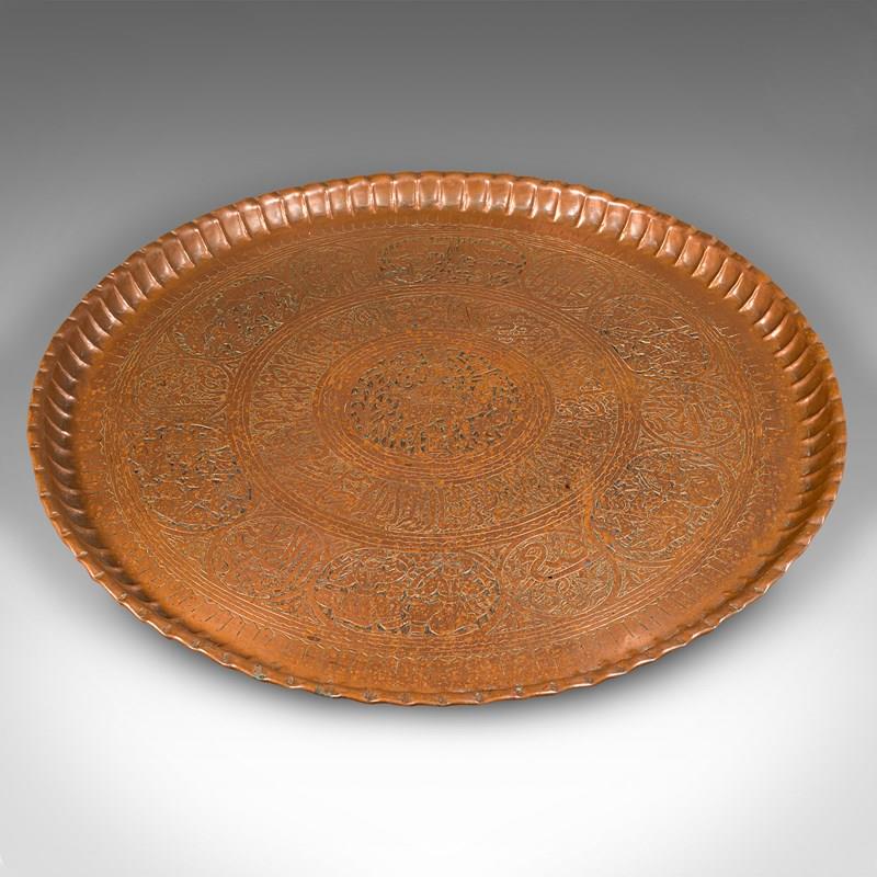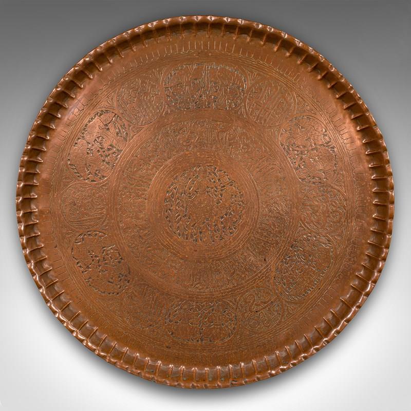 Large Antique Presentation Tray, Persian, Engraved Copper, Charger, Victorian