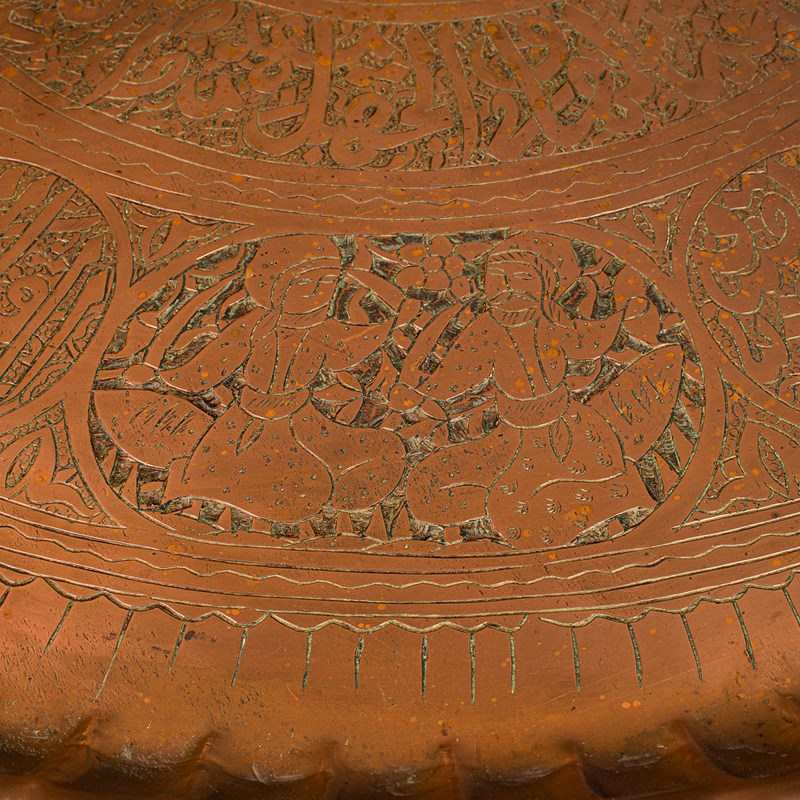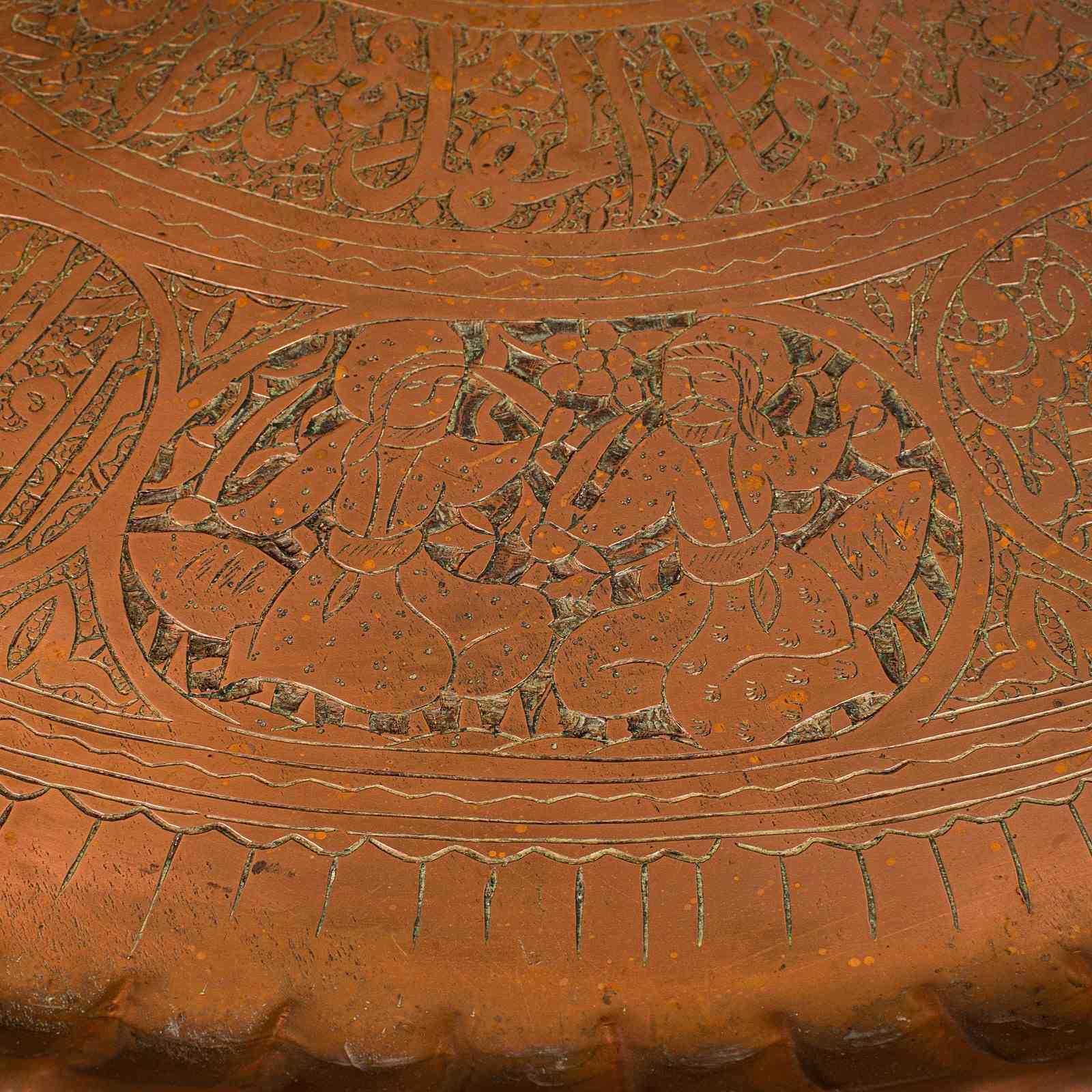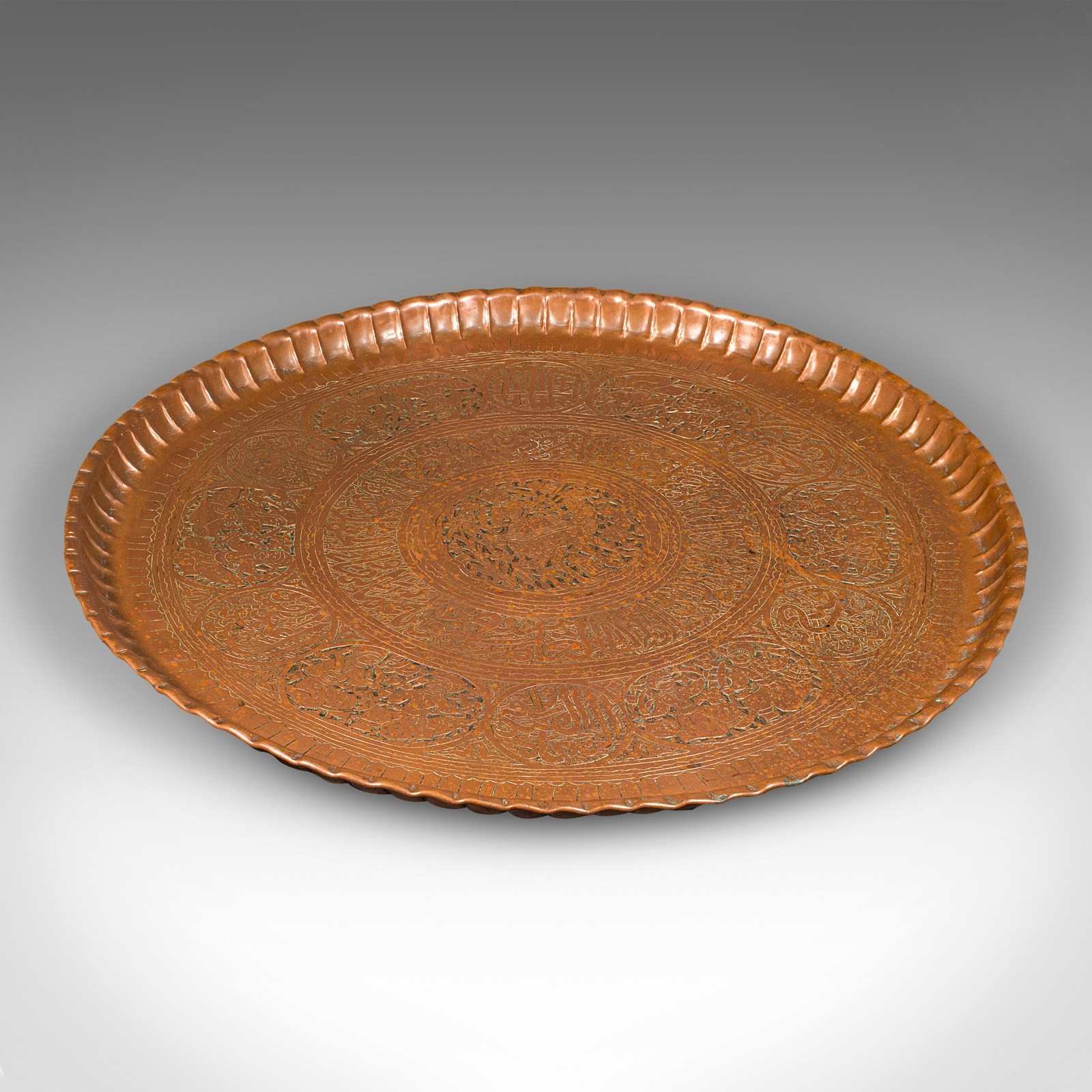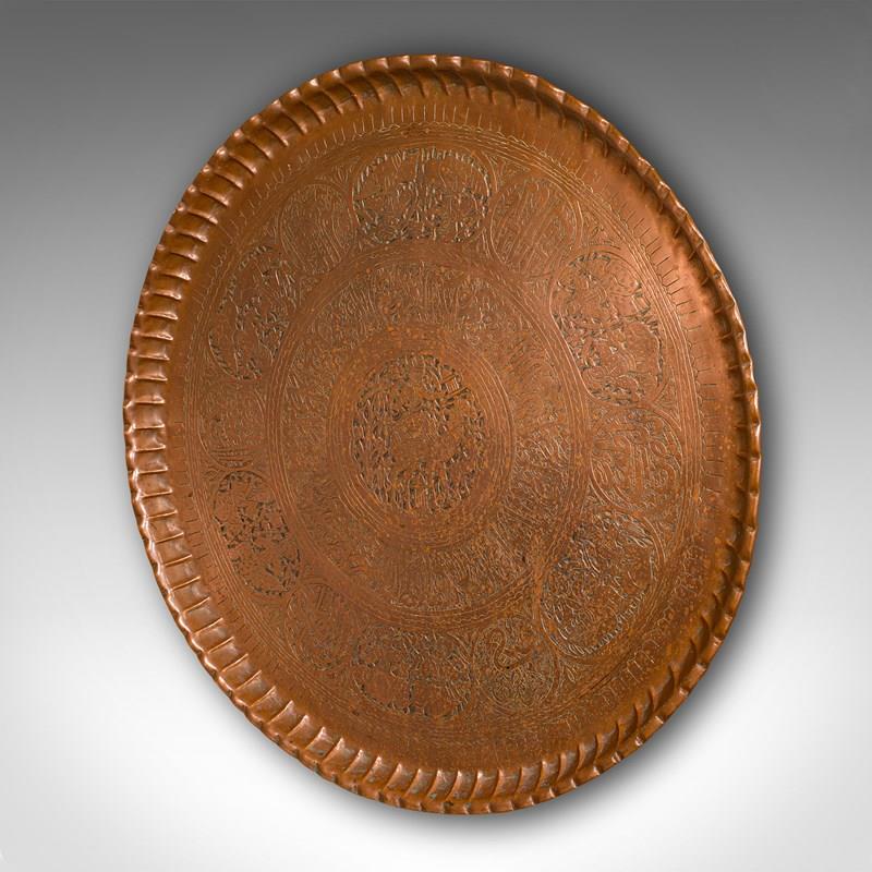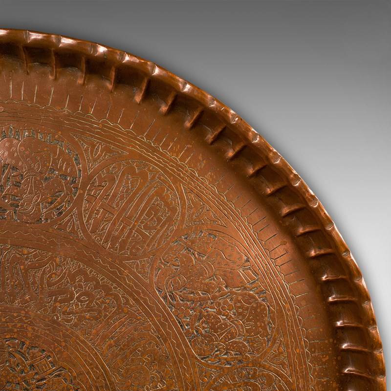 Large Antique Presentation Tray, Persian, Engraved Copper, Charger, Victorian