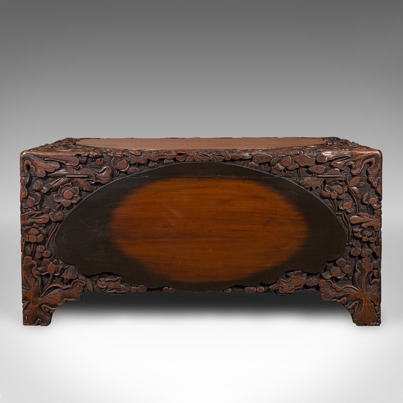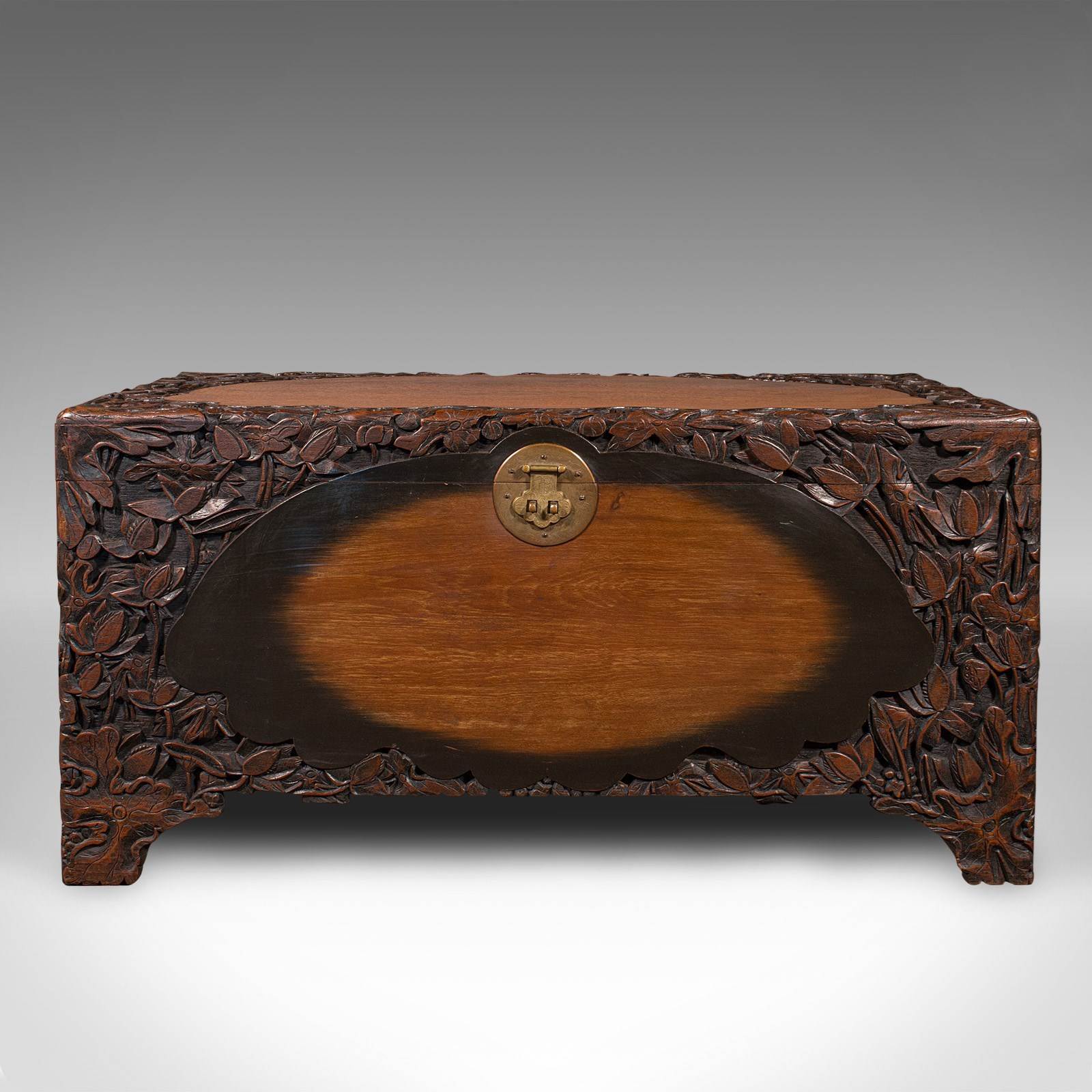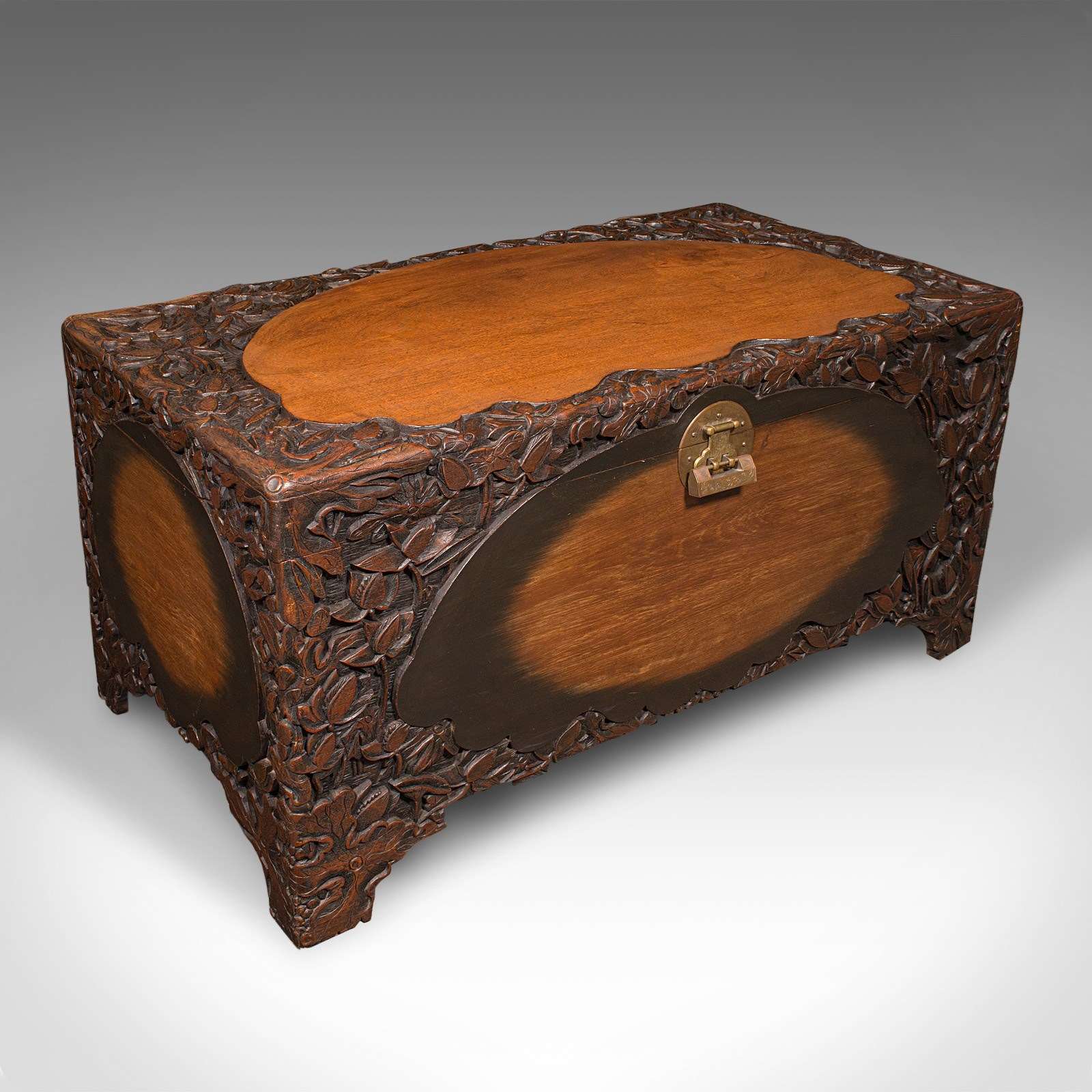 Large Vintage Chinese Carved Chest, Camphorwood Linen Trunk, Art Deco, C.1930