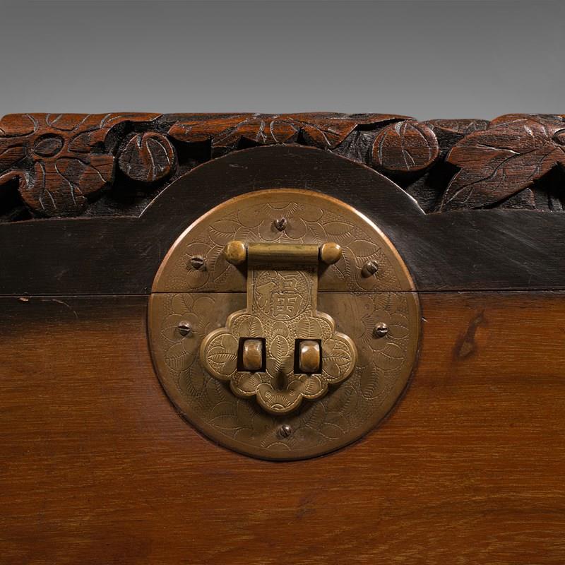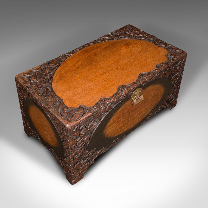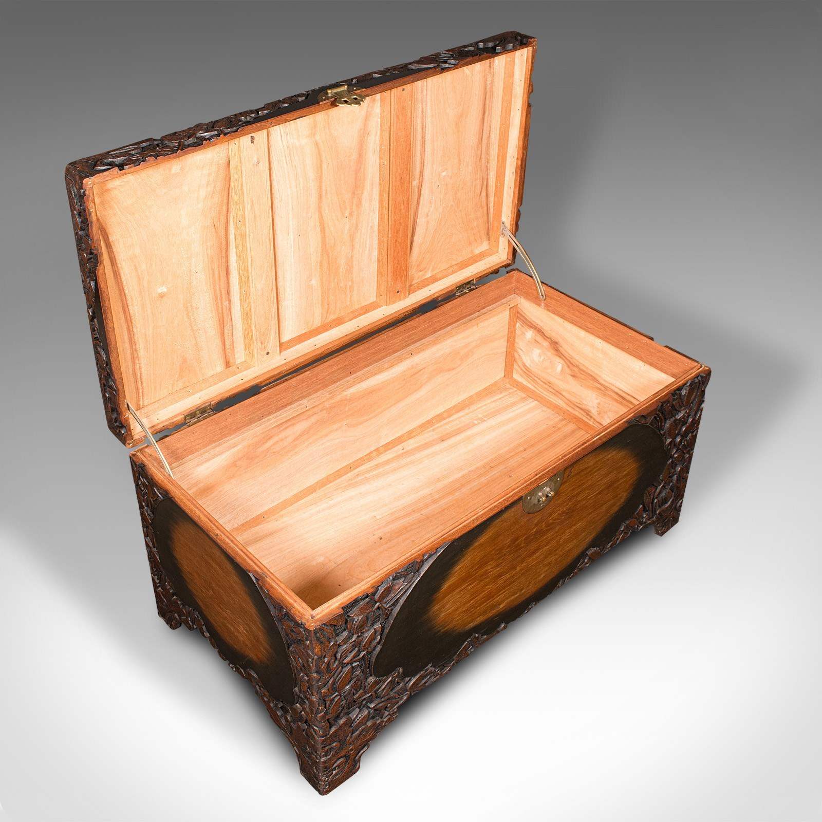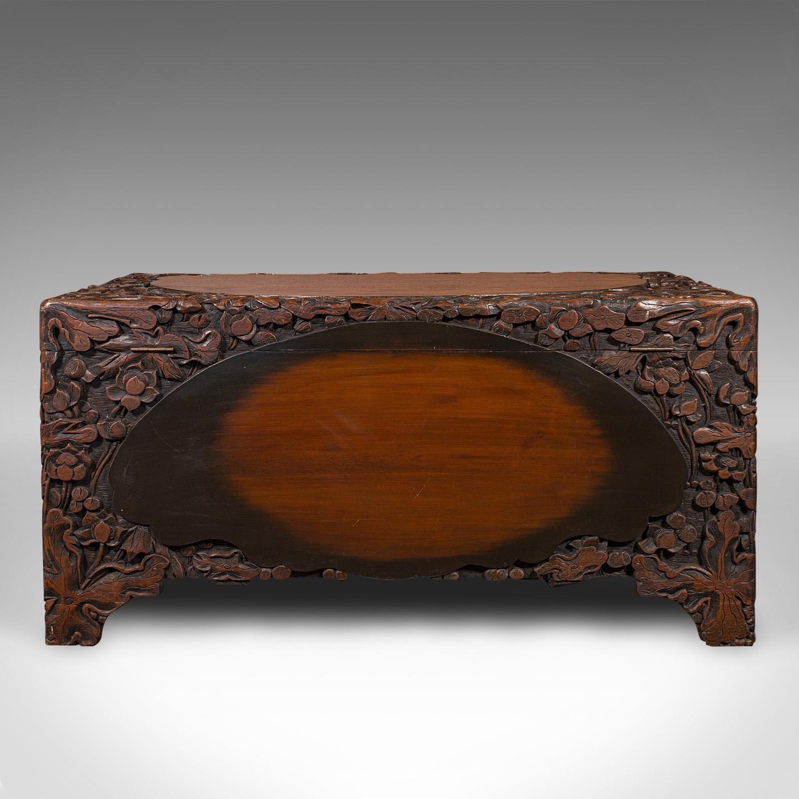Large Vintage Chinese Carved Chest, Camphorwood Linen Trunk, Art Deco, C.1930