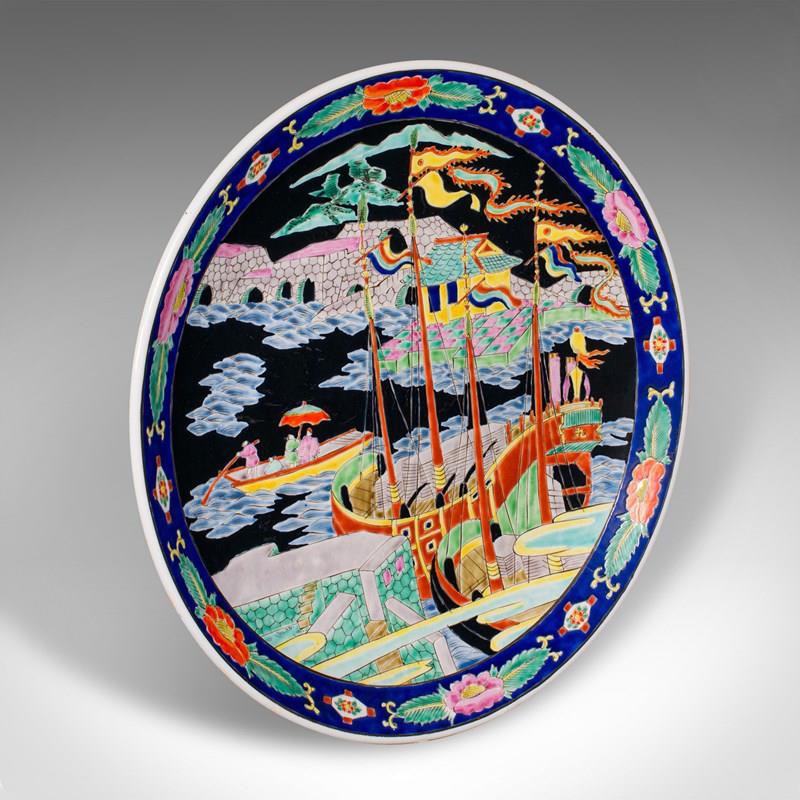 Large Vintage Imari Plate, Japanese, Ceramic Decorative Charger, Art Deco, 1930