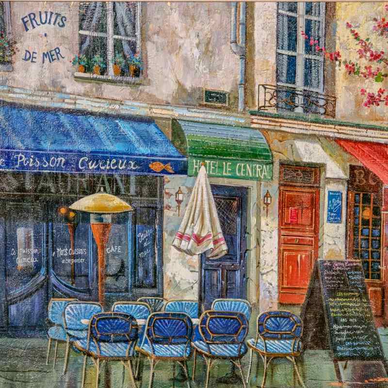 - Charmingly evocative street scene of a rain slick Parisian walkway
