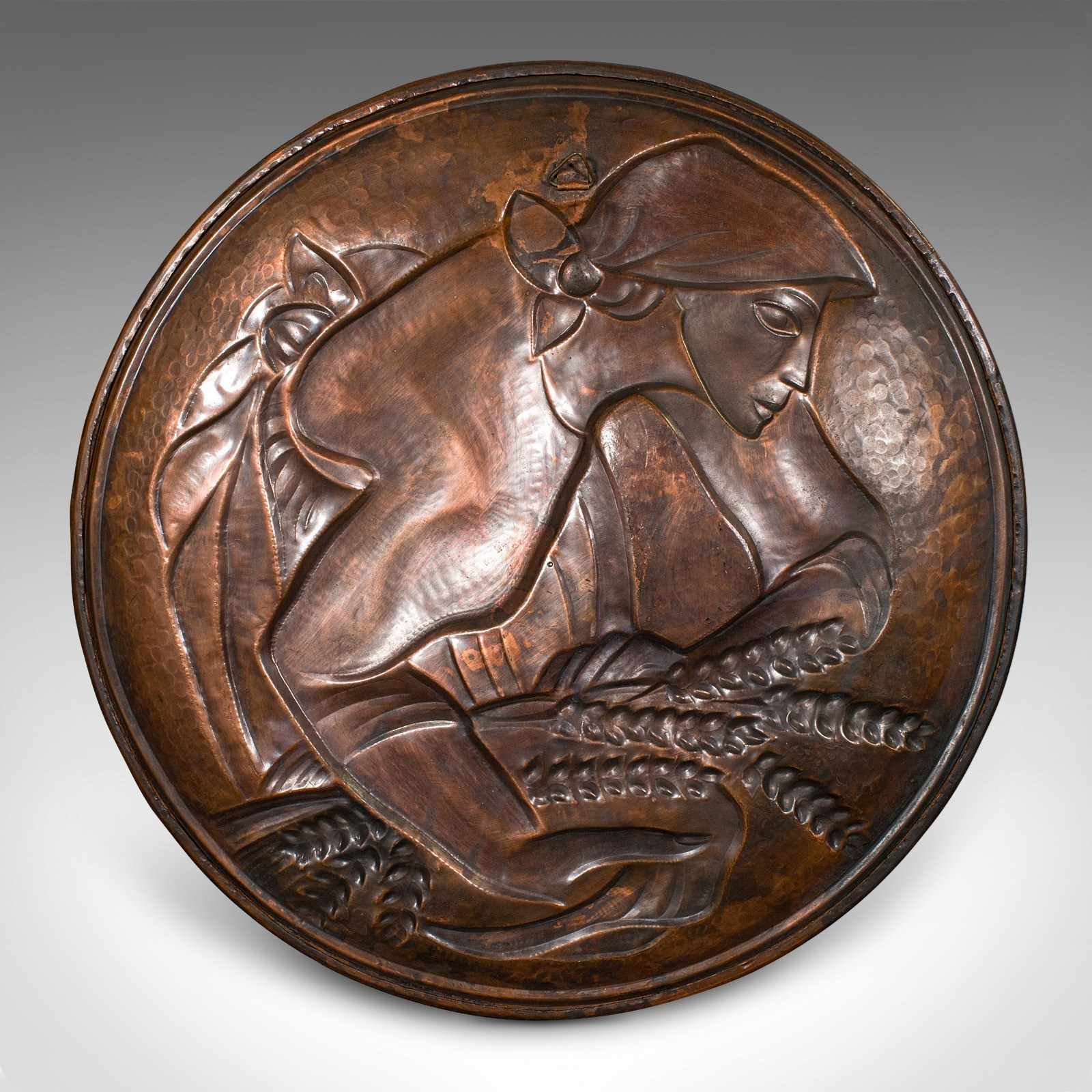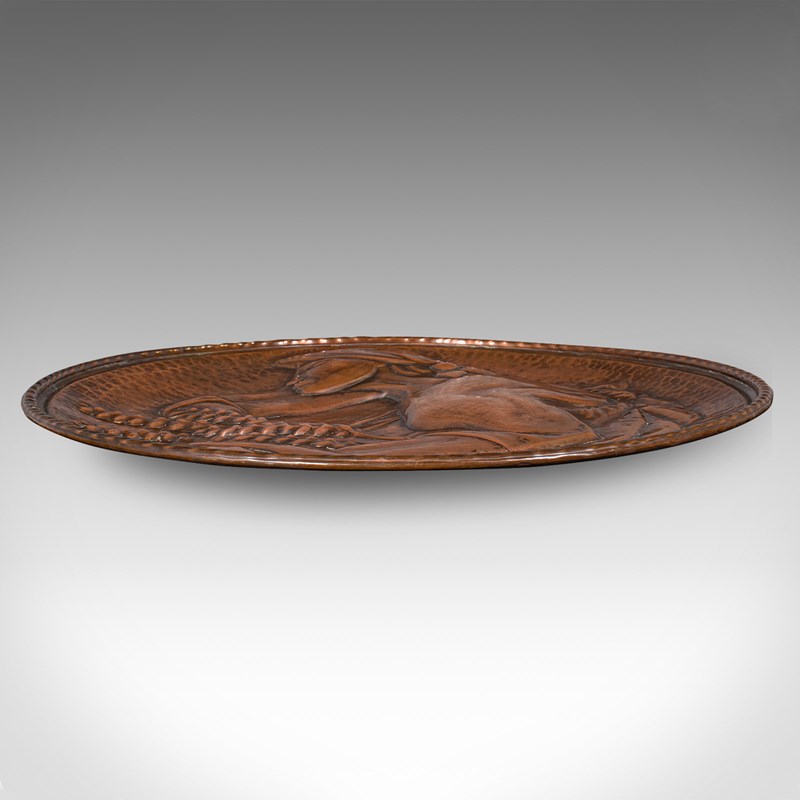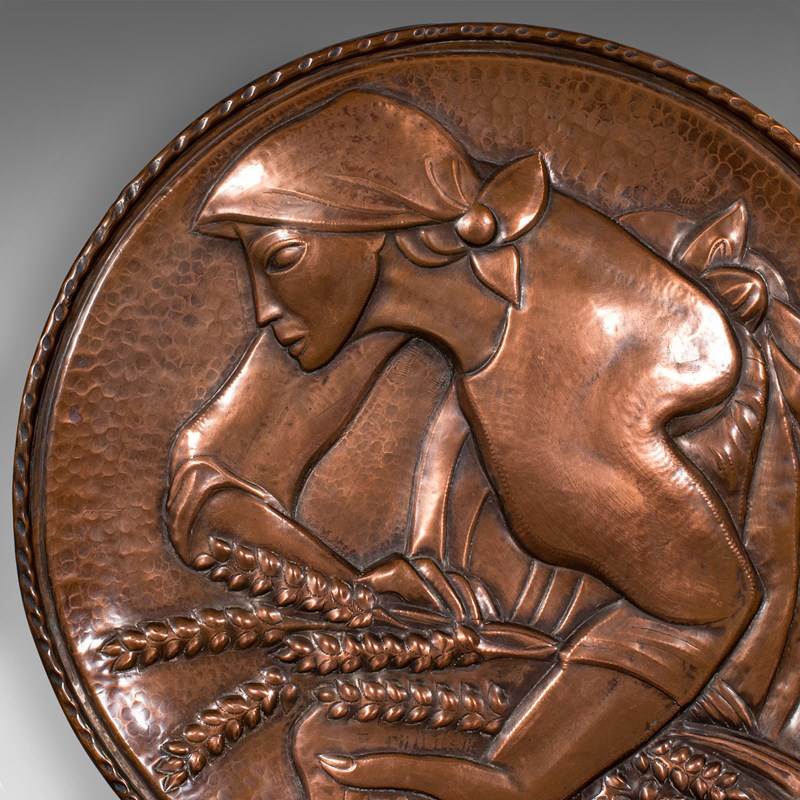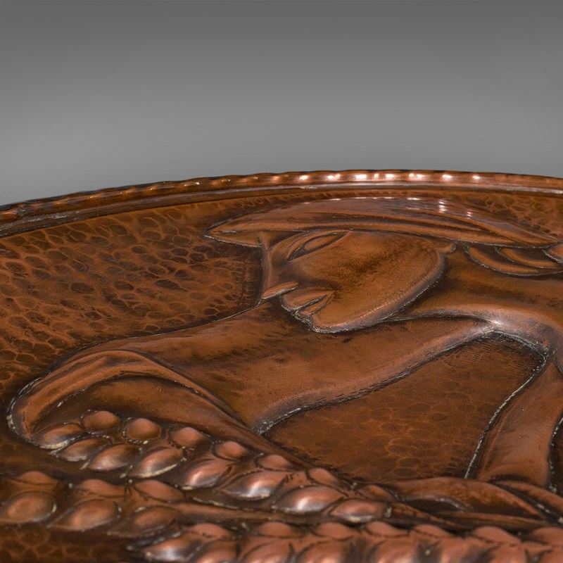 Large Vintage Relief Charger, Belgian, Hand Beaten Copper, Harvest Tray, C.1930