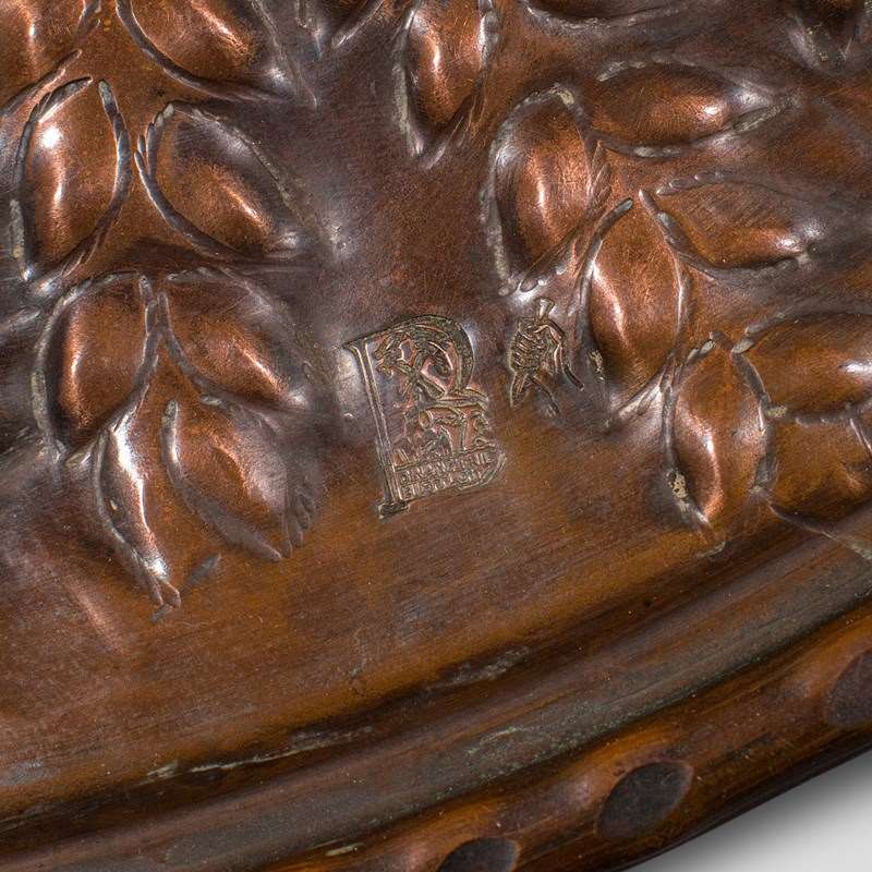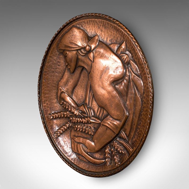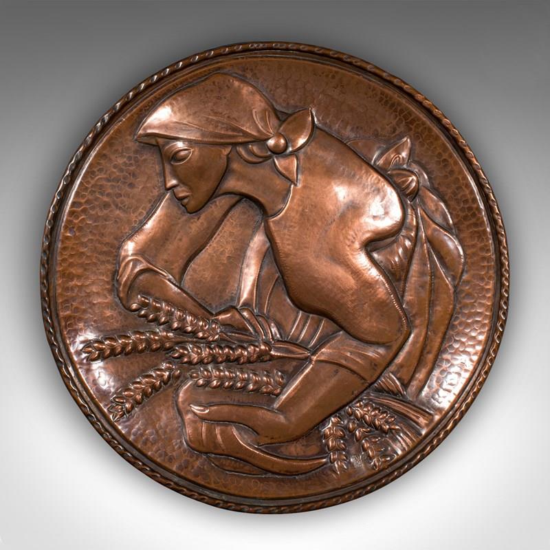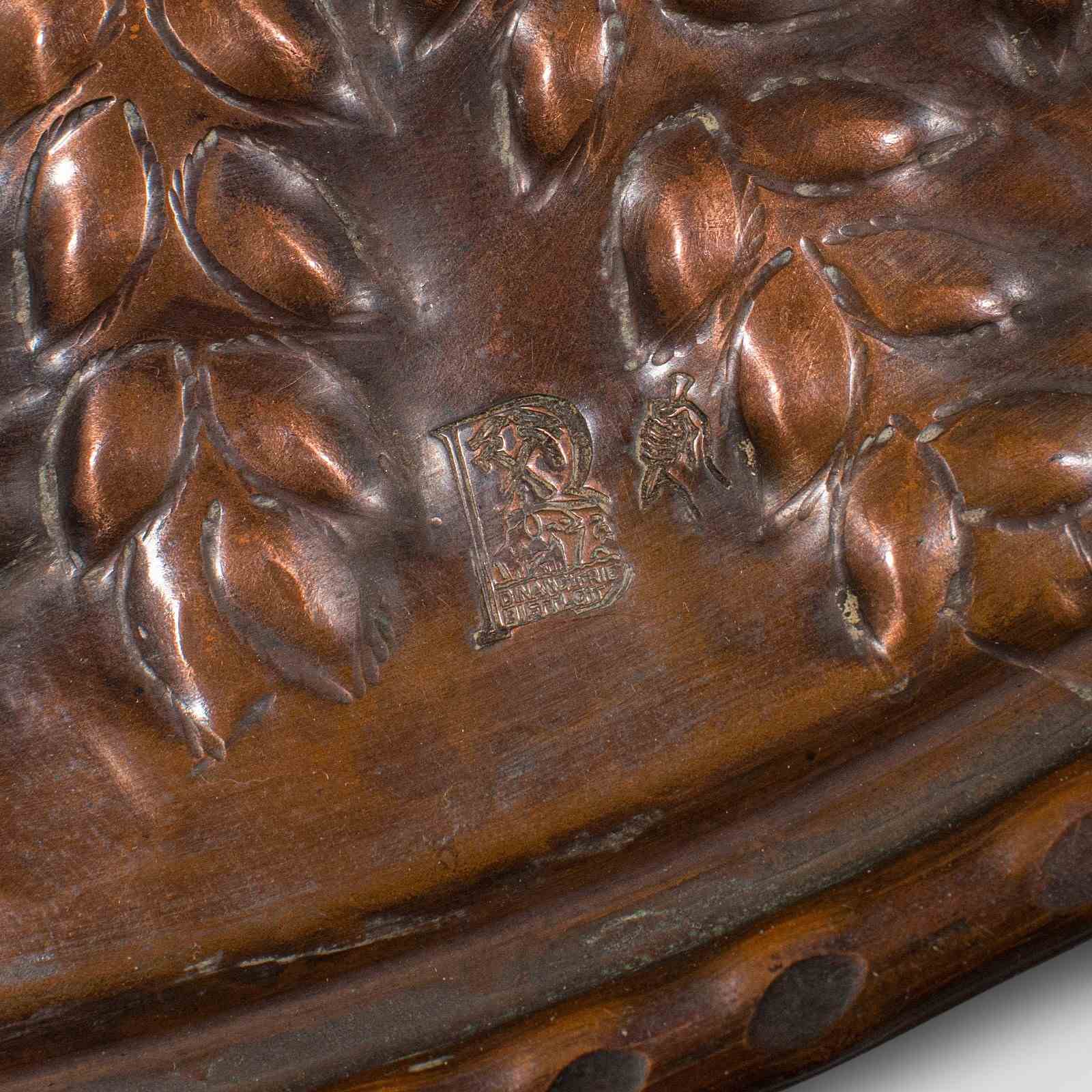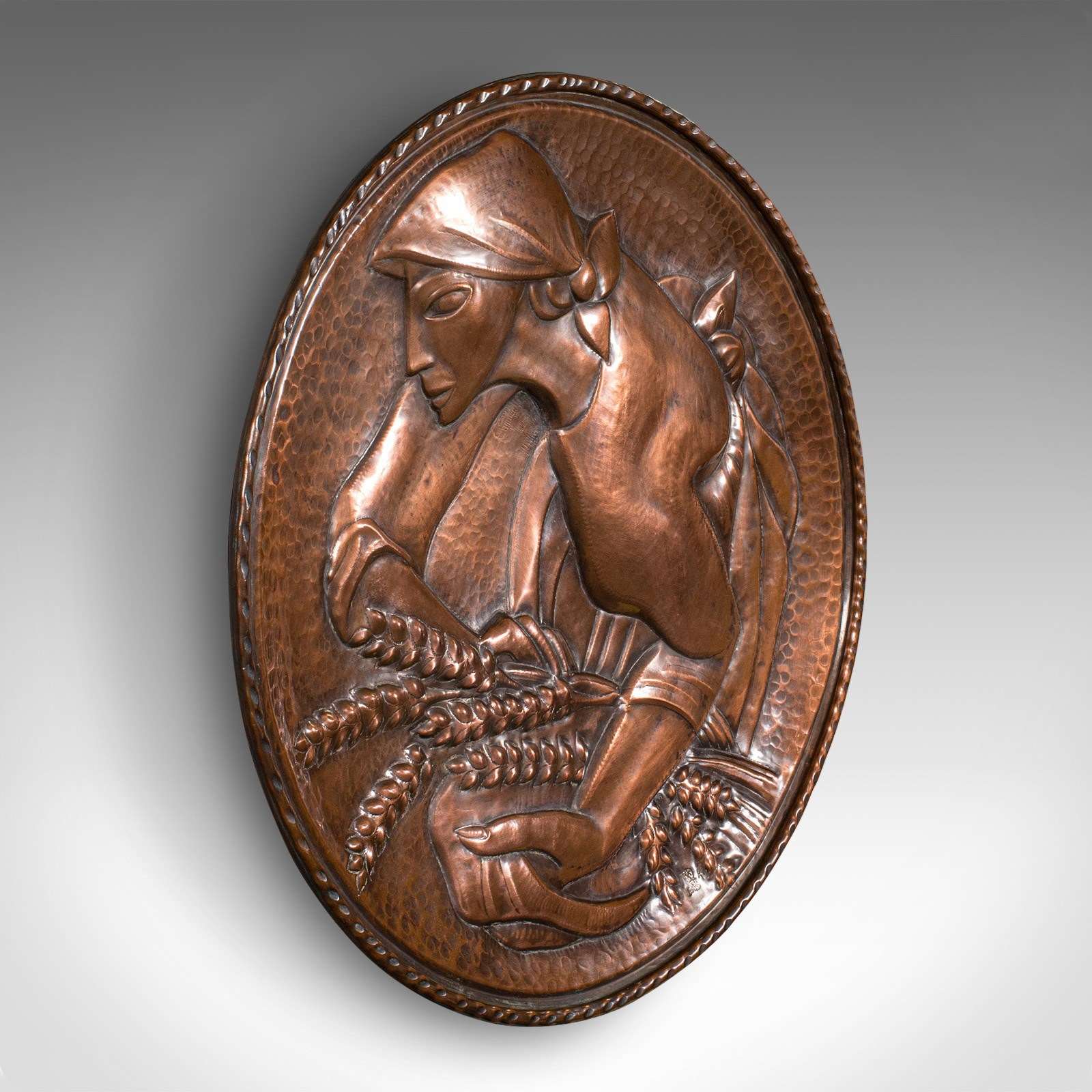Large Vintage Relief Charger, Belgian, Hand Beaten Copper, Harvest Tray, C.1930