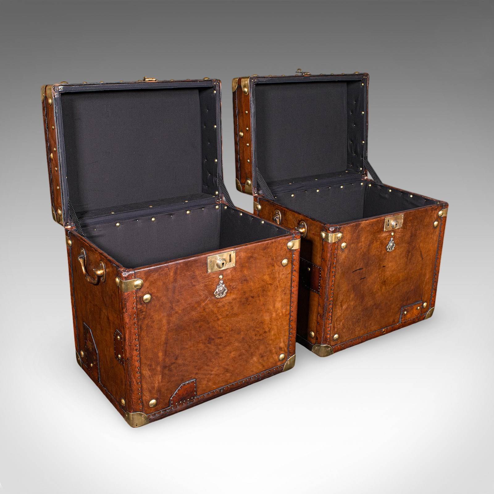 Pair, Late Vintage Officer's Campaign Luggage Cases, English, Bedside Nightstand