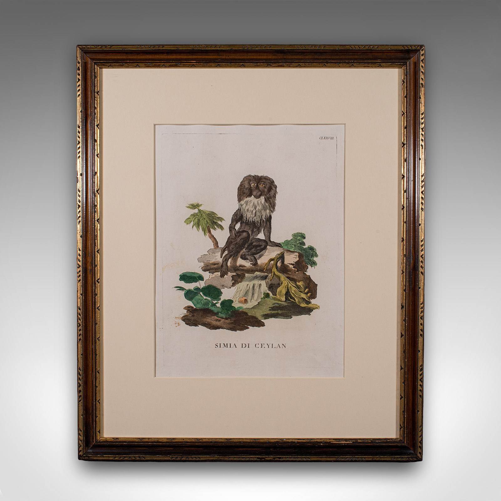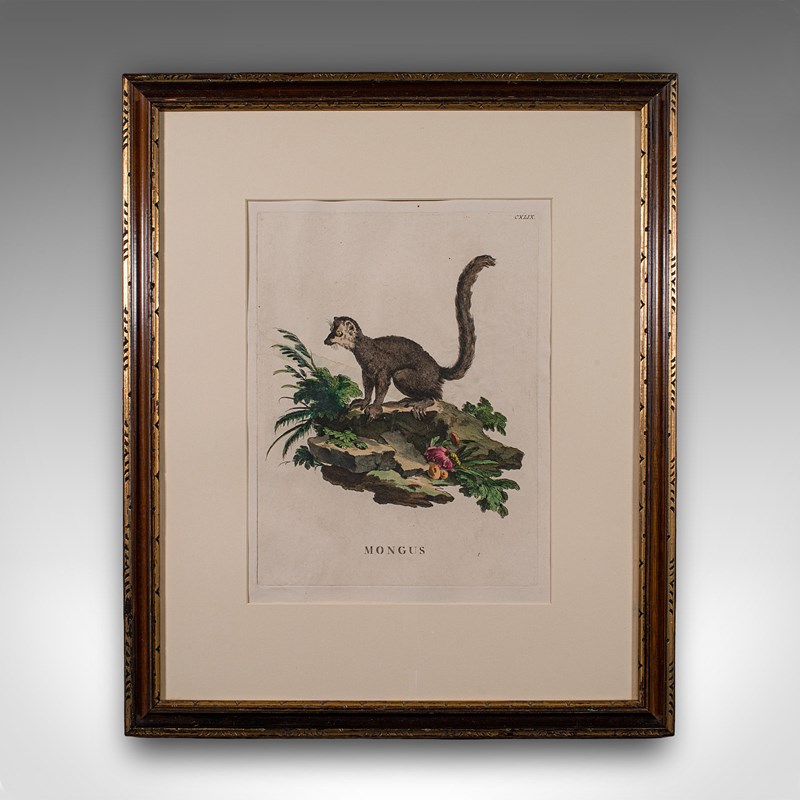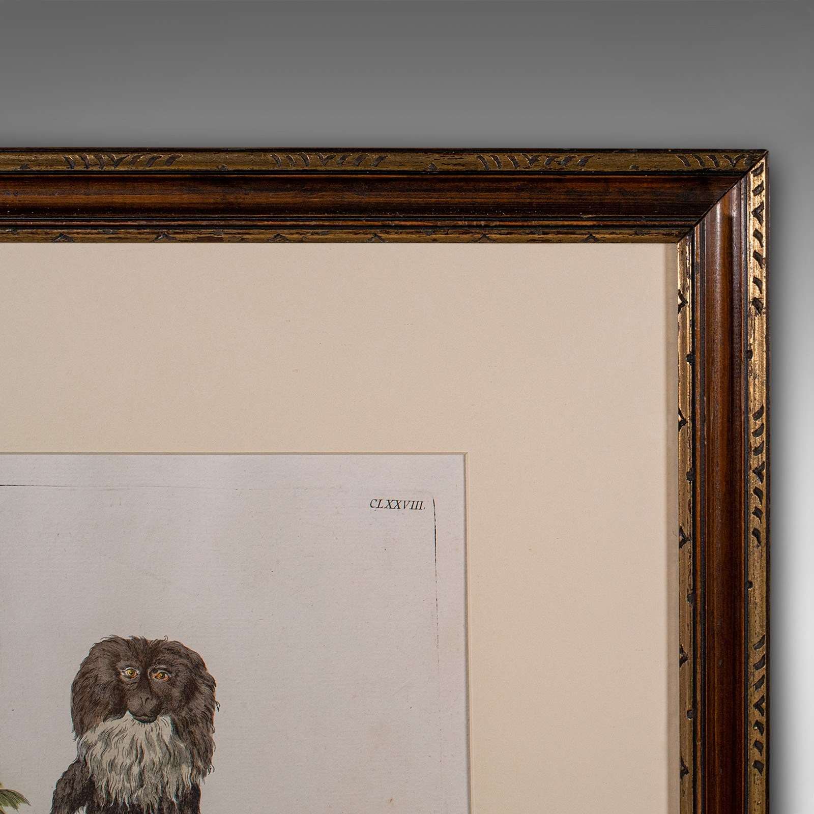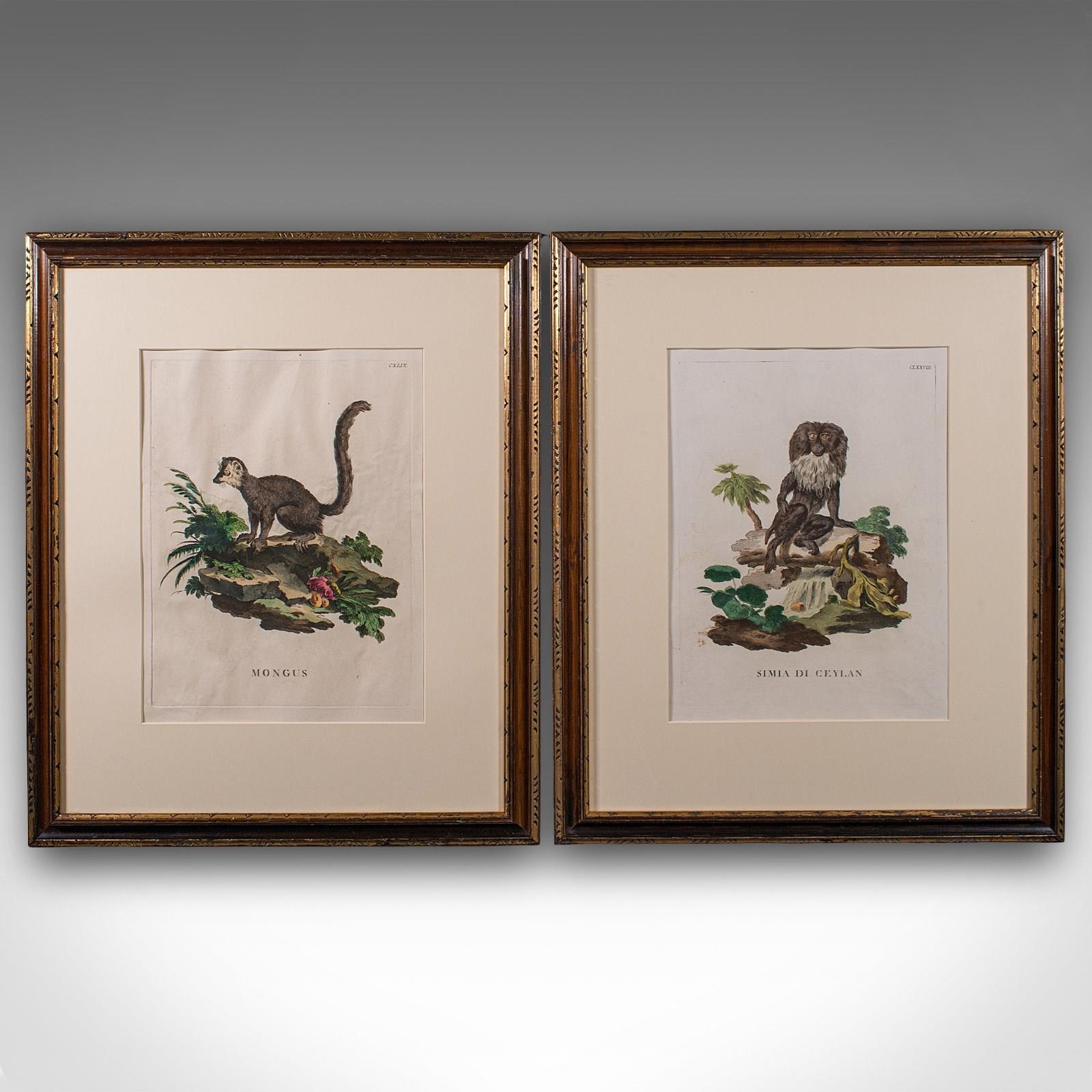 This is a pair of antique animal portraits. A French, framed encyclopaedia engraving, dating to the Georgian period and later, circa 1775.