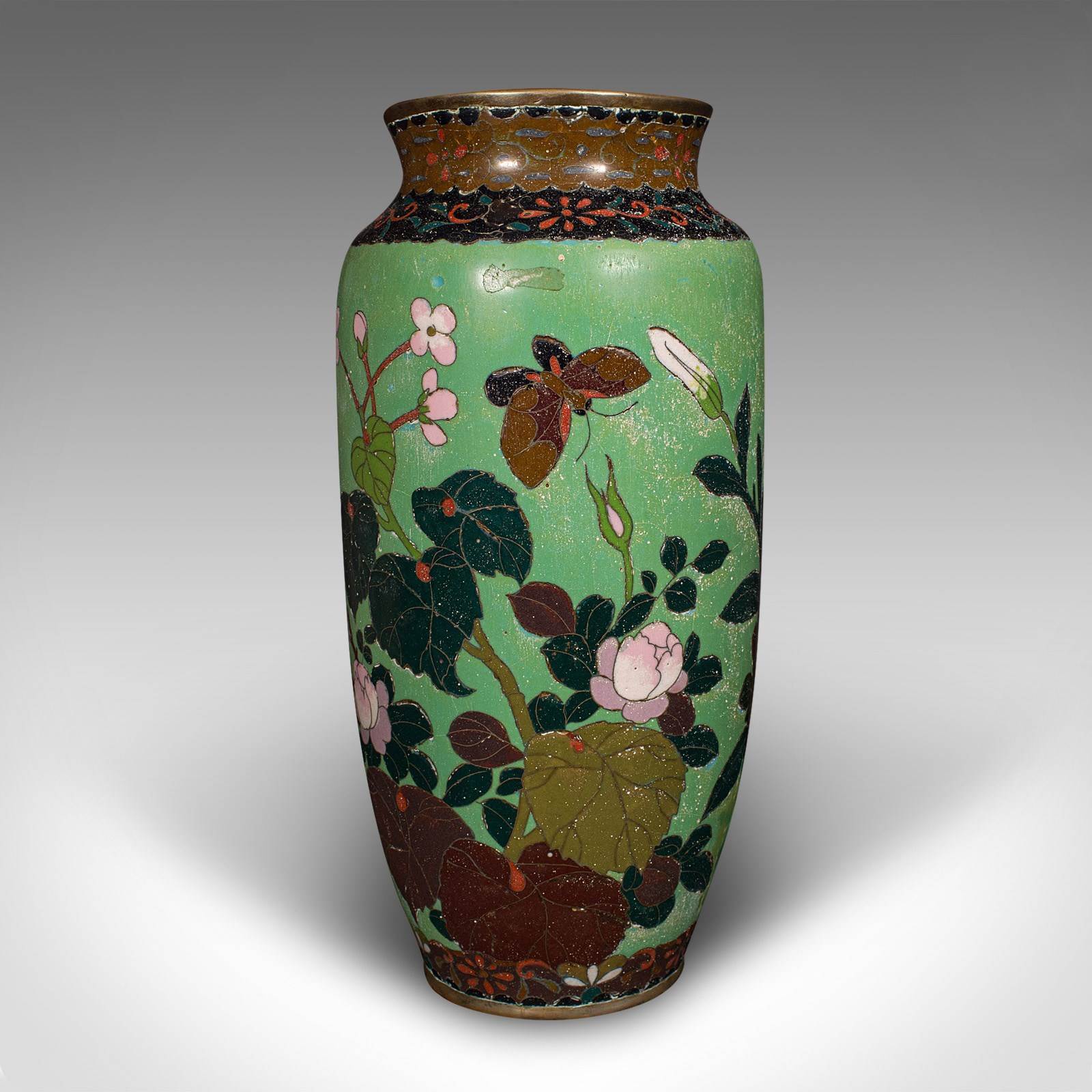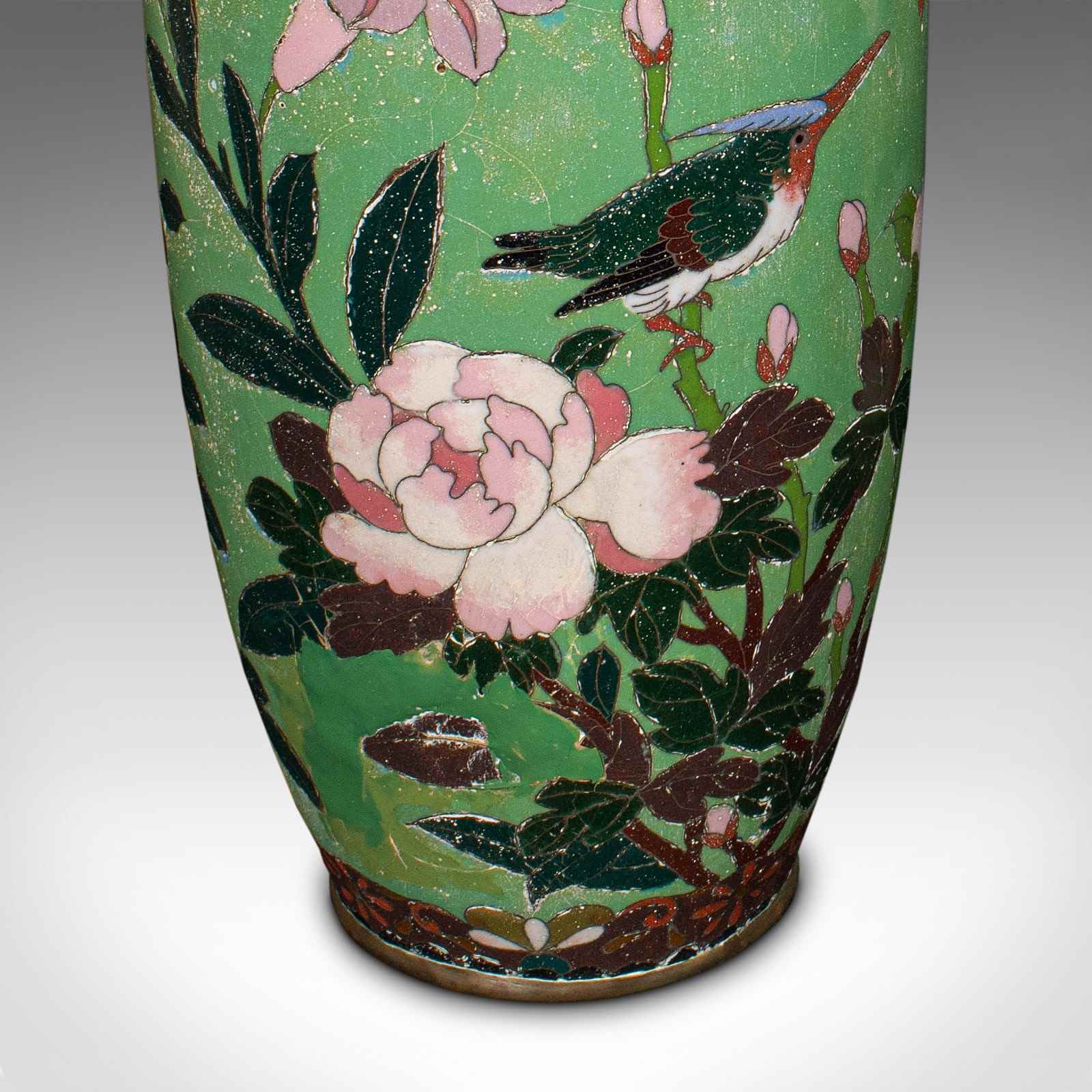 Pair Of Antique Baluster Vases, Japanese, Cloisonne Flower Urn, Meiji, Victorian