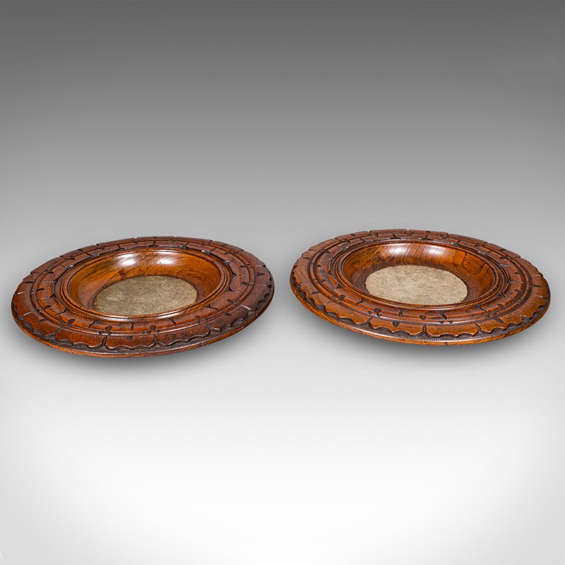 These Victorian carved elm decanter coasters present a delightful blend of after-dinner appeal and Gothic revival taste, offering a decorative and versatile addition to any dining room, lounge or other period interiors. Delivered ready for the home or institution.