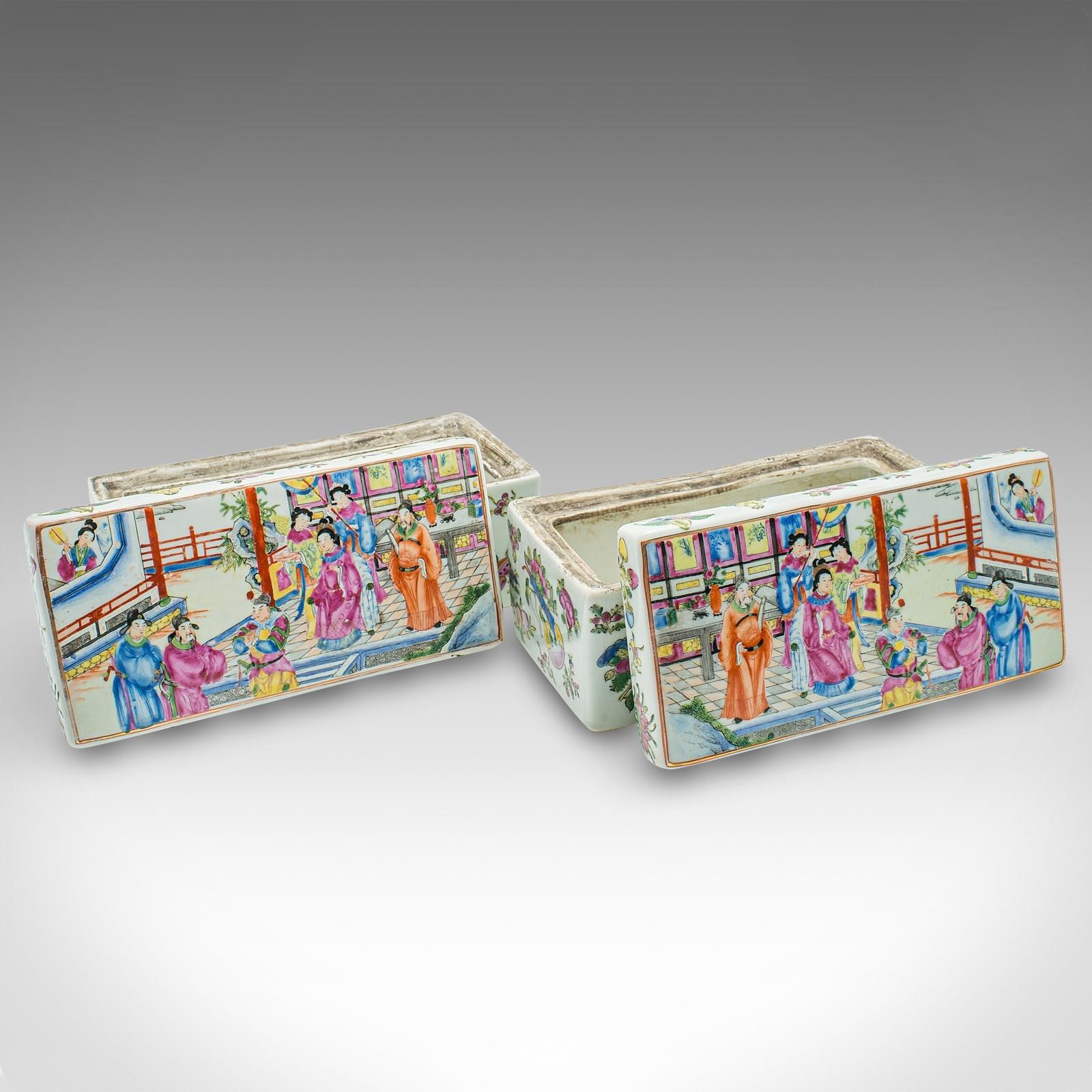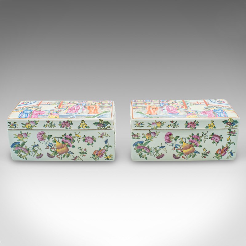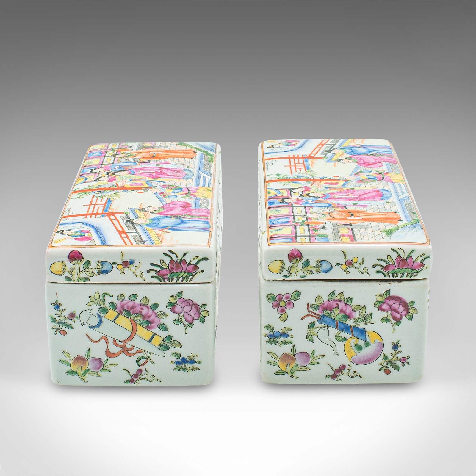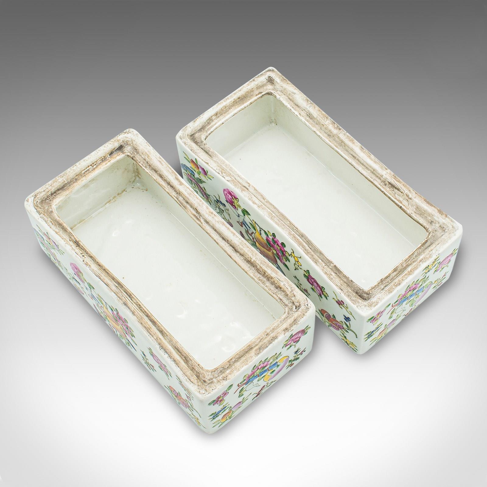 Pair Of Antique Decorative Boxes, Chinese, Ceramic, Lidded Dish, Victorian, 1900