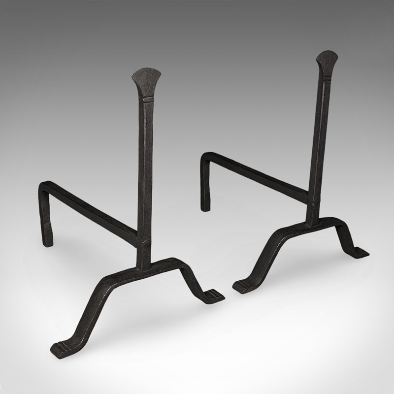 Pair Of Antique Fire Dogs, English, Wrought Iron, Fireplace Andiron, Victorian