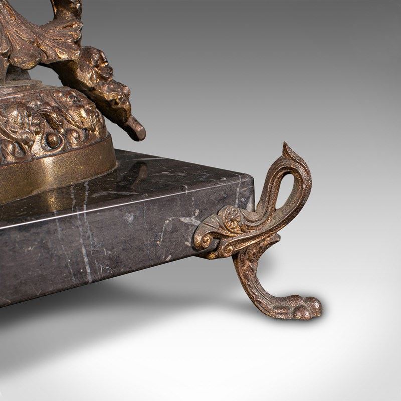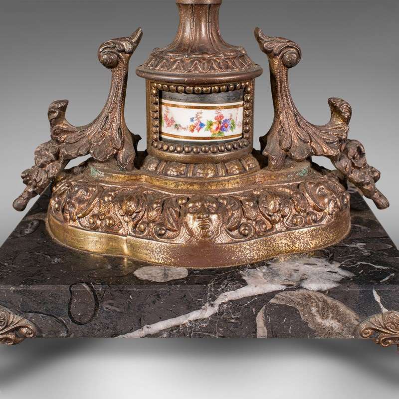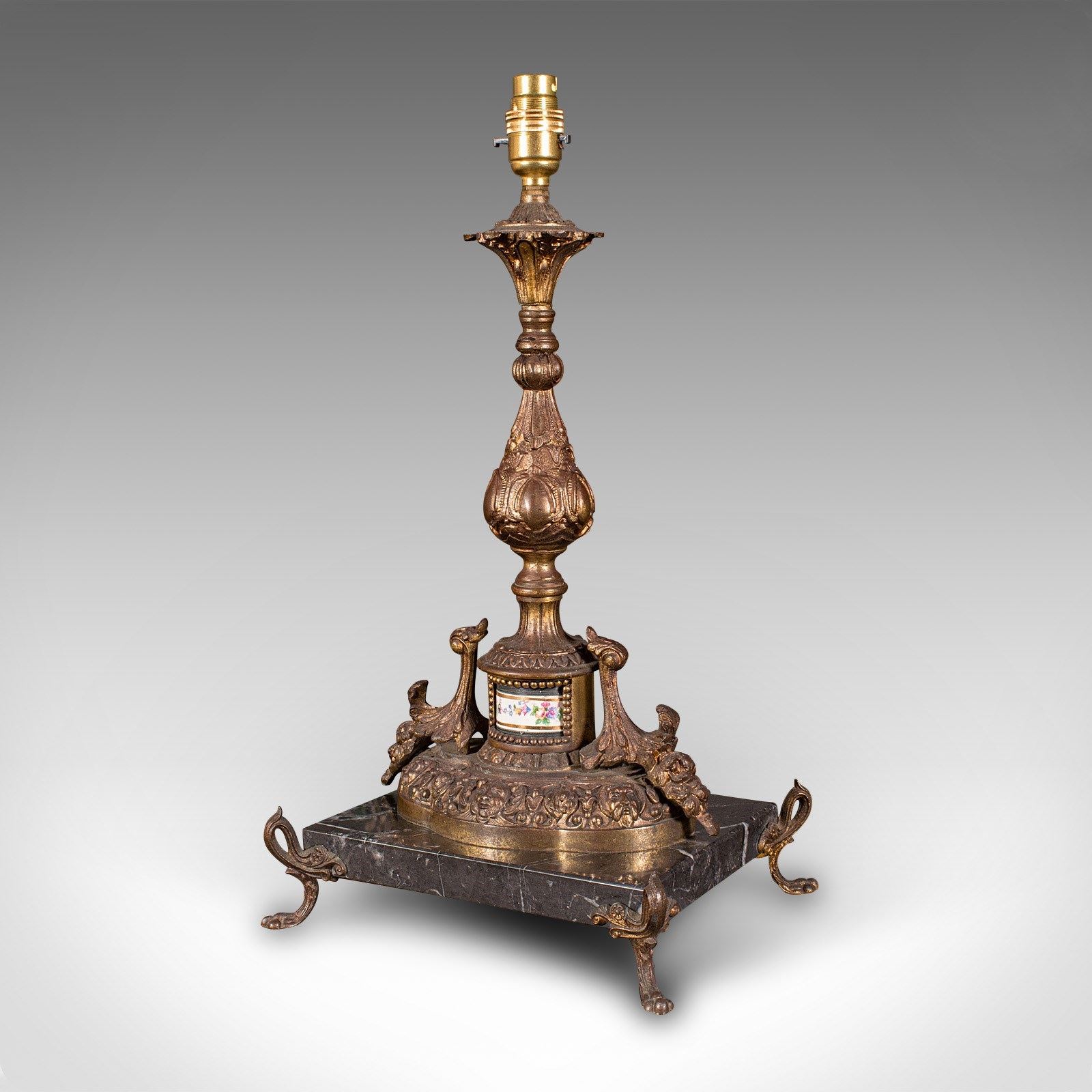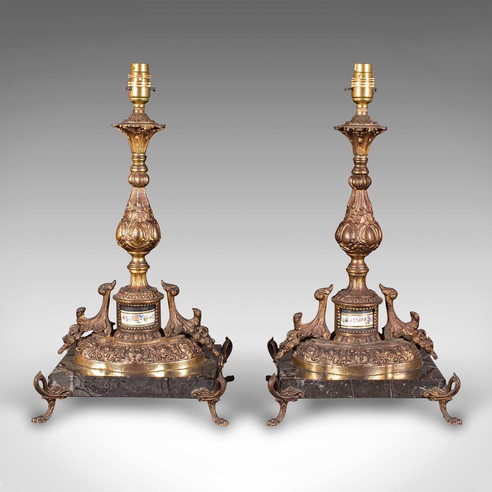 Pair Of Antique Lamp Bases, French, Gilt Metal, Marble, Table Light, Edwardian