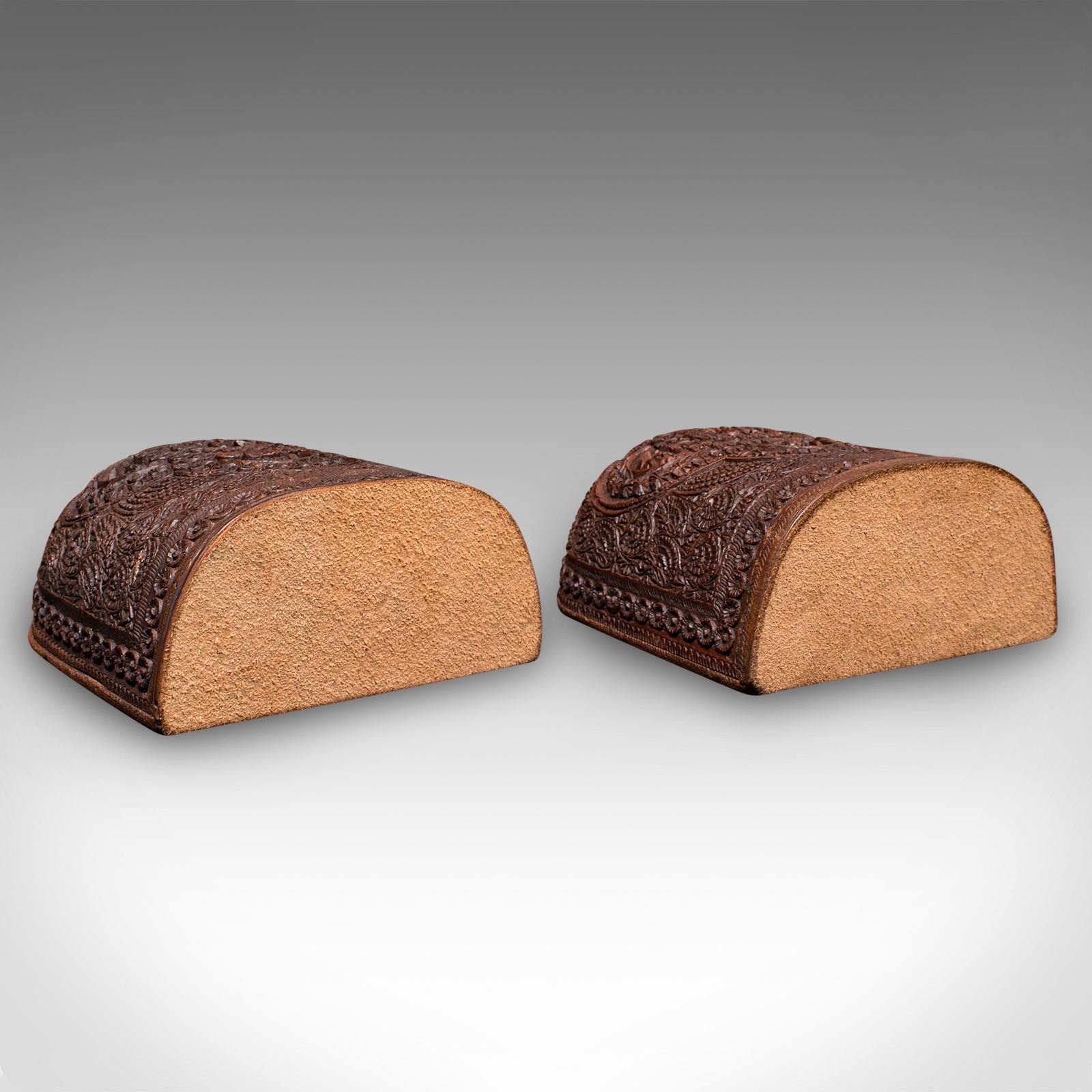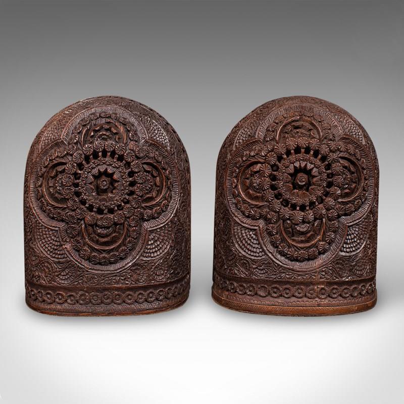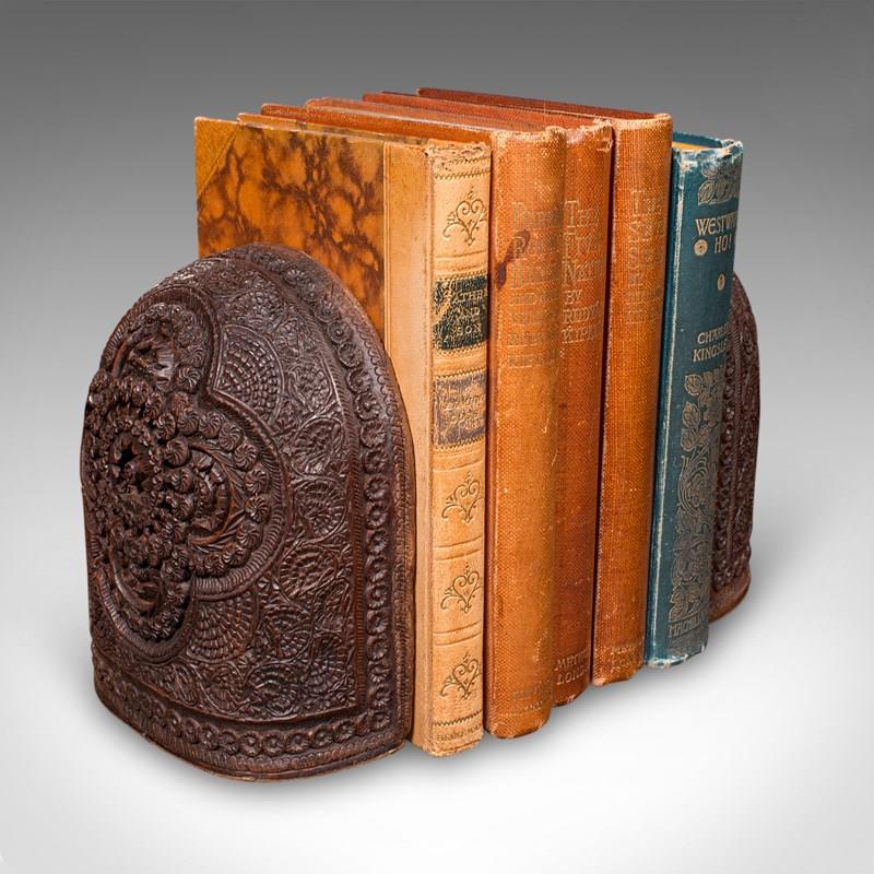 A distinctive and characterful pair, these antique bookends showcase rich cultural influence and ornate Victorian styling. Ideal for the collector of Anglo-Indian pieces or those seeking an elegant, historic flourish for the home or library. Delivered ready for the home.