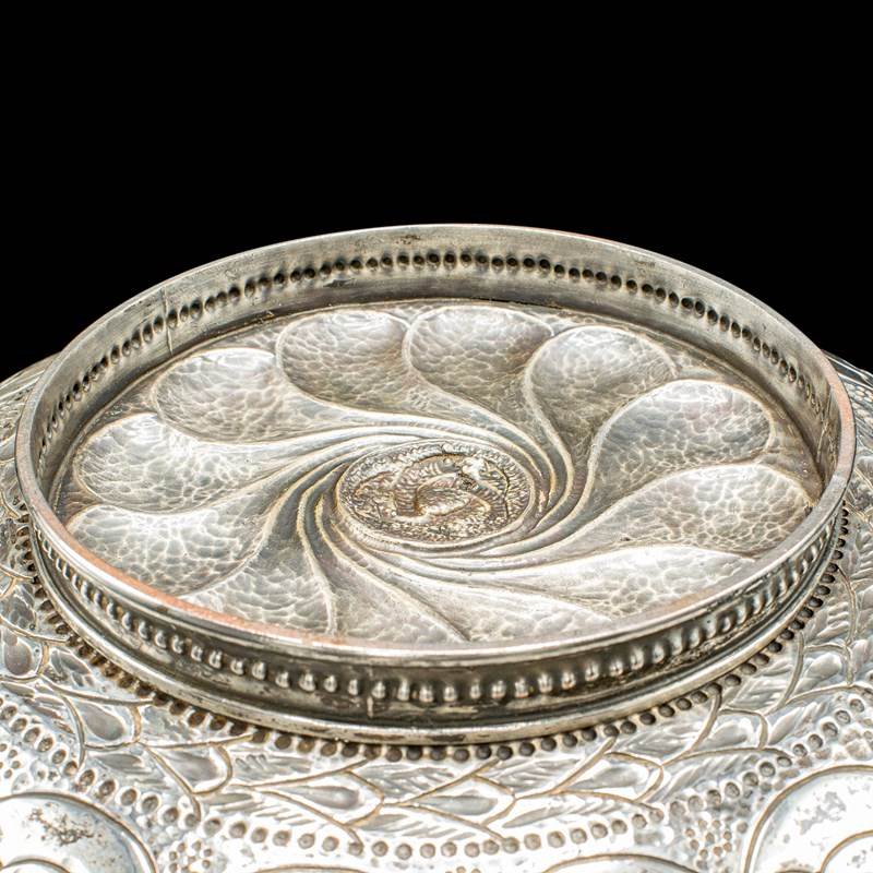 Interior enhanced with ornate chased detailing, adding depth and texture