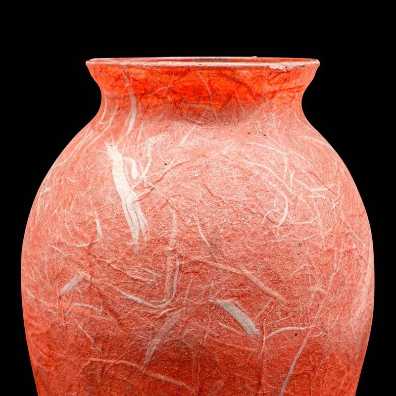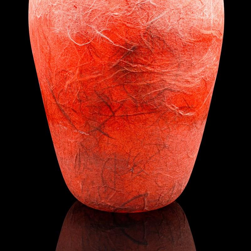 This is a pair of contemporary decorative flower vases. An English, art glass and straw silk posy sleeve by Margaret Johnson.