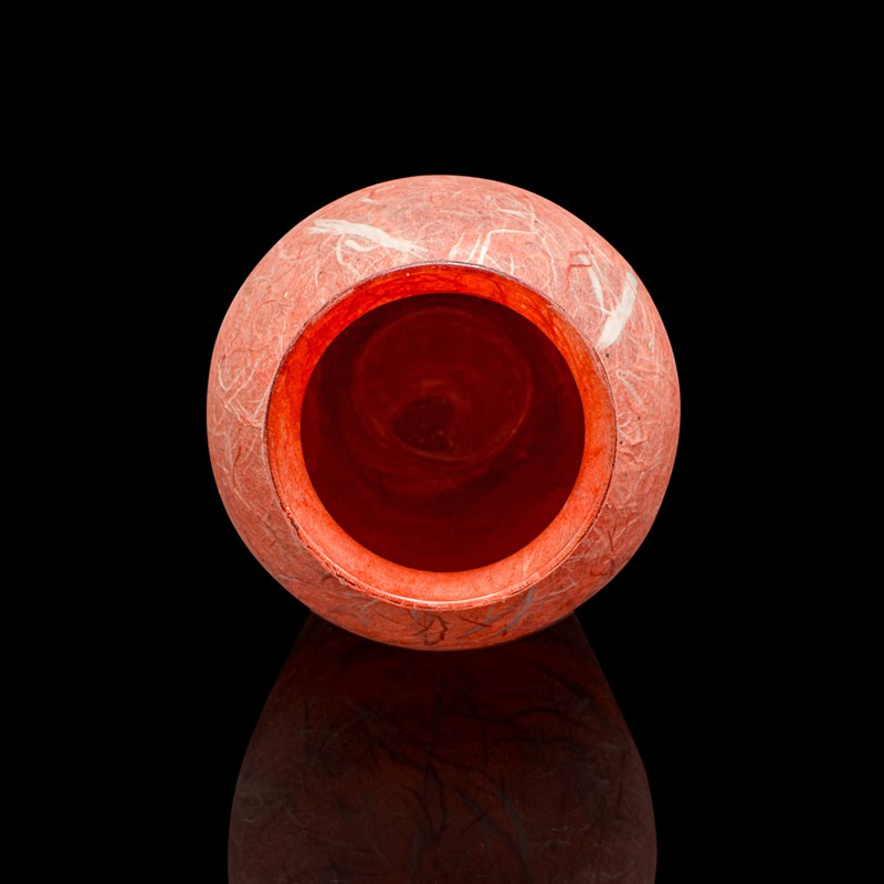 - Colourful glass with a warm salmon pink hue