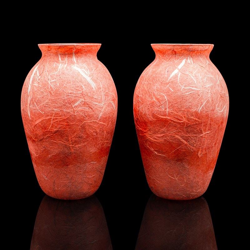 Pair Of Contemporary Decorative Flower Vases, English, Art Glass, Posy Sleeve