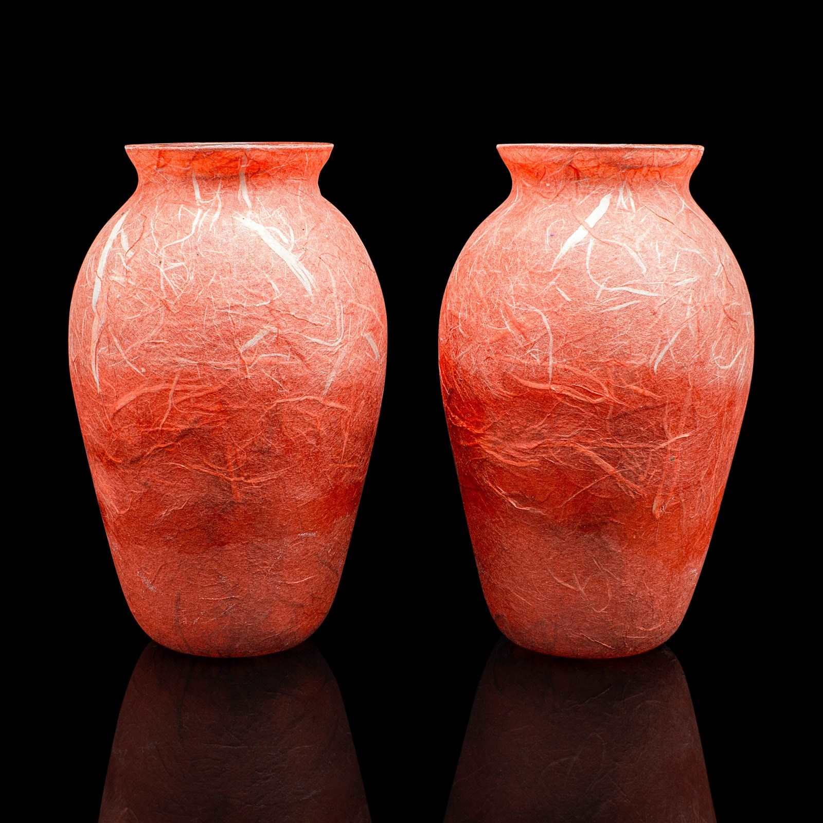 This is an eye-catching pair of contemporary decorative flower vases with vibrant colour and an unusual finish. Delivered ready to enjoy.