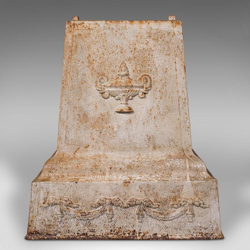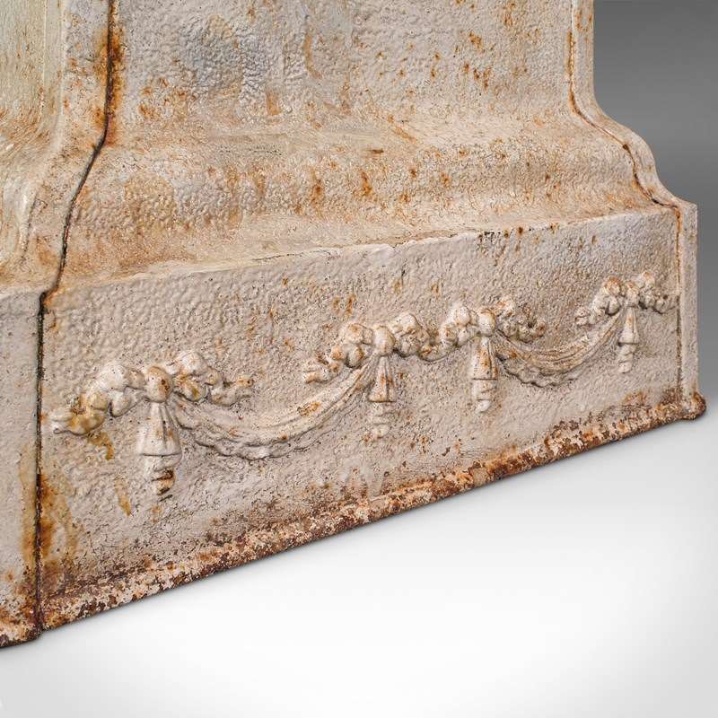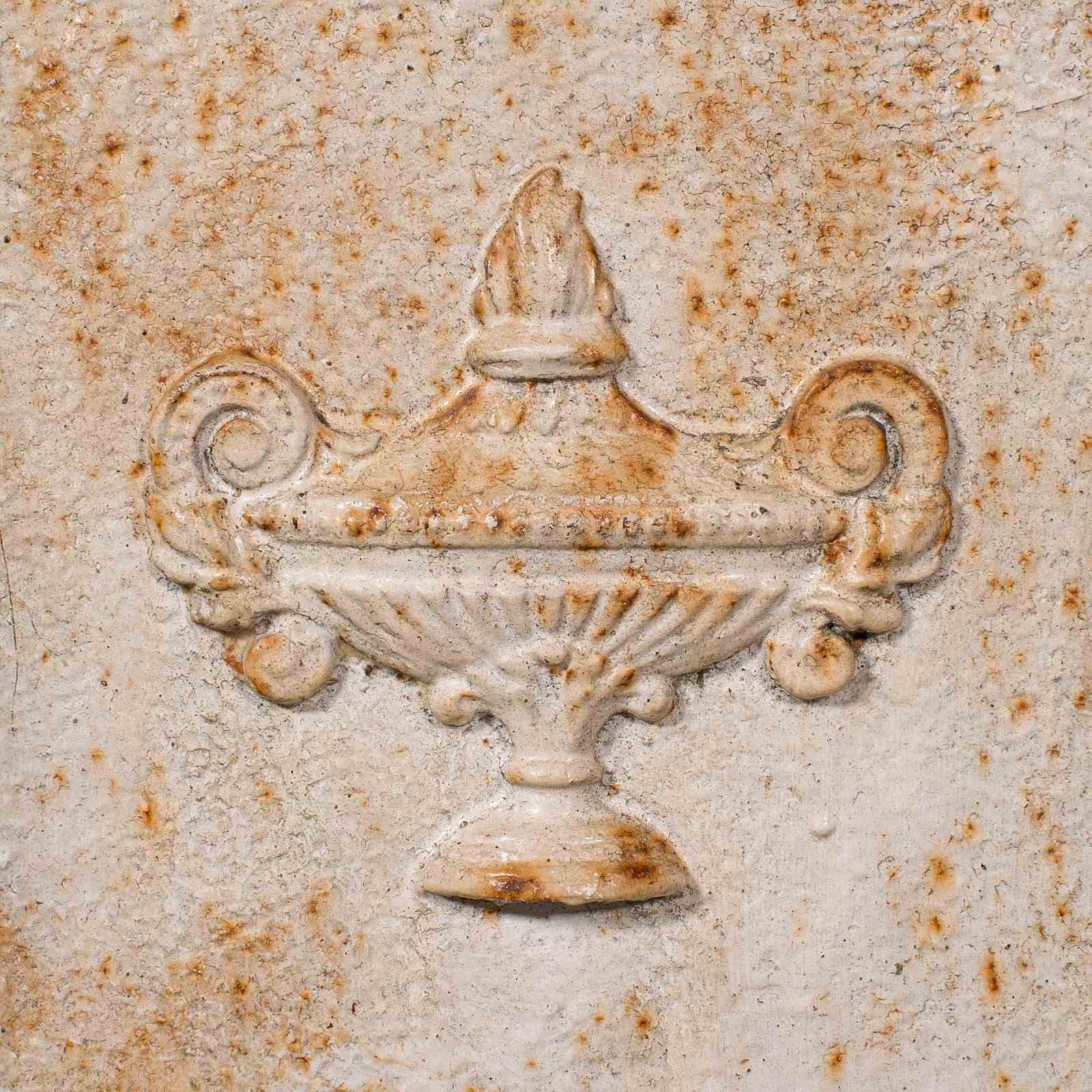 Embellished with relief cast detail, including classical vase and swag garland motif