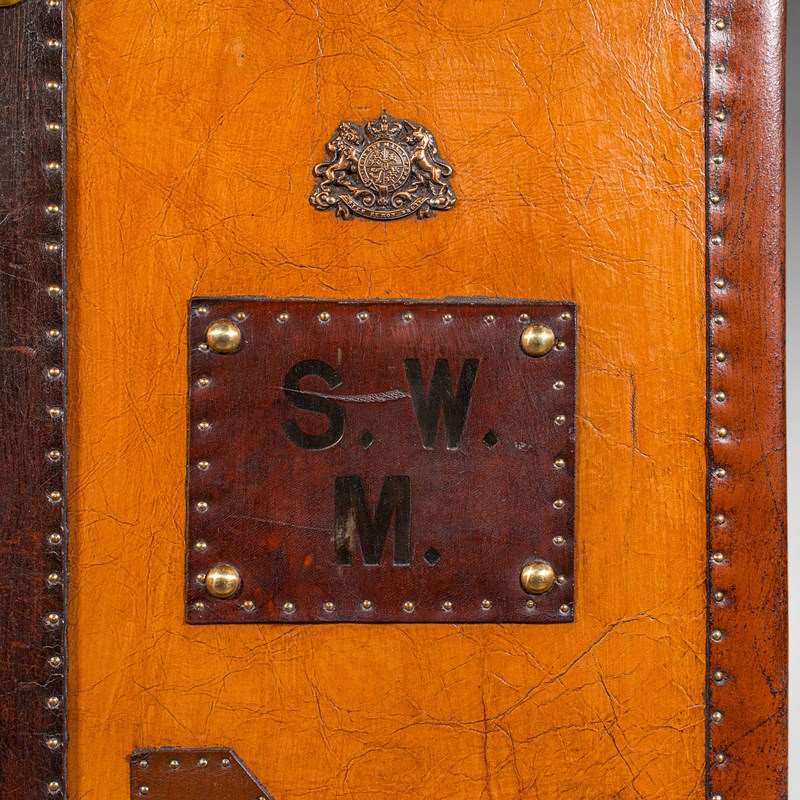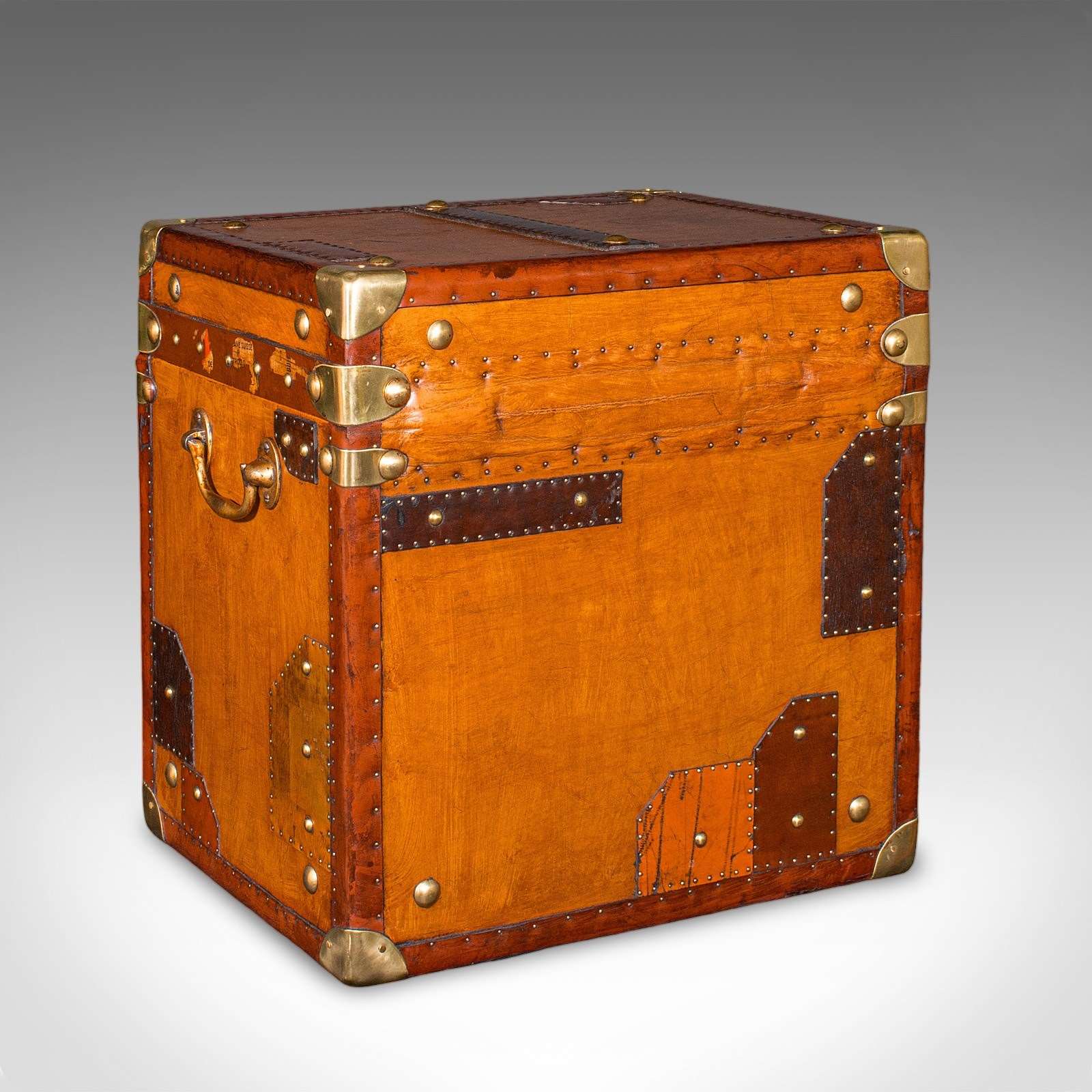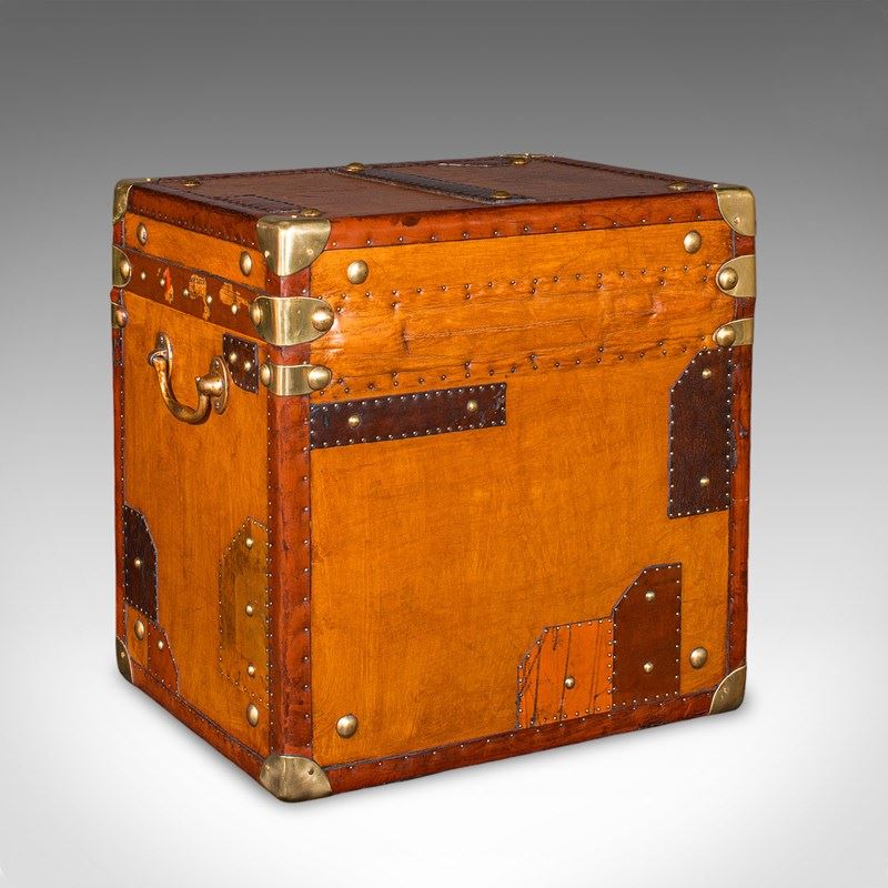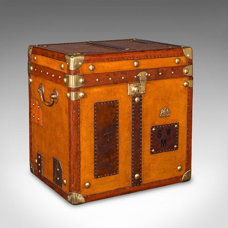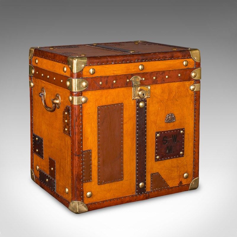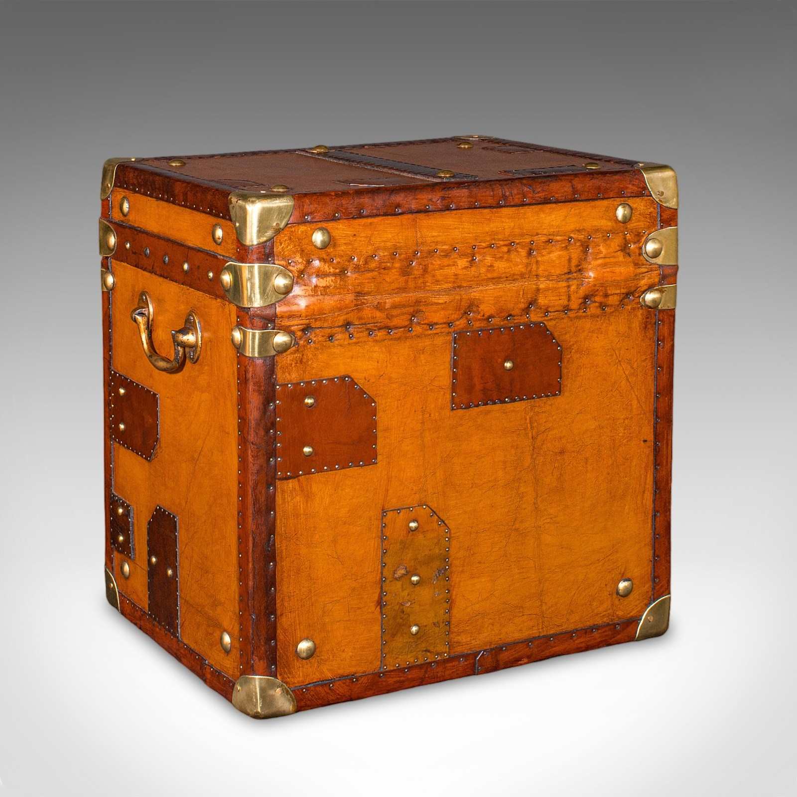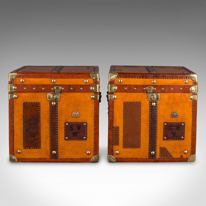Pair Of Late Vintage Luggage Cases, English Leather, Trunk, Nightstand, Campaign