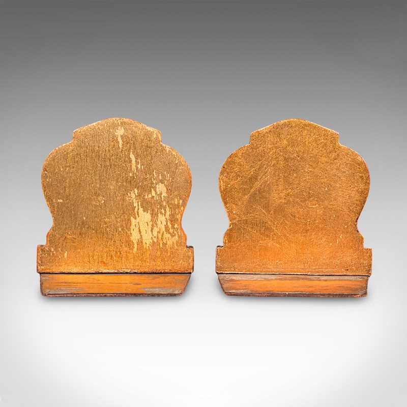 Pair Of Small Vintage Baroque Revival Bookends, Italian, Giltwood, Book Rest