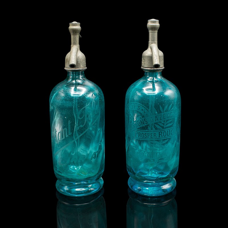 Pair Of Soda Syphons, French, Glass, Seltzer Bottle, Early 20Th Century, Barware