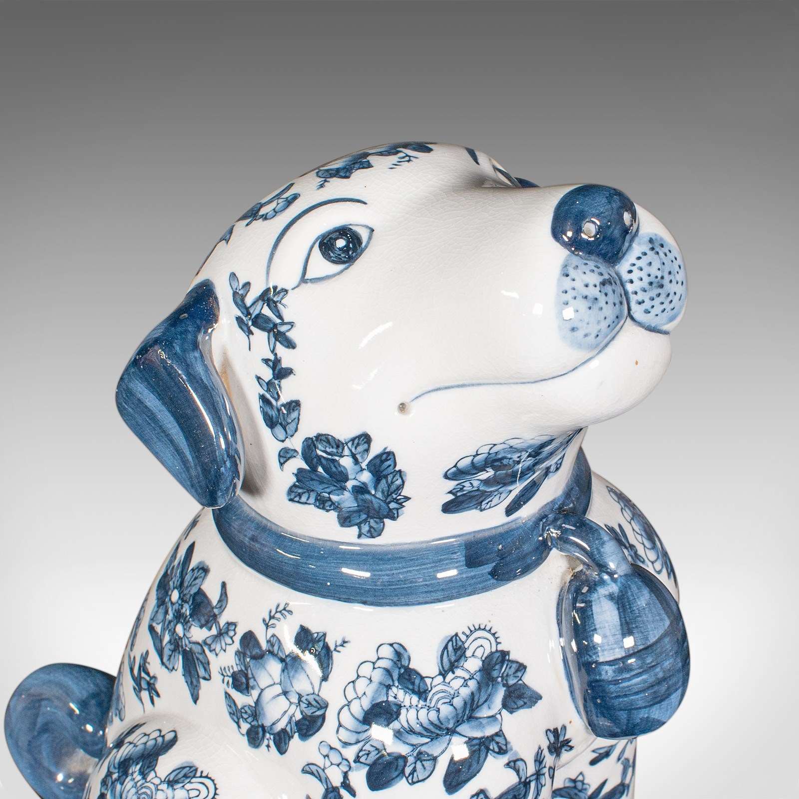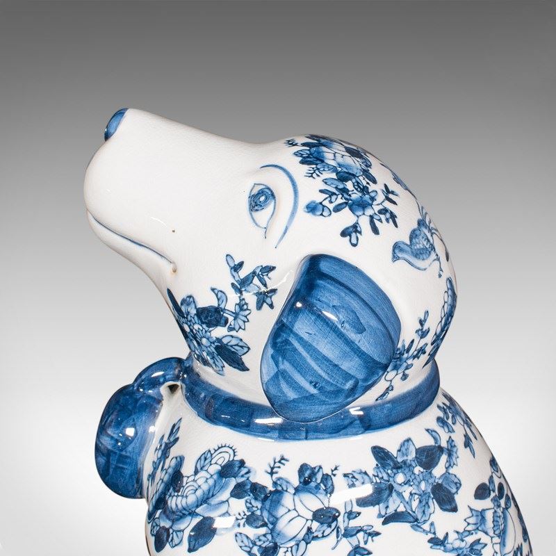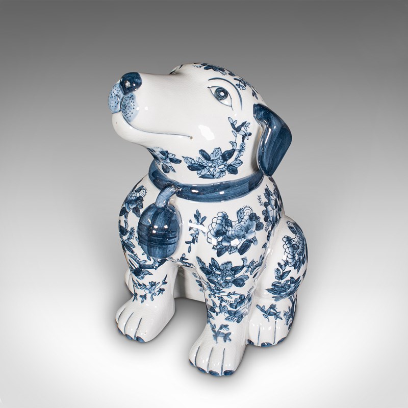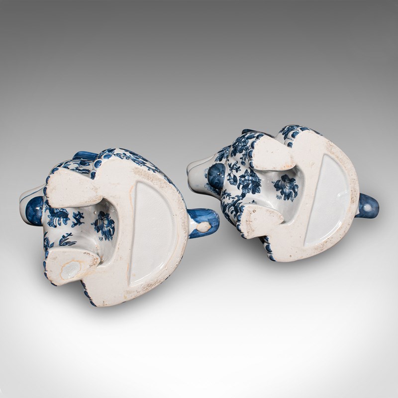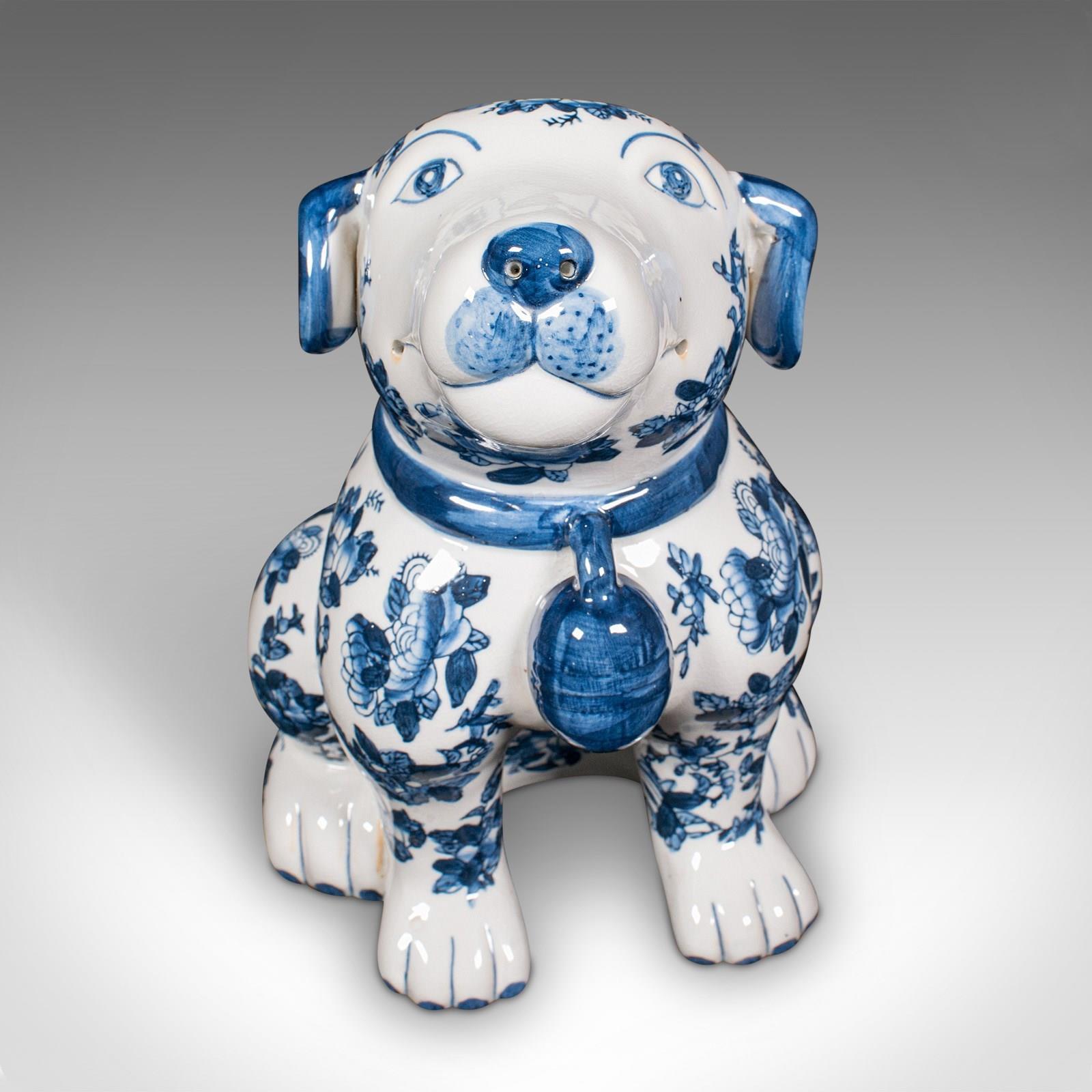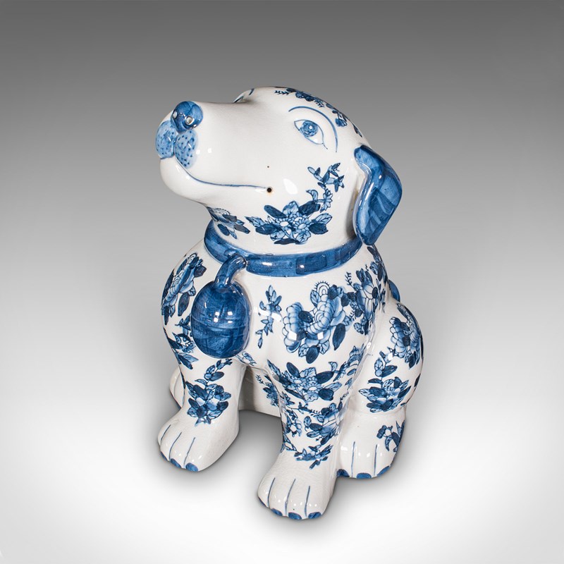 Pair Of Vintage Decorative Book Dogs, Chinese, Ceramic, Blue & White, Bookends