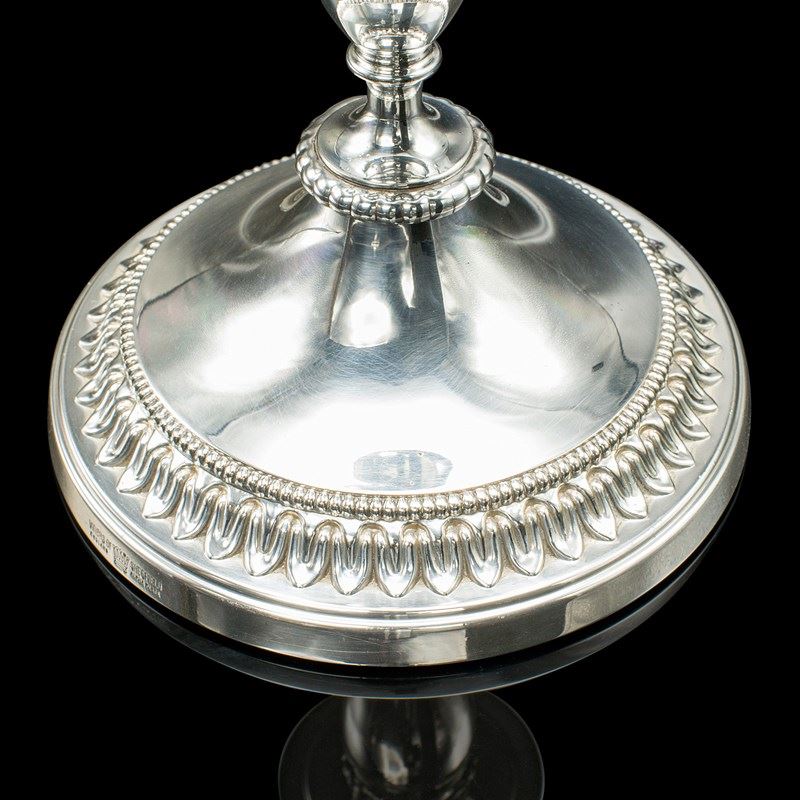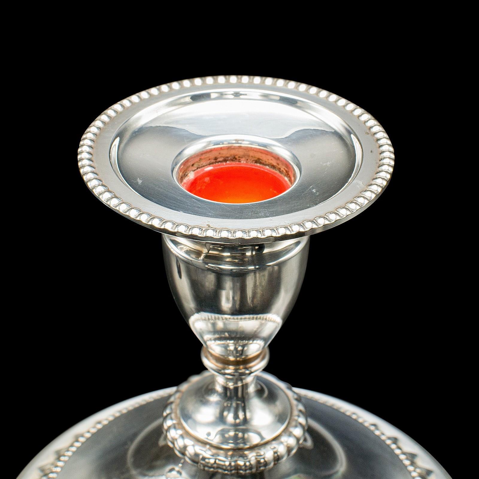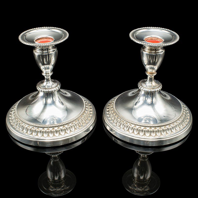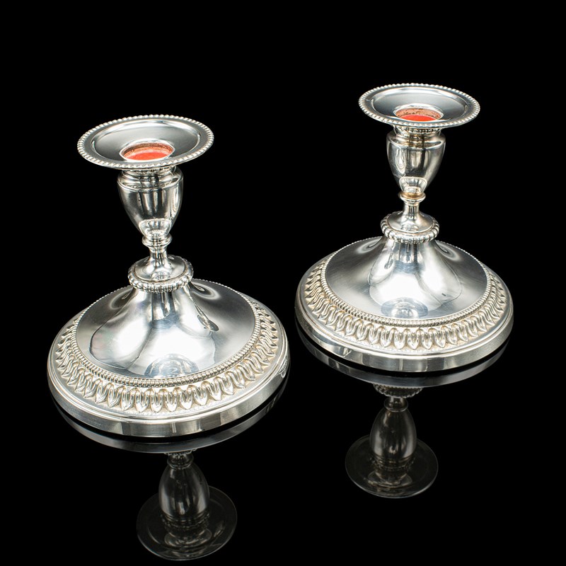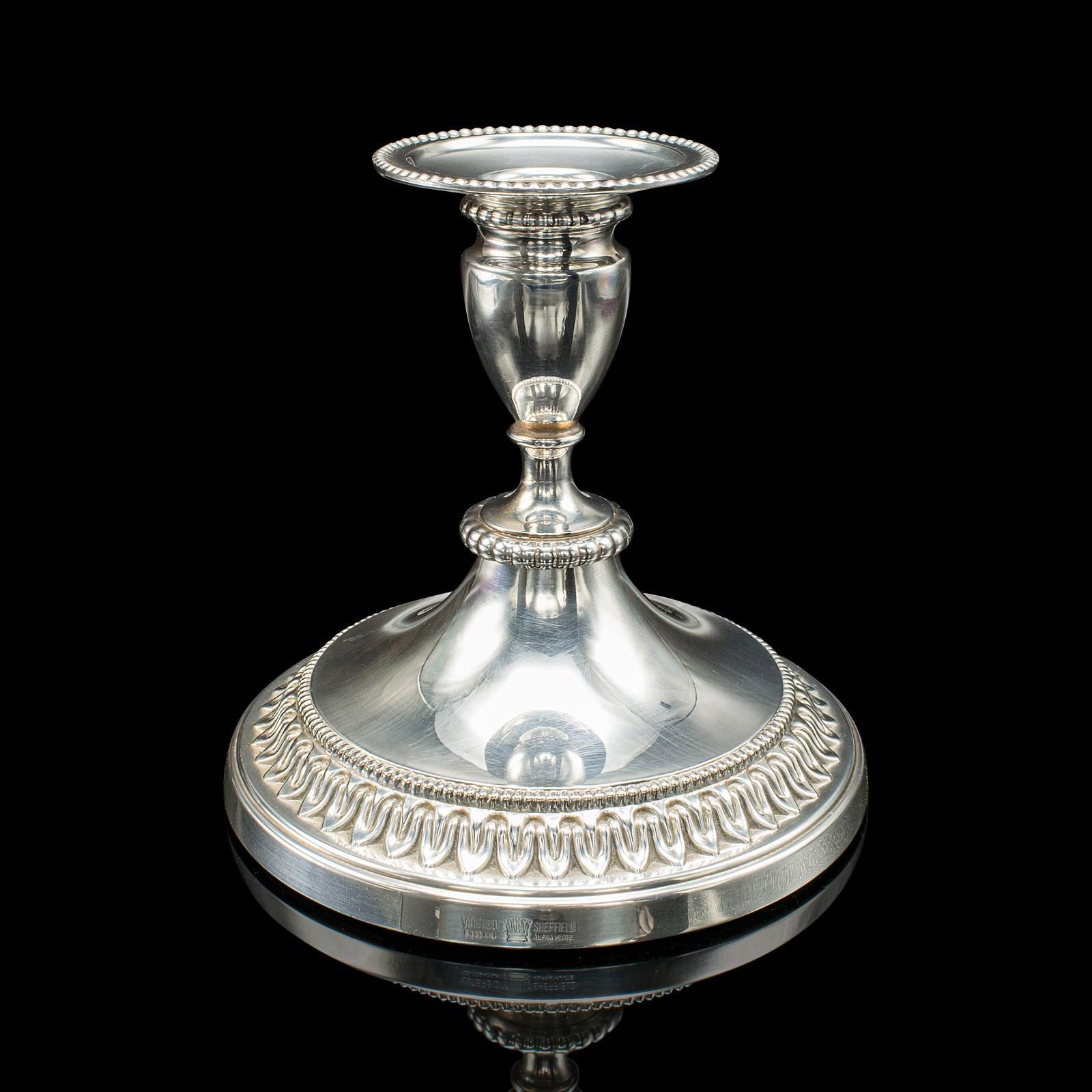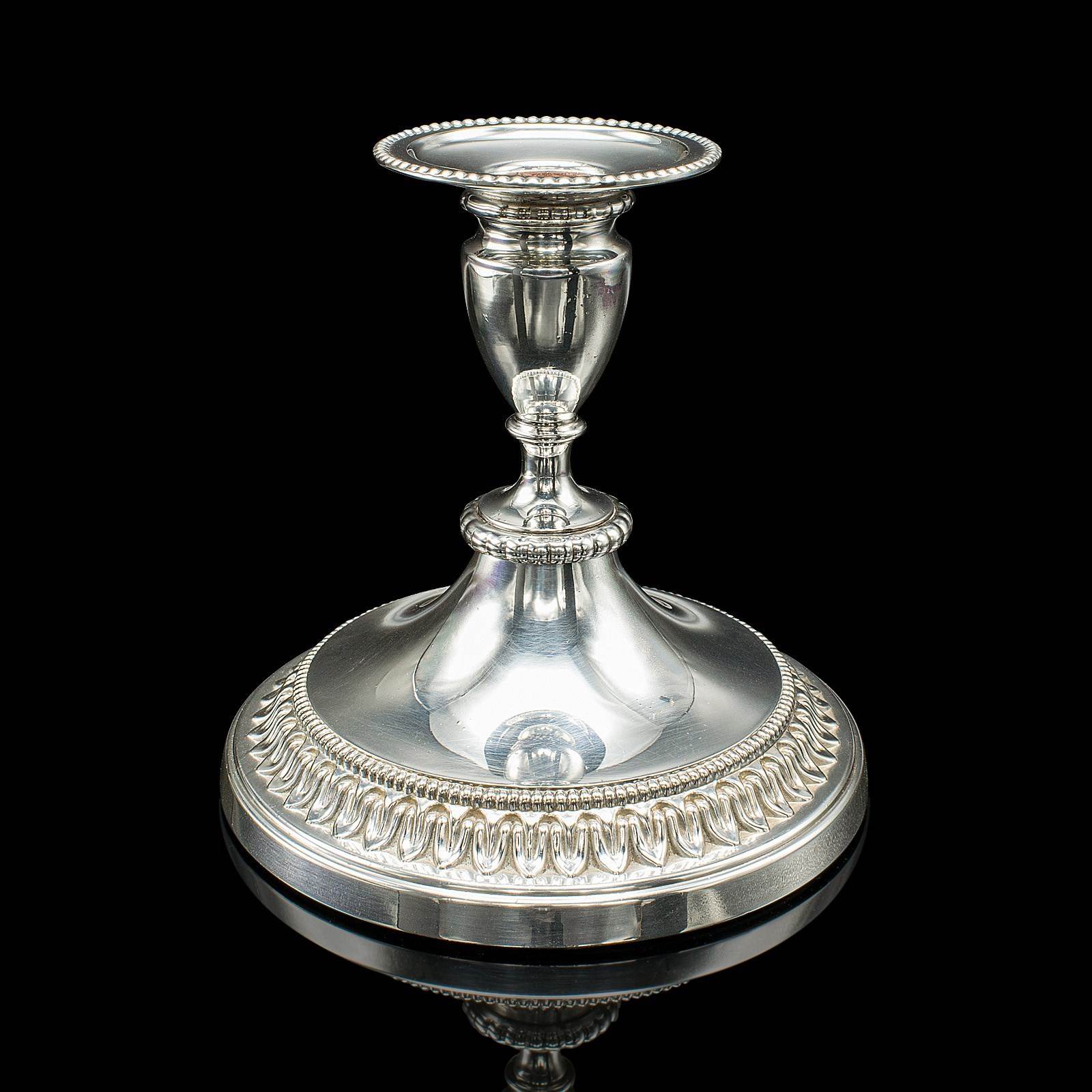 Pair Of Vintage Low Candlesticks, English, Silver Plate, Candle Nozzle, C.1950