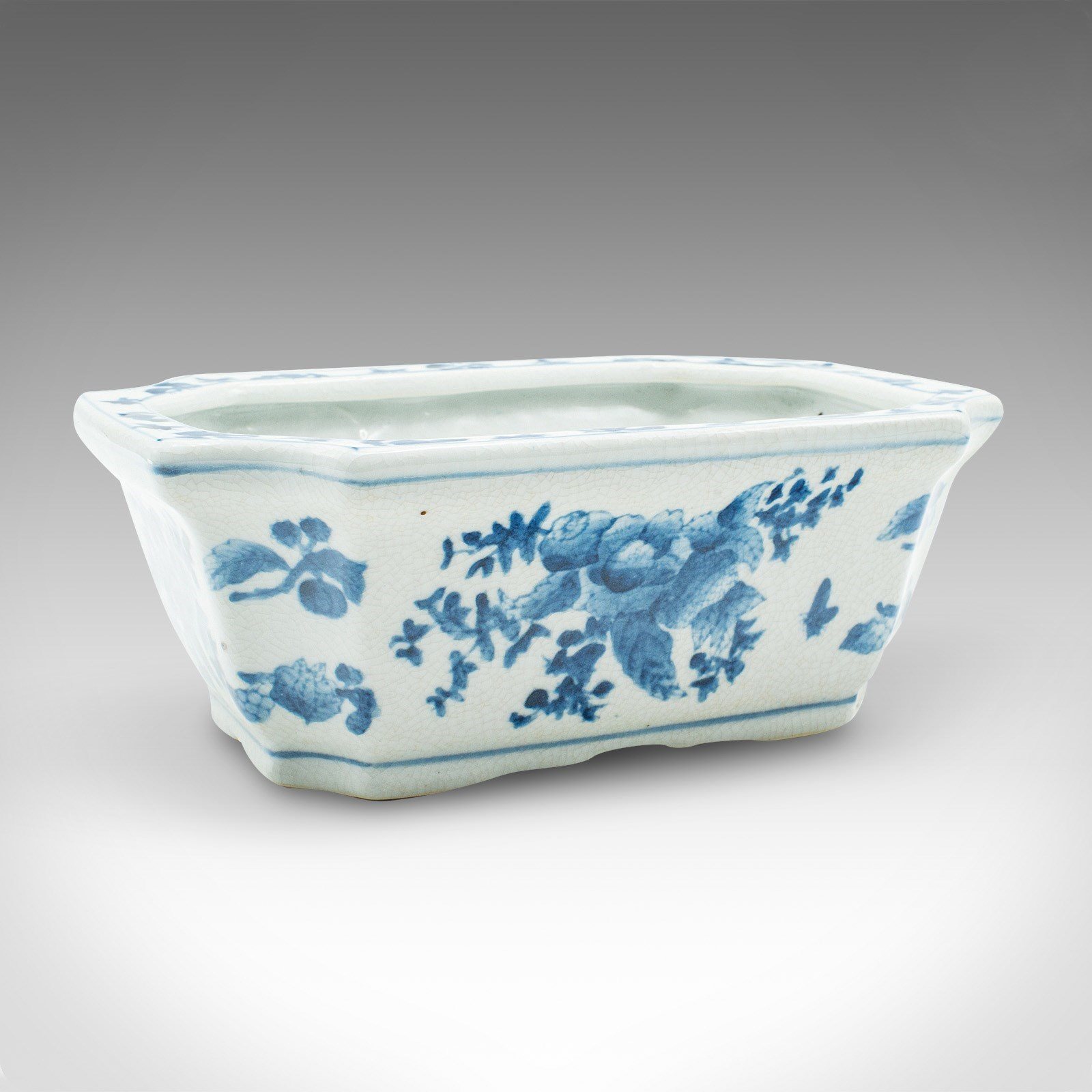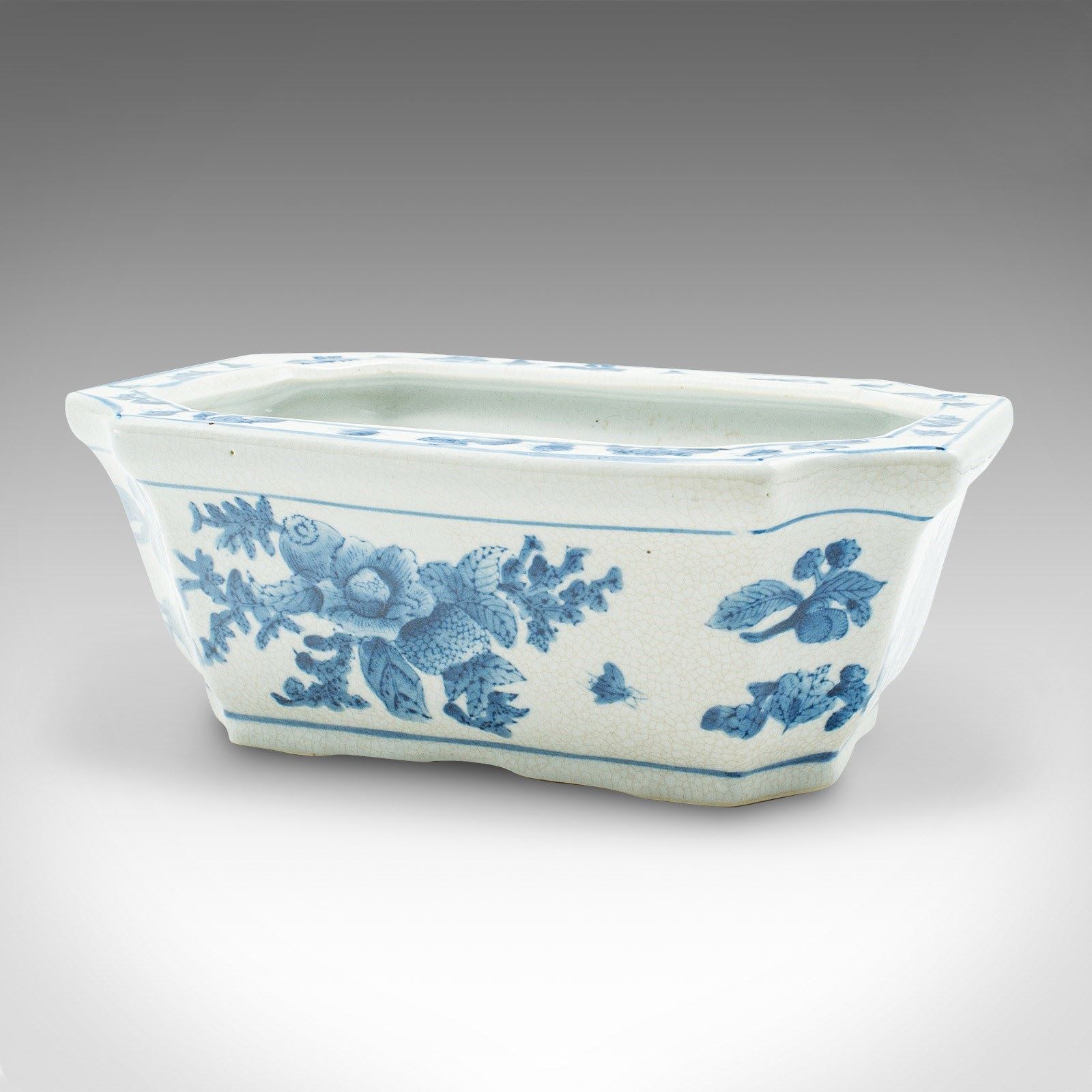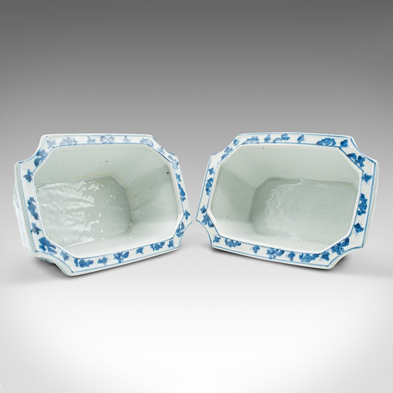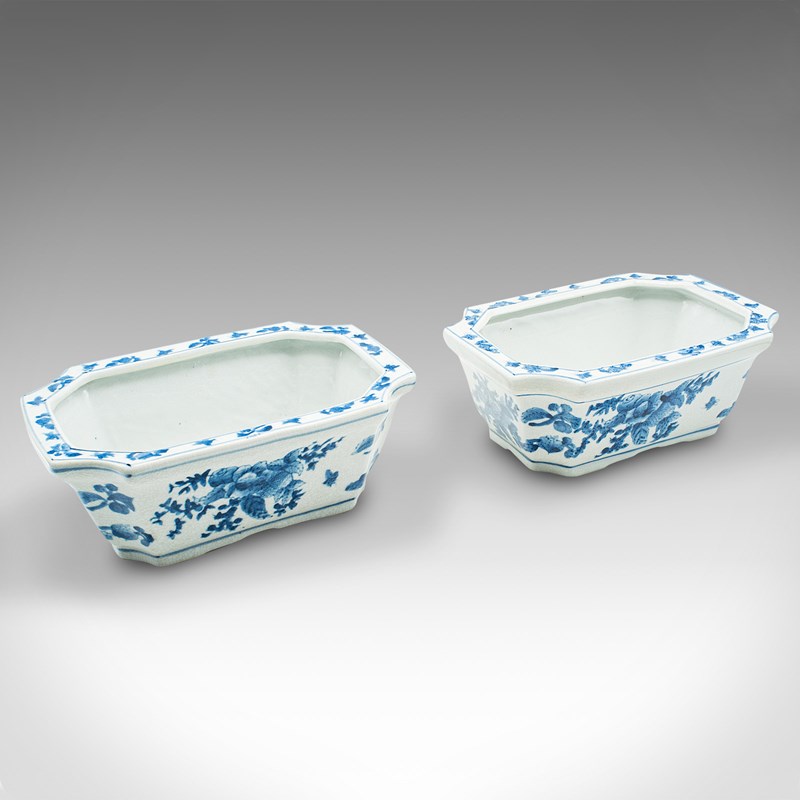 Pair Of Vintage Window Box Planters, Chinese Ceramic, Blue And White, Decorative