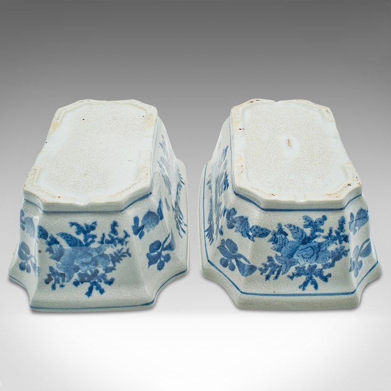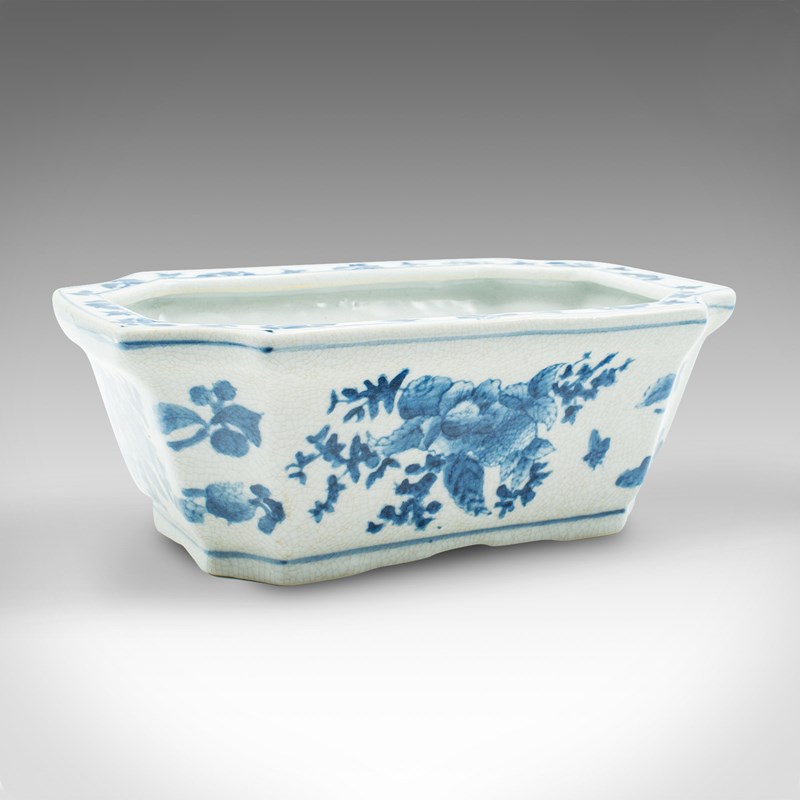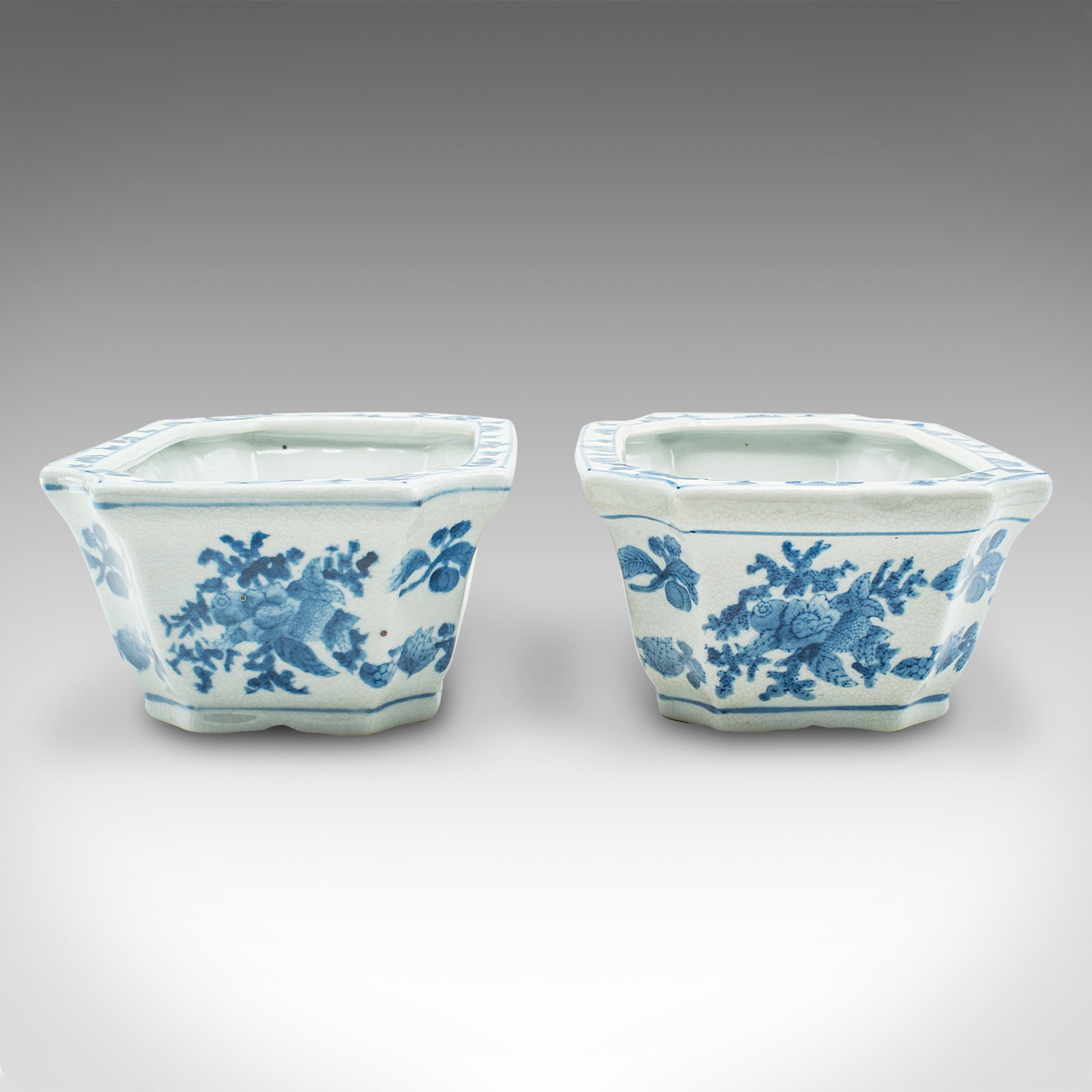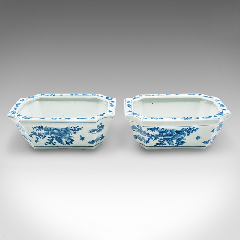 Pair Of Vintage Window Box Planters, Chinese Ceramic, Blue And White, Decorative