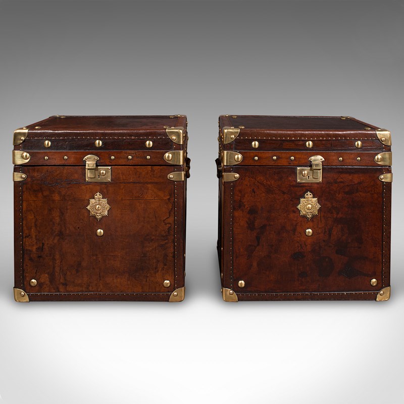 Pair, Vintage Officer's Campaign Luggage Cases, English, Bedside Nightstands
