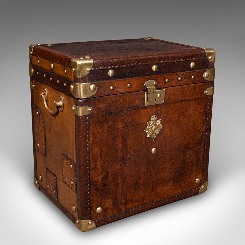 - Brass drop handles adorn either side, for ease of carriage