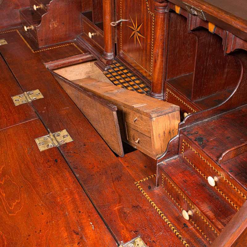 Boxwood and ebony marquetry adds further visual sophistication to the bureau