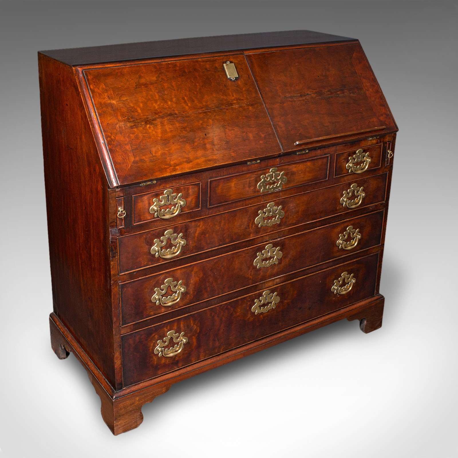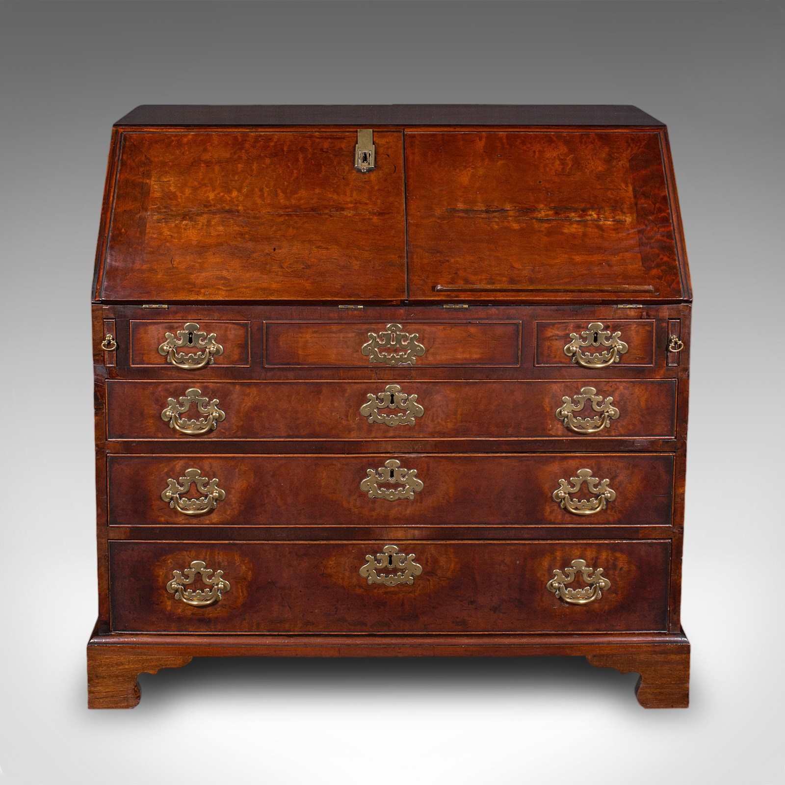 Beneath the bureau, a suite of five drawers arranged as the classic two over three