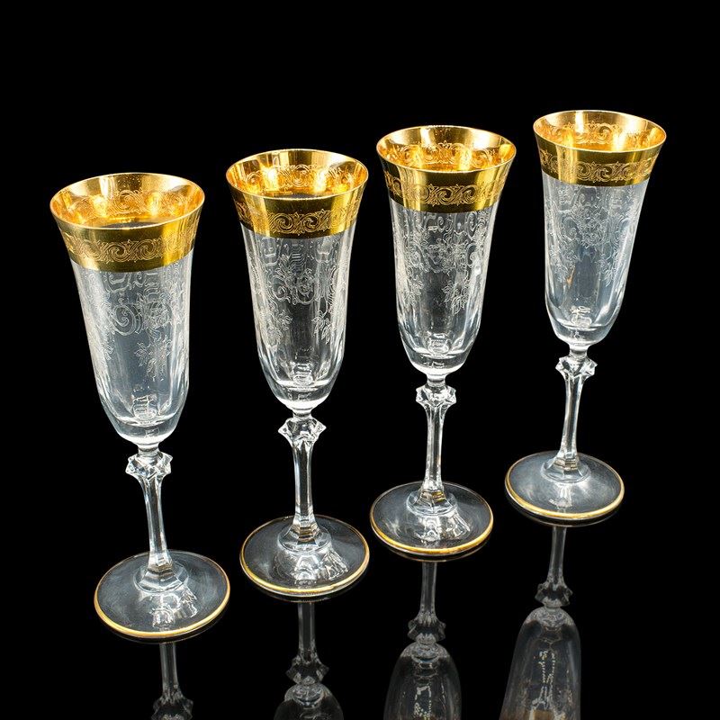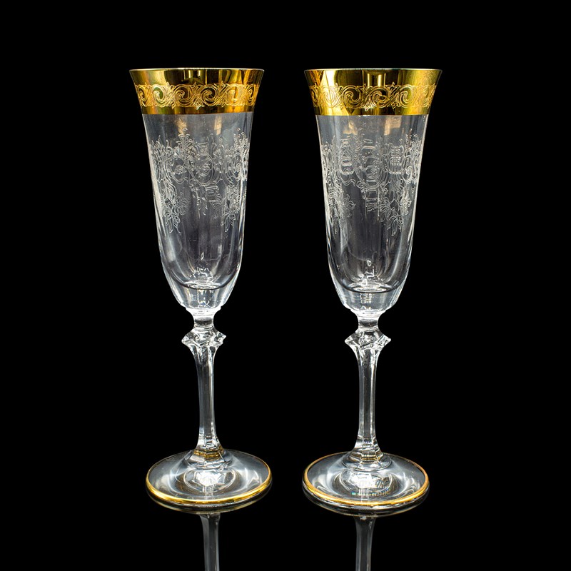 This is a delightful suite of vintage champagne flutes, that combines Continental elegance with superb decorative appeal. Delivered ready to enjoy.